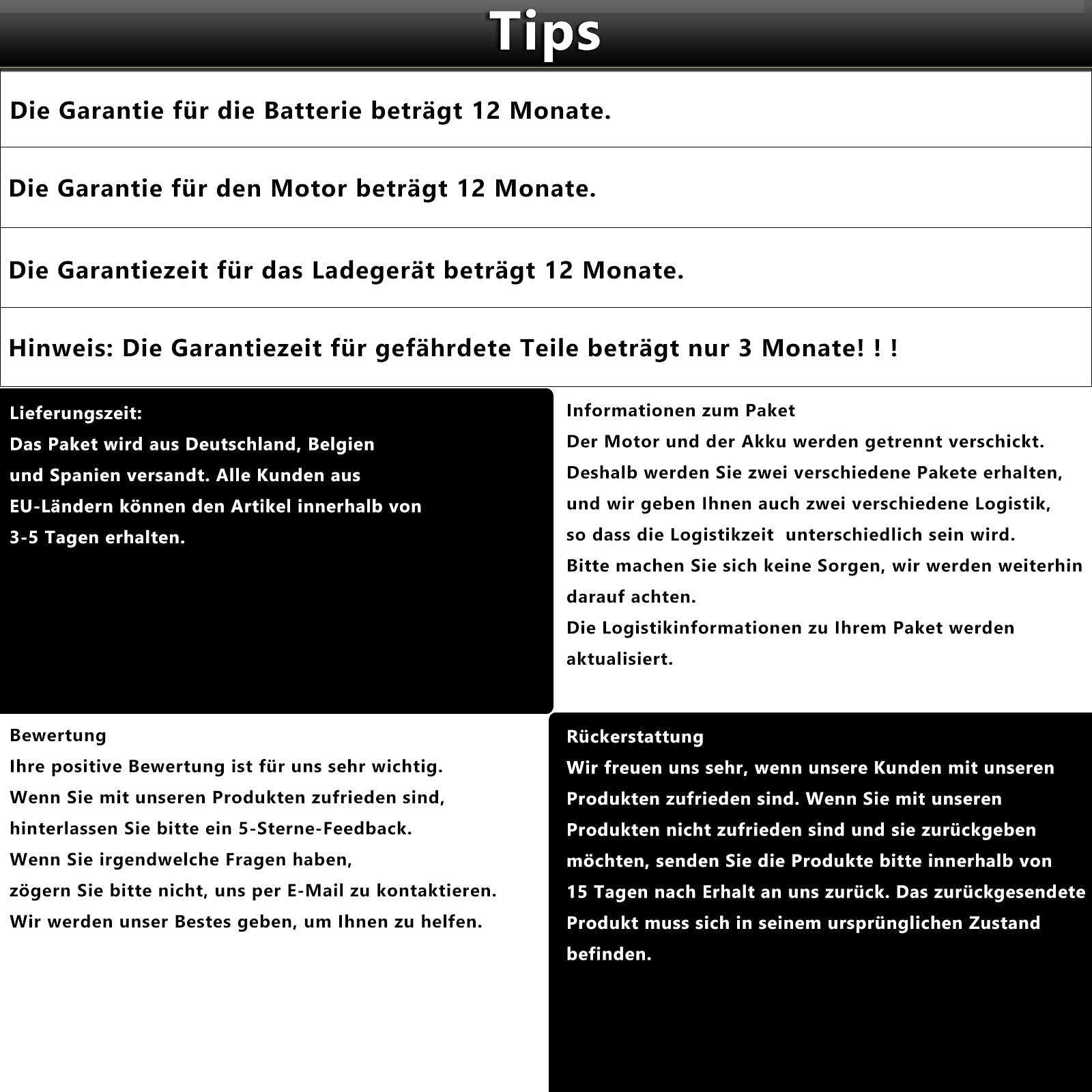 *Wenn Sie in der Größenoption einen Akku auswählen,erhalten Sie auch den Akku und ein Ladegerät*