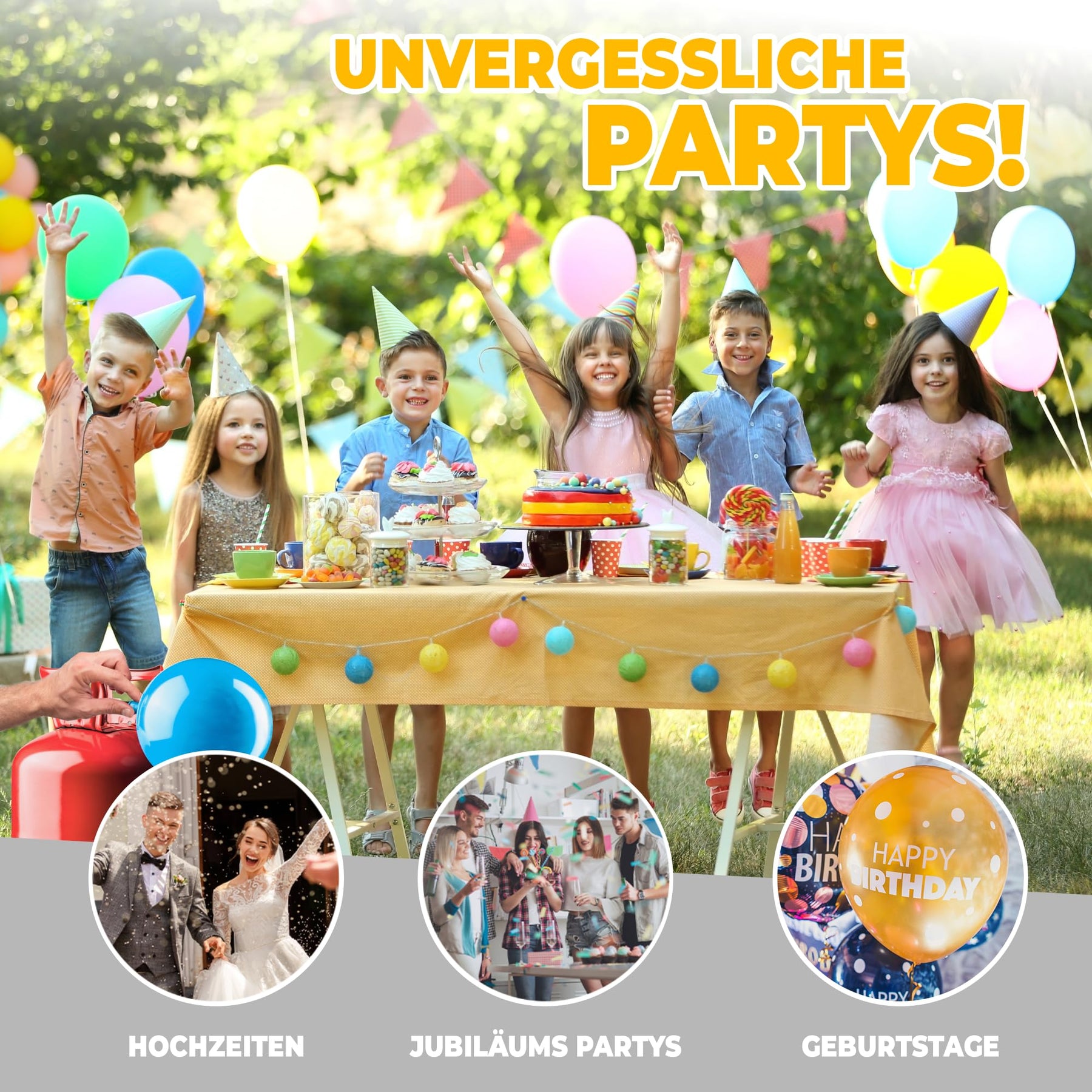 - 🎈 Unvergessliche Partys: Verleihen Sie Ihren Feiern und Veranstaltungen mit der Helium Gasflasche eine besondere Note und schaffen Sie unvergessliche Erinnerungen. Erleben Sie unvergessliche Momente, die Ihre Gäste noch lange in Erinnerung behalten werden.