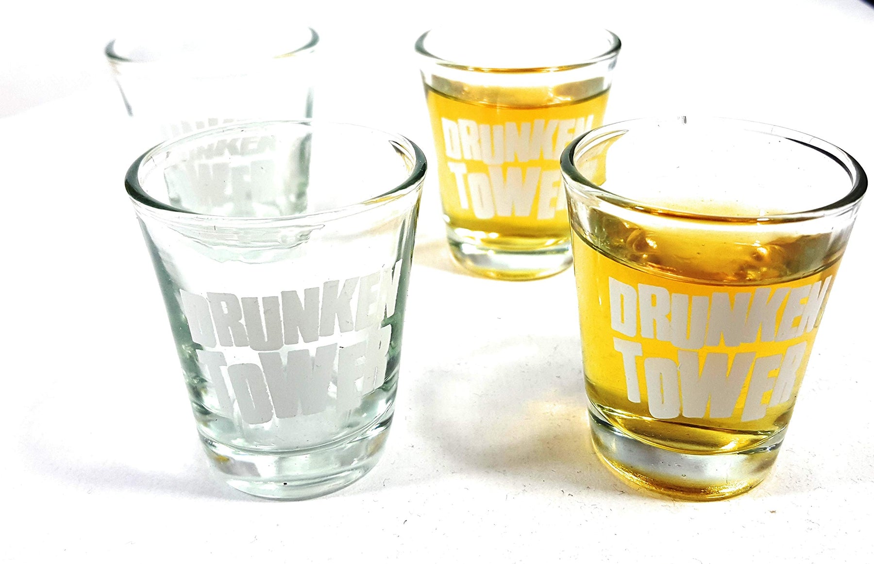 Bambelaa! Trinkspiel Partyspiel Wackelturm Drunken Tower inklusive Vier Trinkgläser ca. 4cl (Deutsche Version)