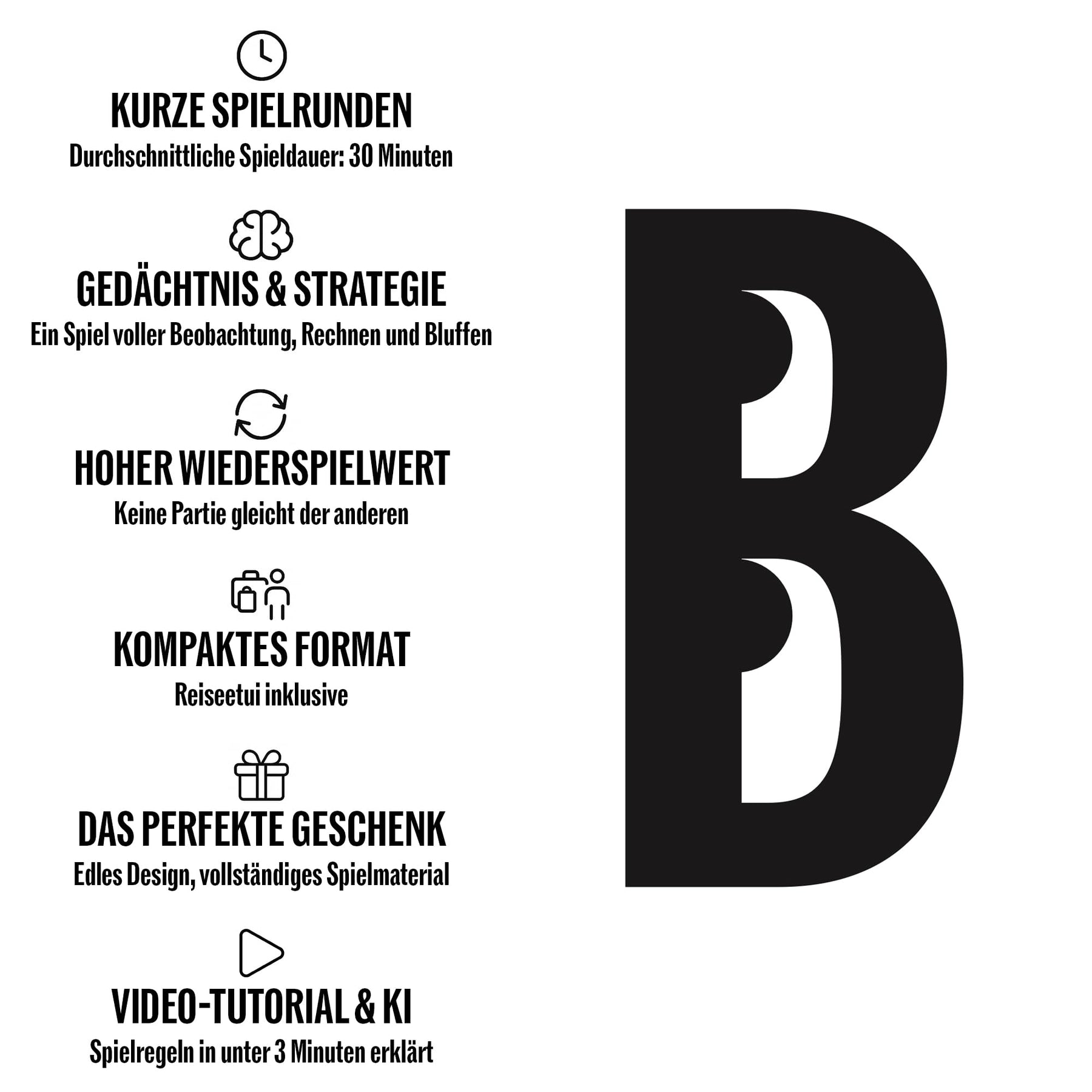 • Ausgezeichnete Wahl für Erwachsene und Jugendliche: Ein Bluff Spiel mit Interaktion, Spannung und Überraschung – geeignet für Spieler ab 8 Jahren. Eine originelle Alternative zu klassischen Spielen für alle, die Kartenspiele für 2 Personen oder Denkspiele lieben.
