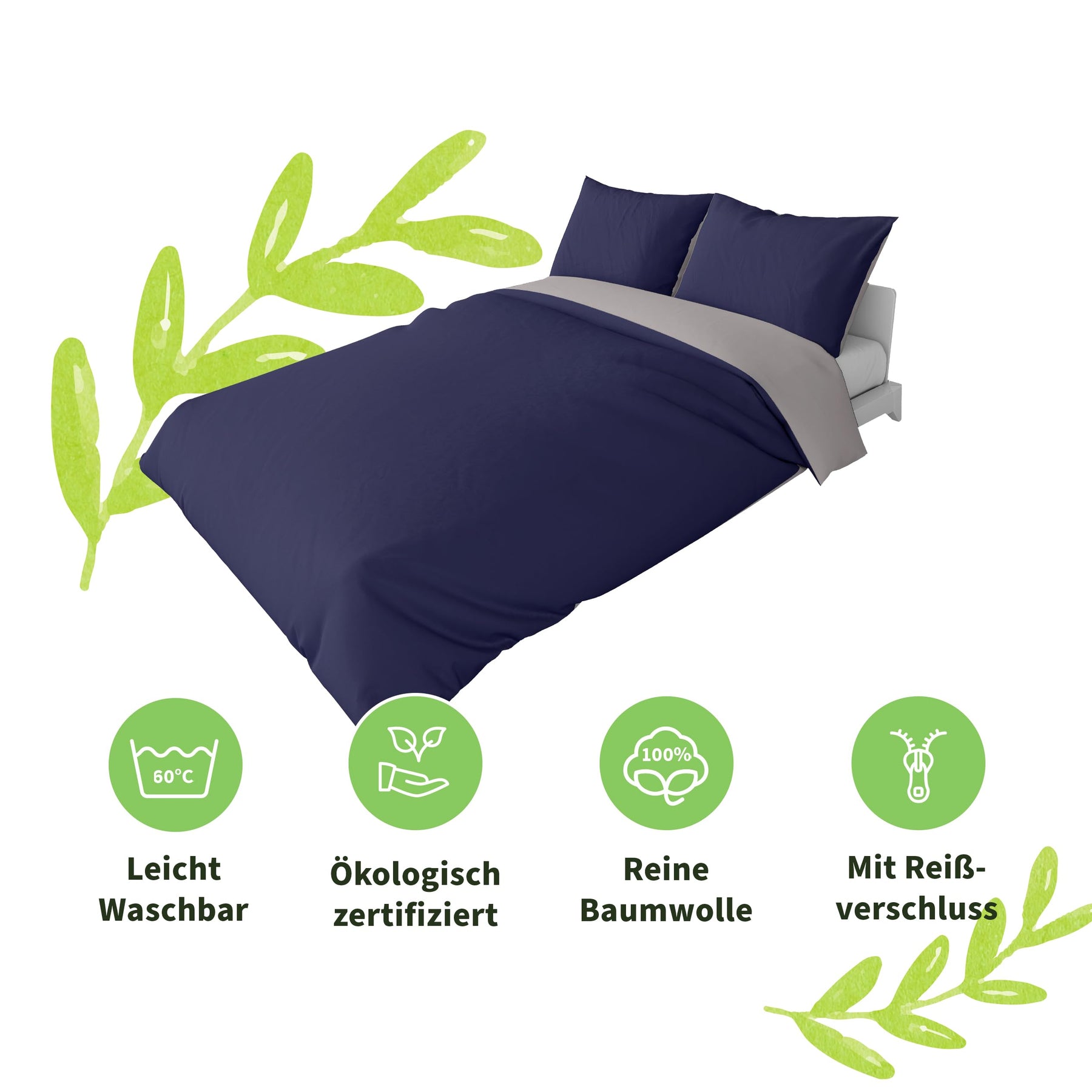 - 💚MATERIAL UND EIGENSCHAFTEN: Unsere Renforcé Bettwäsche zertifiziert nach Öko-Tex Standard 100 und aus 100% Bio-Baumwolle ist besonders hautfreundlich, atmungsaktiv, feuchtigkeitsregulierend und pflegeleicht.
