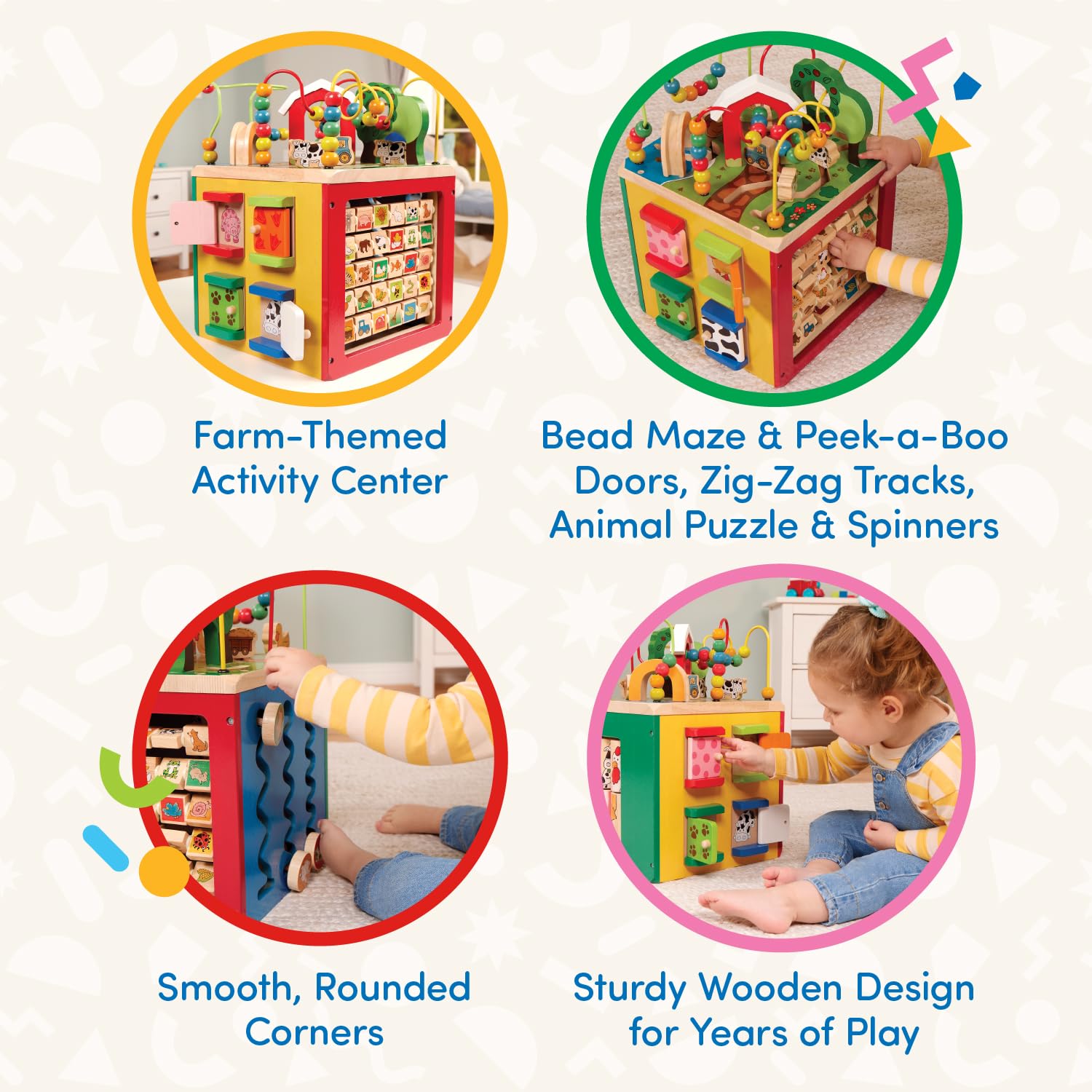 - Wunderschön verarbeitet aus stabilem Holz mit robuster Konstruktion und kräftigen Farben. Das Holz ist an den Ecken abgerundet für sicheres Spielen. Ideal für das eigene Kinderzimmer, Wartezimmer, Kindergarten und mehr