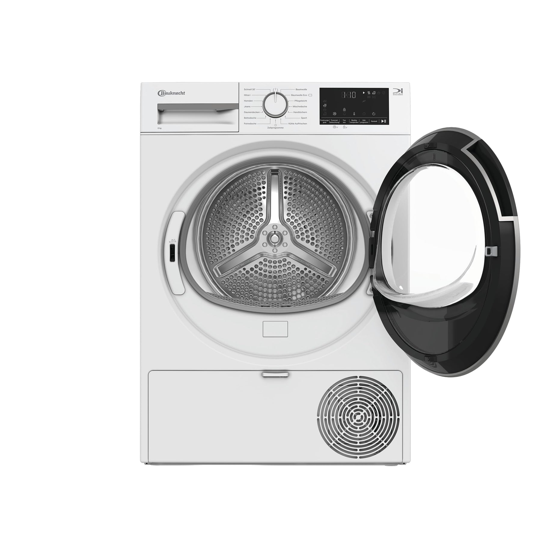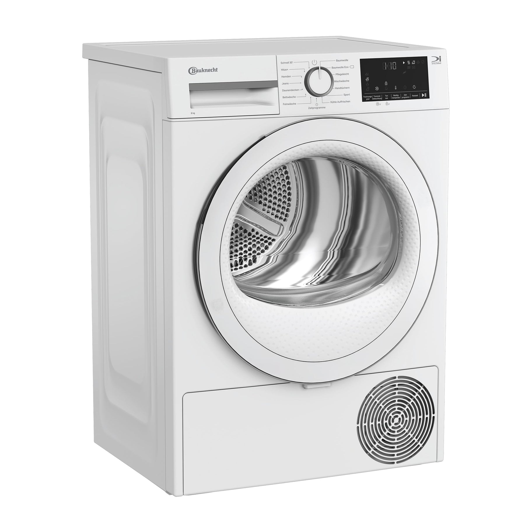 Einzelheiten: Effizientes und intelligentes Trocknen für beste Ergebnisse – der Bauknecht BD 8D WWS Wärmepumpentrockner vereint modernste Technologie, Komfort und höchste Energieeffizienz. Highlights und Funktionen: Fassungsvermögen: Ideal für mittelgroße Haushalte – mit einer Kapazität von 8 kg bewältigt der Trockner unterschiedlichste Wäscheladungen. Energieeffizienz: Energieeffizienzklasse A++, für eine umweltfreundliche und kostensparende Nutzung. Kondensationseffizienzklasse B, mit einer durchschnittlichen Kondensationseffizienz von 88 % – zuverlässig und sauber. Bis zu 70 % Energieersparnis dank innovativer Wärmepumpentechnologie. Dynamic Intelligence Technologie: Die Precision Dry-Technologie passt automatisch die Trocknungszeit an die Beladung und Feuchtigkeit an – für optimale Ergebnisse bei jedem Waschgang und minimalen Energieverbrauch. Komfortable Handhabung: Wasserbehälter oben für einfaches Entleeren. Kindersicherung für mehr Sicherheit. Startzeitvorwahl (1-24 Stunden) und Restzeitanzeige für maximale Flexibilität. Trommelvolumen von 92 Litern aus hochwertigem Edelstahl – für schonende Wäschepflege auch bei empfindlichen Textilien. Türanschlag rechts – praktisch und passend für jedes Zuhause. Intuitive Wartung: Anzeige zur Reinigung des Wärmetauscherfilters. Separate Anzeigen für Flusensieb reinigen und Wasserbehälter leeren. Trocknungsprogramme: 15 elektronische Programme: Geeignet für verschiedene Wäschearten, darunter Baumwolle, Pflegeleicht, Feinwäsche, Mischwäsche, Seide, Sportbekleidung, Jeans und Daunendecken. Auffrischen-Programm: Entfernt schlechte Gerüche und frischt Kleidung auf. Schnell 30': Für eilige Wäschestücke in nur 30 Minuten. Jeans-Programm: Perfekt abgestimmt für dickere Stoffe wie Denim. Seiden-Programm: Sorgt für die sanfte Pflege edler Stoffe. MIX-Programm: Praktisch für gemischte Wäscheladungen im Alltag. Zusatzoptionen: Kurz-Option, Schonen, Trommelinnenbeleuchtung, Tonsignal am Programmende, Stumm-Option und zusätzliche Reversierung (gegen Verknittern). Elektronische Feineinstellung des Trockengrades für individuelle Ergebnisse. Verbrauchswerte und Lautstärke: Gewichteter Energieverbrauch pro Jahr: 221 kWh Energieverbrauch bei voller Befüllung: 1,84 kWh Gewichtete Programmdauer: 153 Minuten Geräuschpegel: 64 dB(A) Design und Maße: Modernes Design mit klarer Bedienstruktur und benutzerfreundlichem Display. Kompakte Maße (HxBxT): 84,6 x 59,7 x 54,5 cm – passt perfekt in viele Haushalte. Einfacher Anschluss: Standardsteckdose genügt, mit einer Absicherung von 10 Ampere. Fazit: Der Bauknecht BD 8D WWS Wärmepumpentrockner überzeugt mit modernster Technologie, benutzerfreundlichem Design und umweltfreundlicher Energieeffizienz. Mit seiner Vielzahl an Programmen, intelligenten Funktionen und einer robusten Bauweise ist er die ideale Lösung für schonendes und effizientes Trocknen in Ihrem Zuhause. Bauknecht – Für das, was wirklich zählt. Effizientes und intelligentes Trocknen für beste Ergebnisse – der Bauknecht BD 8D WWS Wärmepumpentrockner vereint modernste Technologie, Komfort und höchste Energieeffizienz. Highlights und Funktionen: Fassungsvermögen: Ideal für mittelgroße Haushalte – mit einer Kapazität von 8 kg bewältigt der Trockner unterschiedlichste Wäscheladungen. Energieeffizienz: Energieeffizienzklasse A++, für eine umweltfreundliche und kostensparende Nutzung. Kondensationseffizienzklasse B, mit einer durchschnittlichen Kondensationseffizienz von 88 % – zuverlässig und sauber. Bis zu 70 % Energieersparnis dank innovativer Wärmepumpentechnologie. Dynamic Intelligence Technologie: Die Precision Dry-Technologie passt automatisch die Trocknungszeit an die Beladung und Feuchtigkeit an – für optimale Ergebnisse bei jedem Waschgang und minimalen Energieverbrauch. Komfortable Handhabung: Wasserbehälter oben für einfaches Entleeren. Kindersicherung für mehr Sicherheit. Startzeitvorwahl (1-24 Stunden) und Restzeitanzeige für maximale Flexibilität. Trommelvolumen von 92 Litern aus hochwertigem Edelstahl – für schonende Wäschepflege auch bei empfindlichen Textilien. Türanschlag rechts – praktisch und passend für jedes Zuhause. Intuitive Wartung: Anzeige zur Reinigung des Wärmetauscherfilters. Separate Anzeigen für Flusensieb reinigen und Wasserbehälter leeren. Trocknungsprogramme: 15 elektronische Programme: Geeignet für verschiedene Wäschearten, darunter Baumwolle, Pflegeleicht, Feinwäsche, Mischwäsche, Seide, Sportbekleidung, Jeans und Daunendecken. Auffrischen-Programm: Entfernt schlechte Gerüche und frischt Kleidung auf. Schnell 30': Für eilige Wäschestücke in nur 30 Minuten. Jeans-Programm: Perfekt abgestimmt für dickere Stoffe wie Denim. Seiden-Programm: Sorgt für die sanfte Pflege edler Stoffe. MIX-Programm: Praktisch für gemischte Wäscheladungen im Alltag. Zusatzoptionen: Kurz-Option, Schonen, Trommelinnenbeleuchtung, Tonsignal am Programmende, Stumm-Option und zusätzliche Reversierung (gegen Verknittern). Elektronische Feineinstellung des Trockengrades für individuelle Ergebnisse.