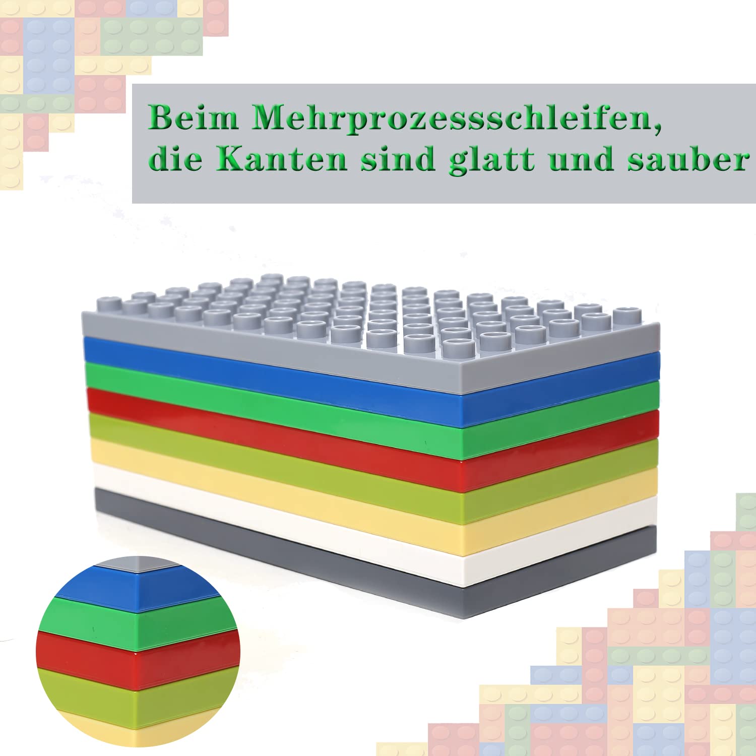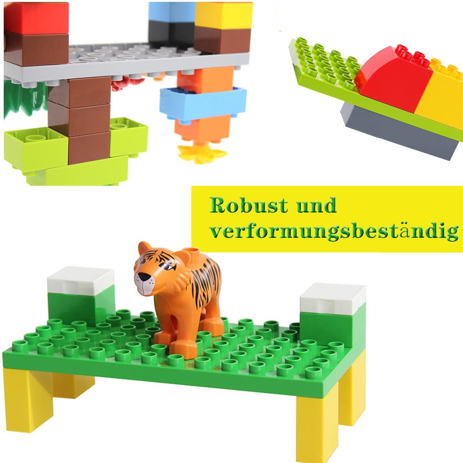 - Die Bauplatten sind betriebskompatibel mit allen führenden großen Bausteinmarken, die Standardbausteine mit großen Partikeln in DUPLO Größe akzeptieren