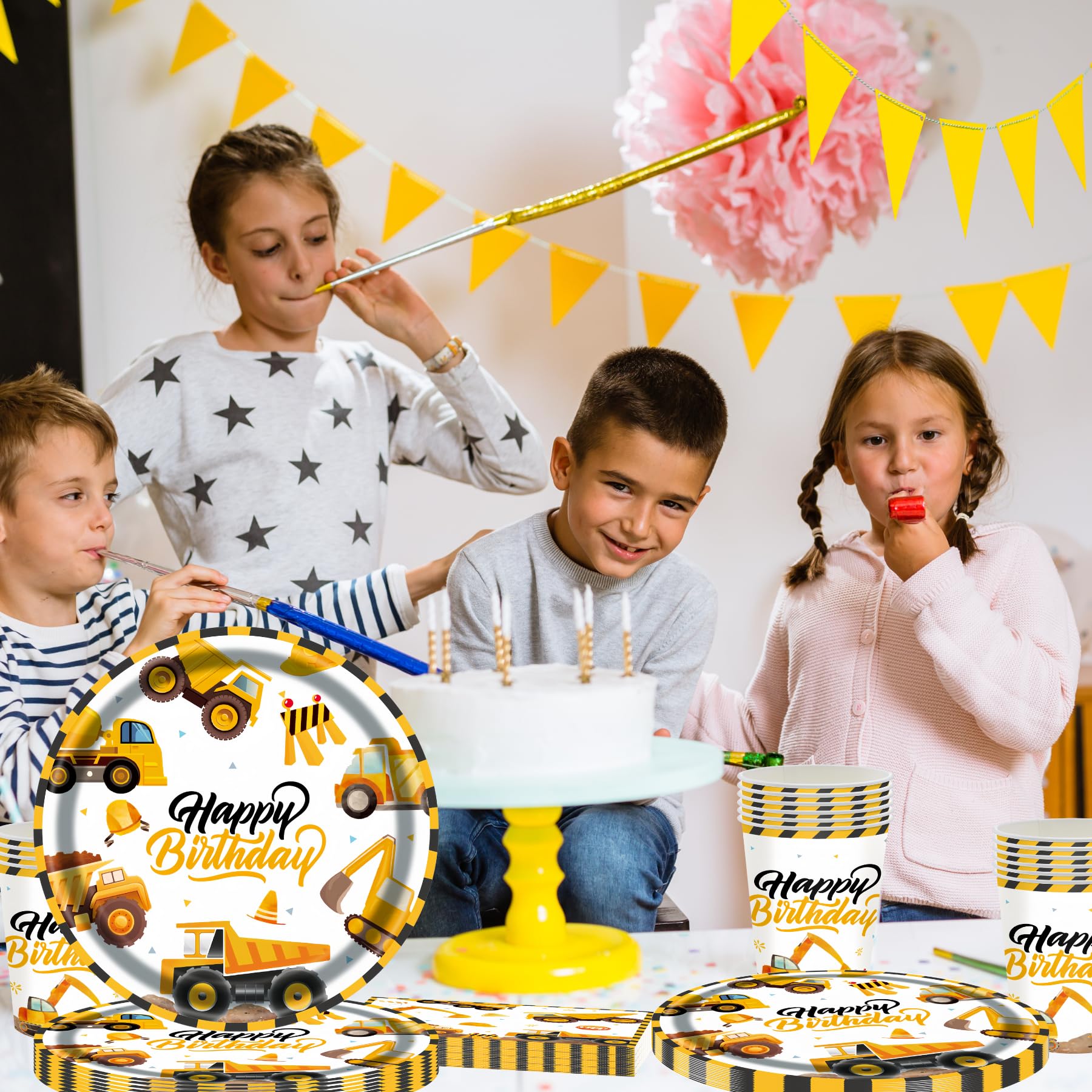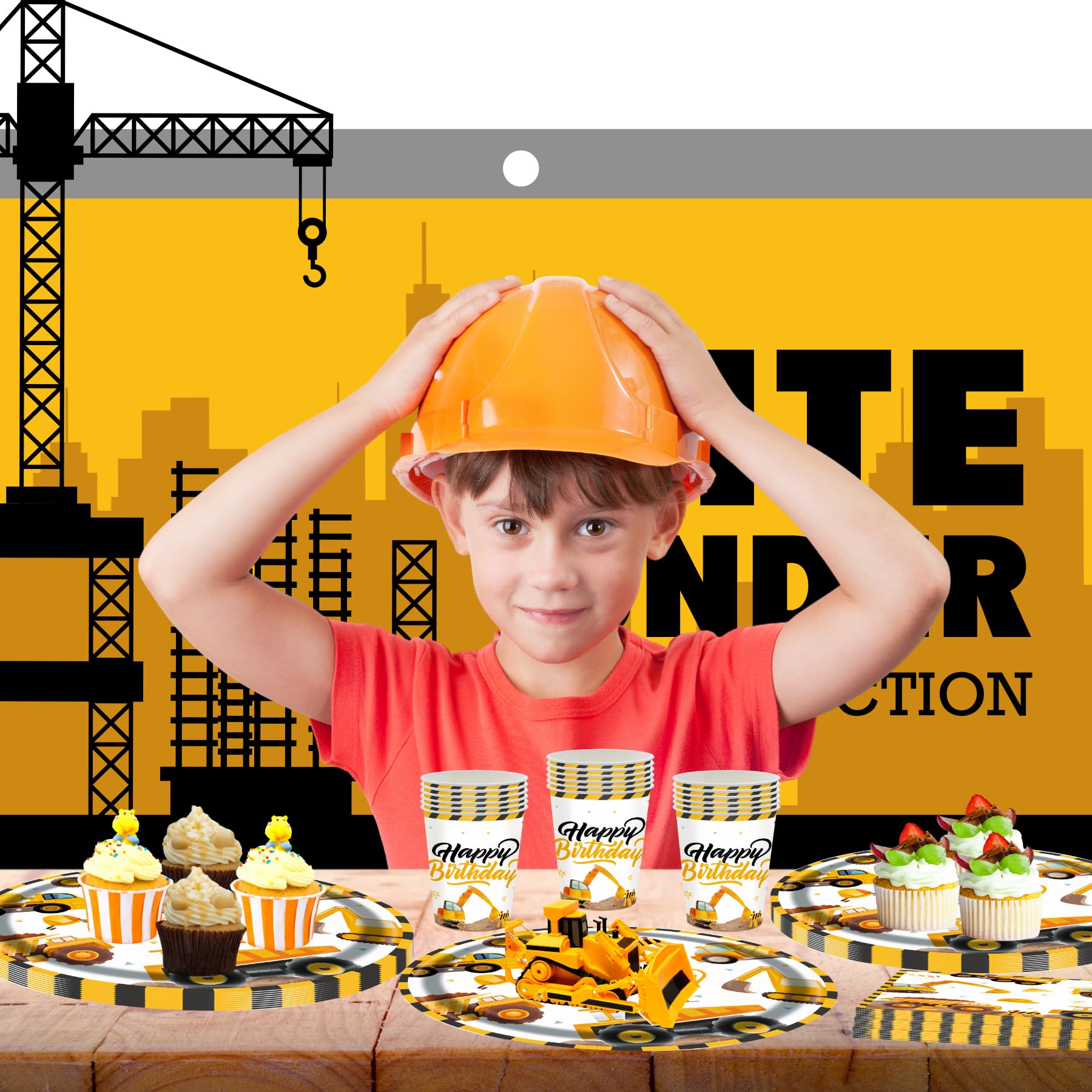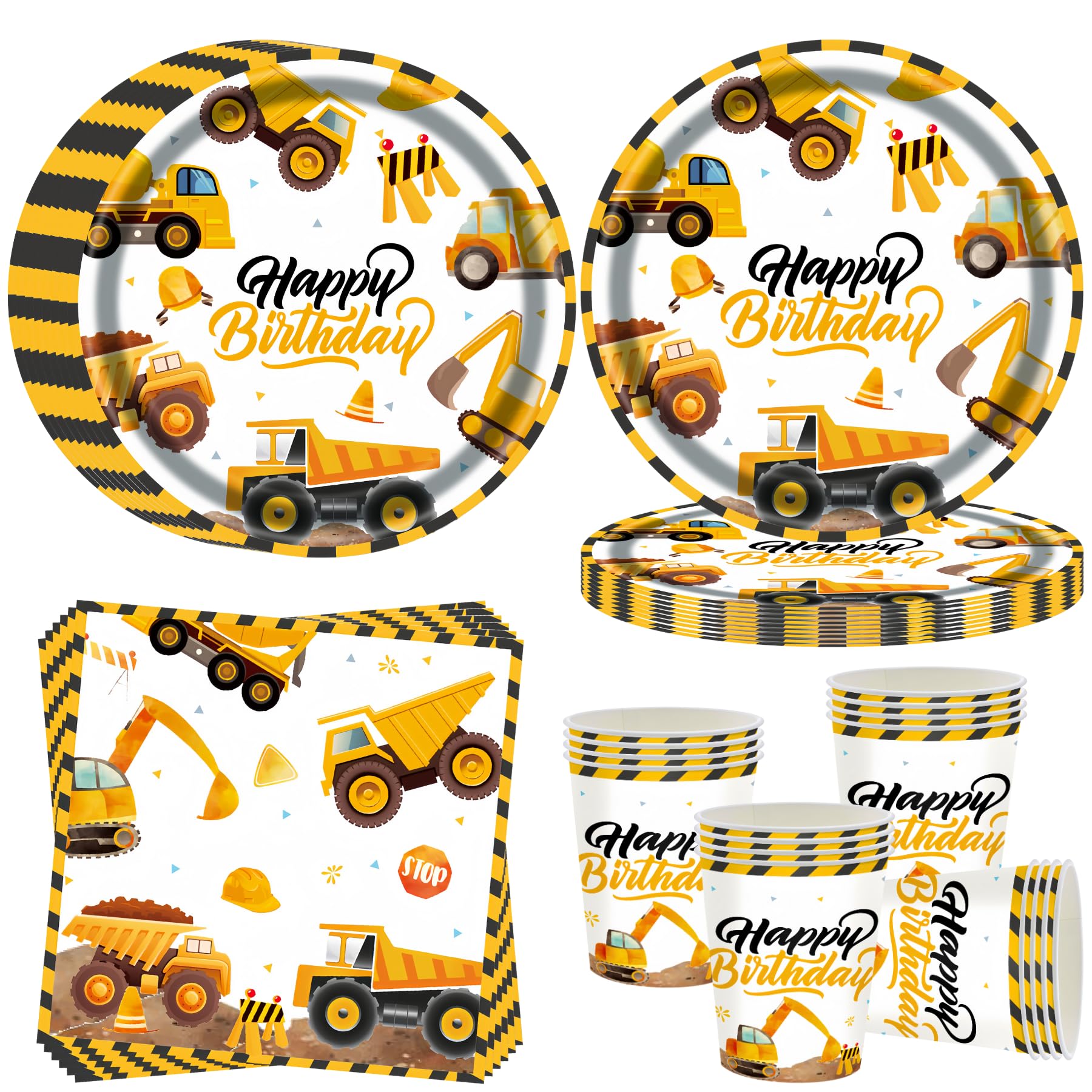 Baustelle Partygeschirr für 16 Gäste,Bagger Partyteller Geburtstag Geschirr,Baustelle Pappteller Becher Servietten,Technik Fahrzeug Partygeschirr für Junge Mädchen Kindergeburtstag Deko