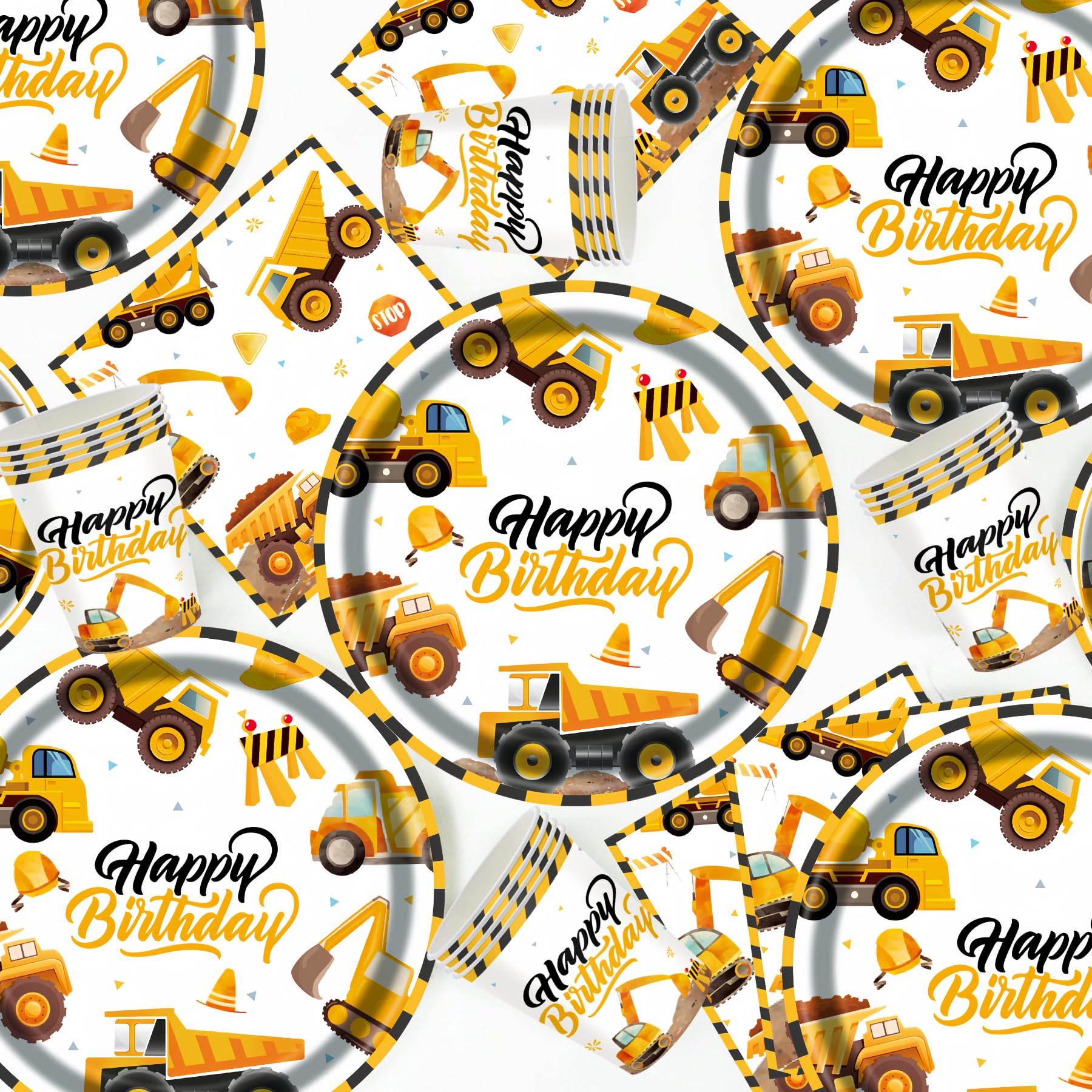 • [Bagger Kinderparty Deko] Geeignet für Kinder, die Bagger-Motive und Baustellen-Themen mögen! Pappteller, Servietten und Becher mit Baustellenmotiven sind speziell mit schönen Mustern gestaltet, wird den Kindern unvergessliche Erinnerungen bescheren.