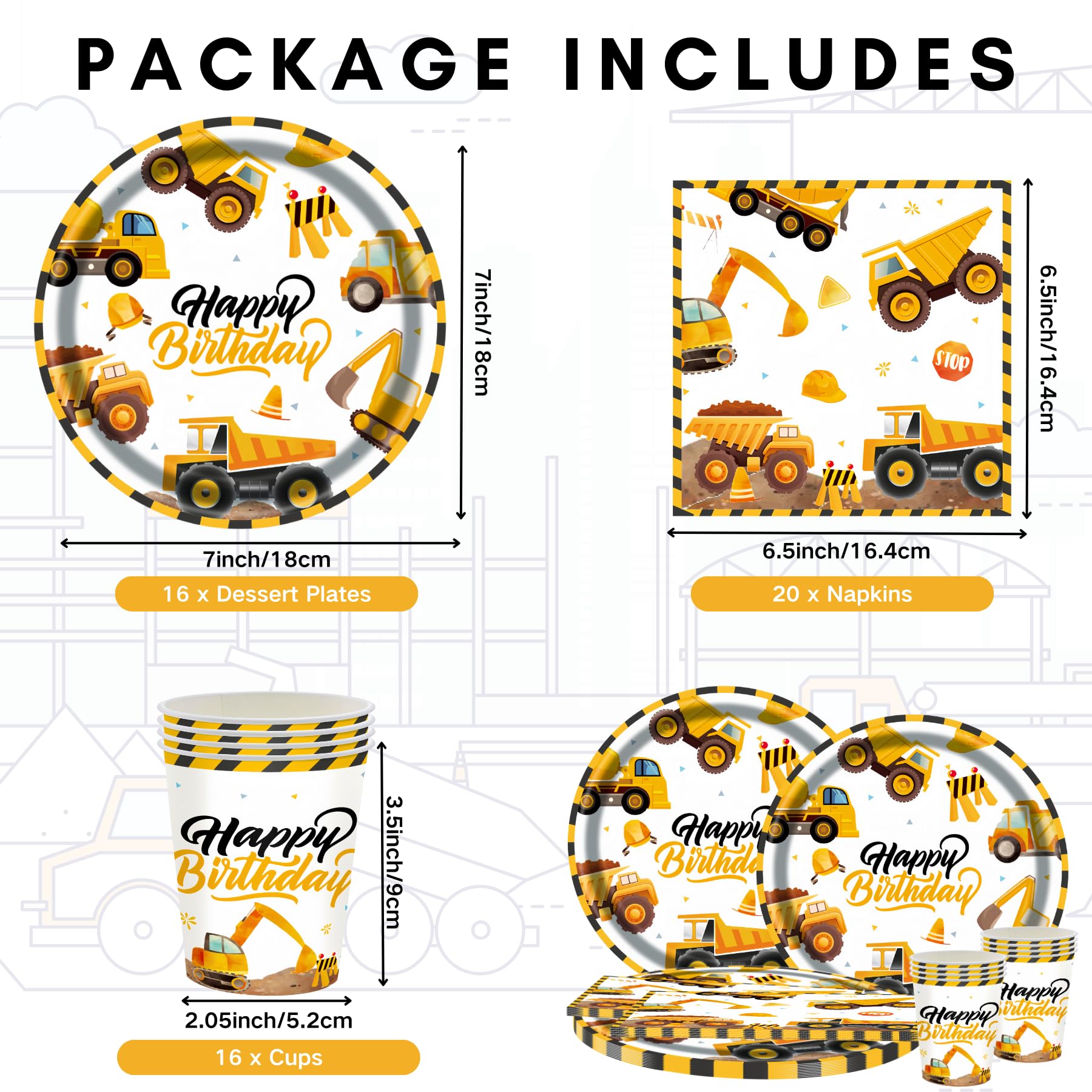 • [Baustelle Partygeschirr Set] Das 52-Stück Bagger Partygeschirr Set umfasst 16 Pappteller (18 cm), 20 Servietten und 16 Pappbecher, jedes Set ist für 16 Gäste geeignet. HINWEIS: Das Baustelle Partygeschirrset ist nicht mikrowellengeeignet.