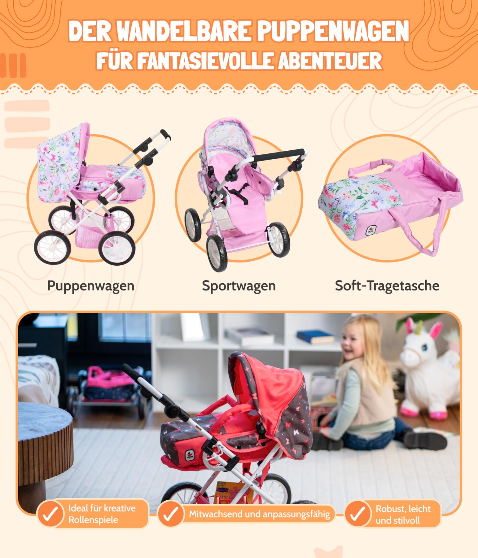 • 🌟 GRENZENLOSER SPIELSPASS: Der Puppenwagen Leni bietet drei Spielmodi: traditioneller Kinderwagen, Sportwagen und Soft-Tragetasche. Für fantasievolles Spielen und wertvolle Erinnerungen.