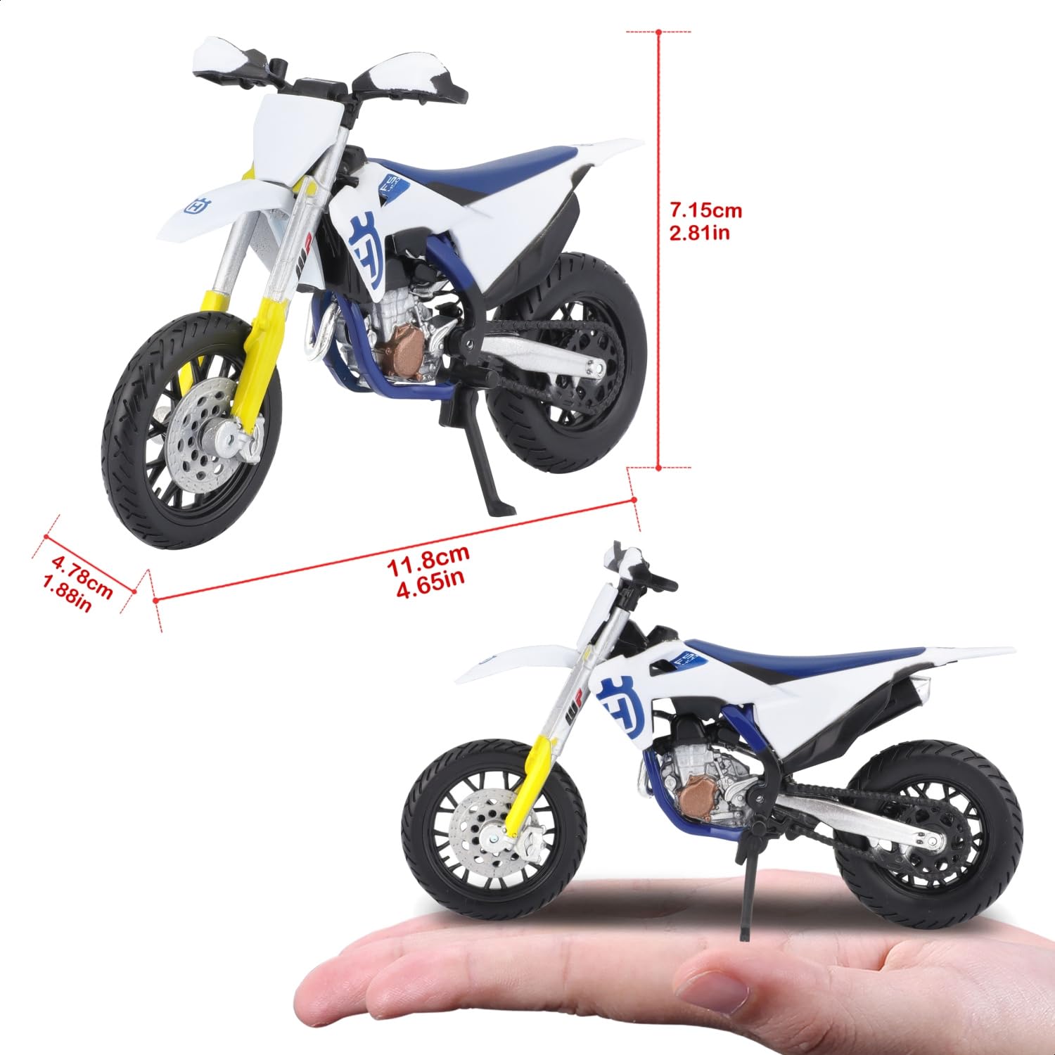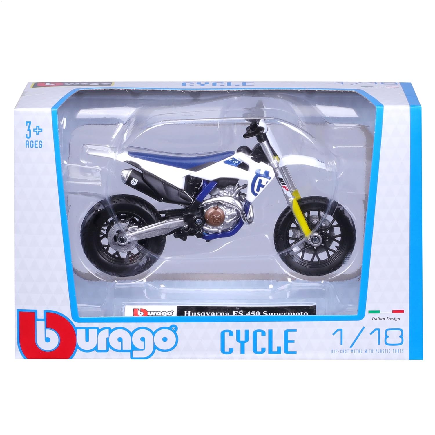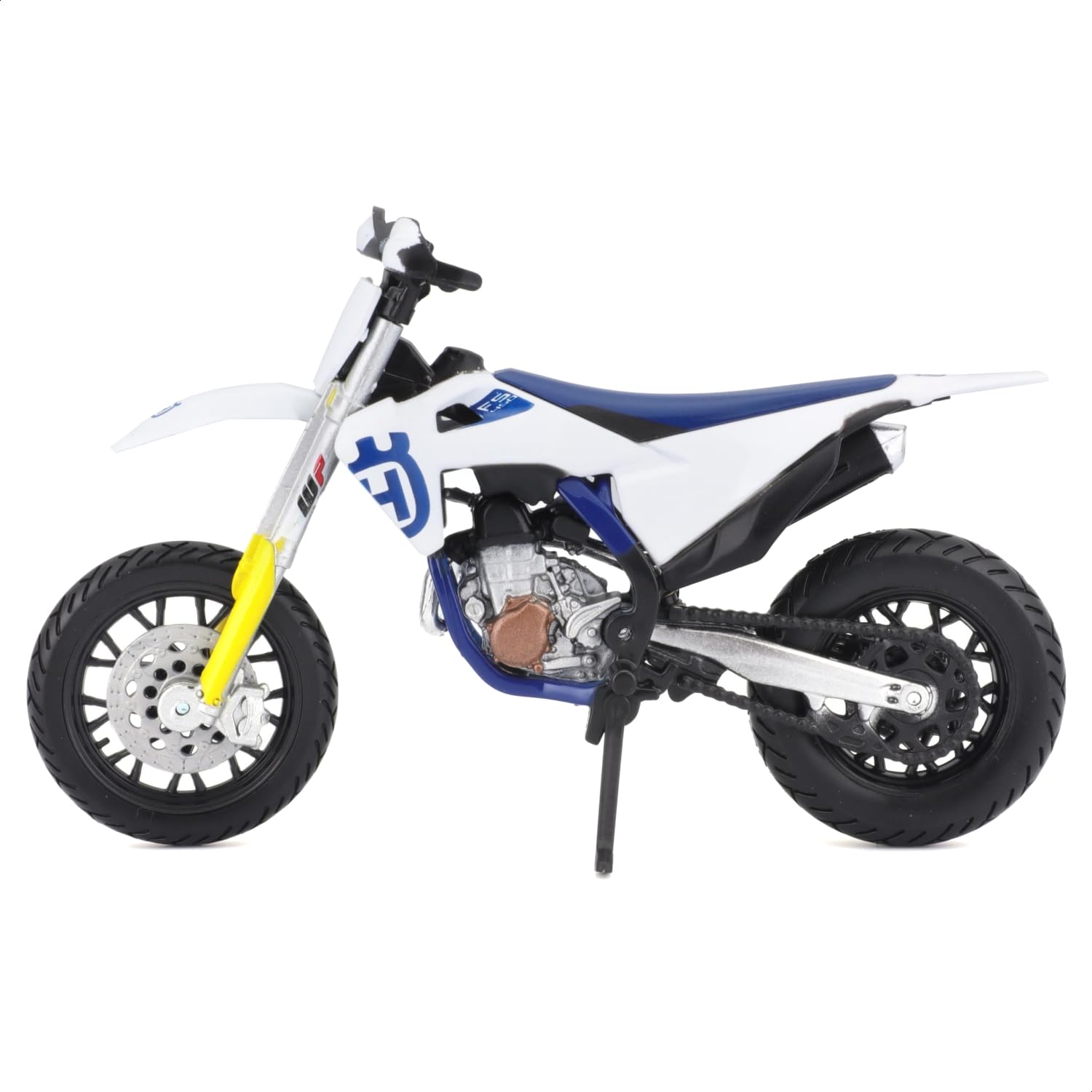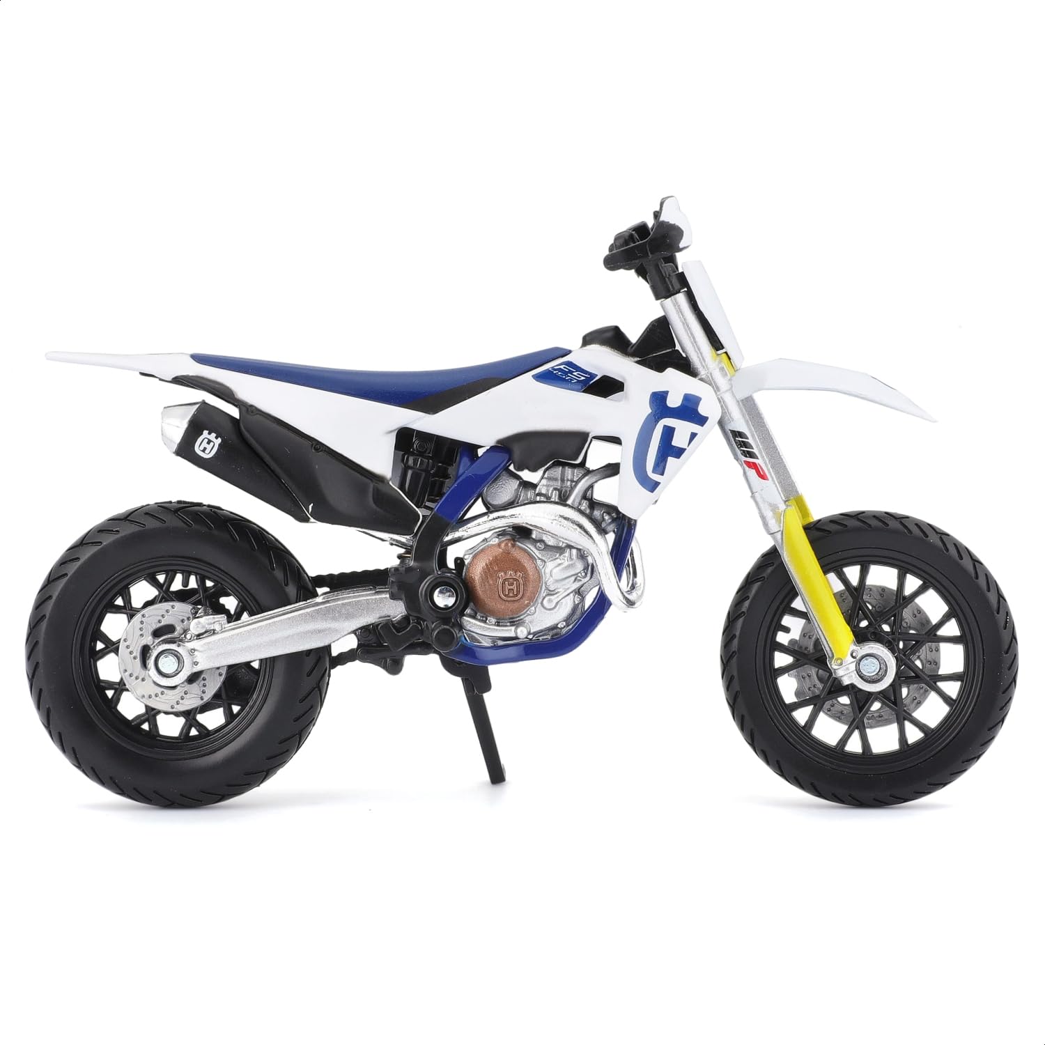 Bburago Husqvarna FS 450 Supermoto Motorrad - Maßstab 1:18 - Unglaublich detaillierte Druckguss-Nachbildung Sammlerstück Motorradmodell, Weiß