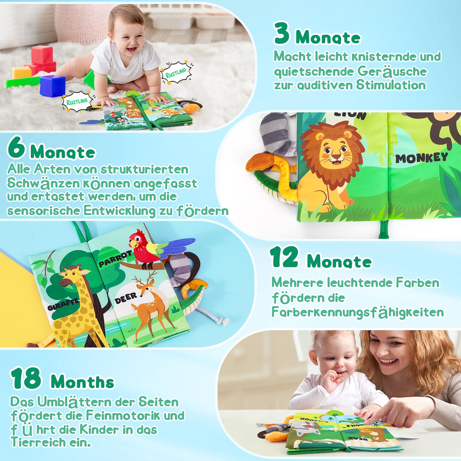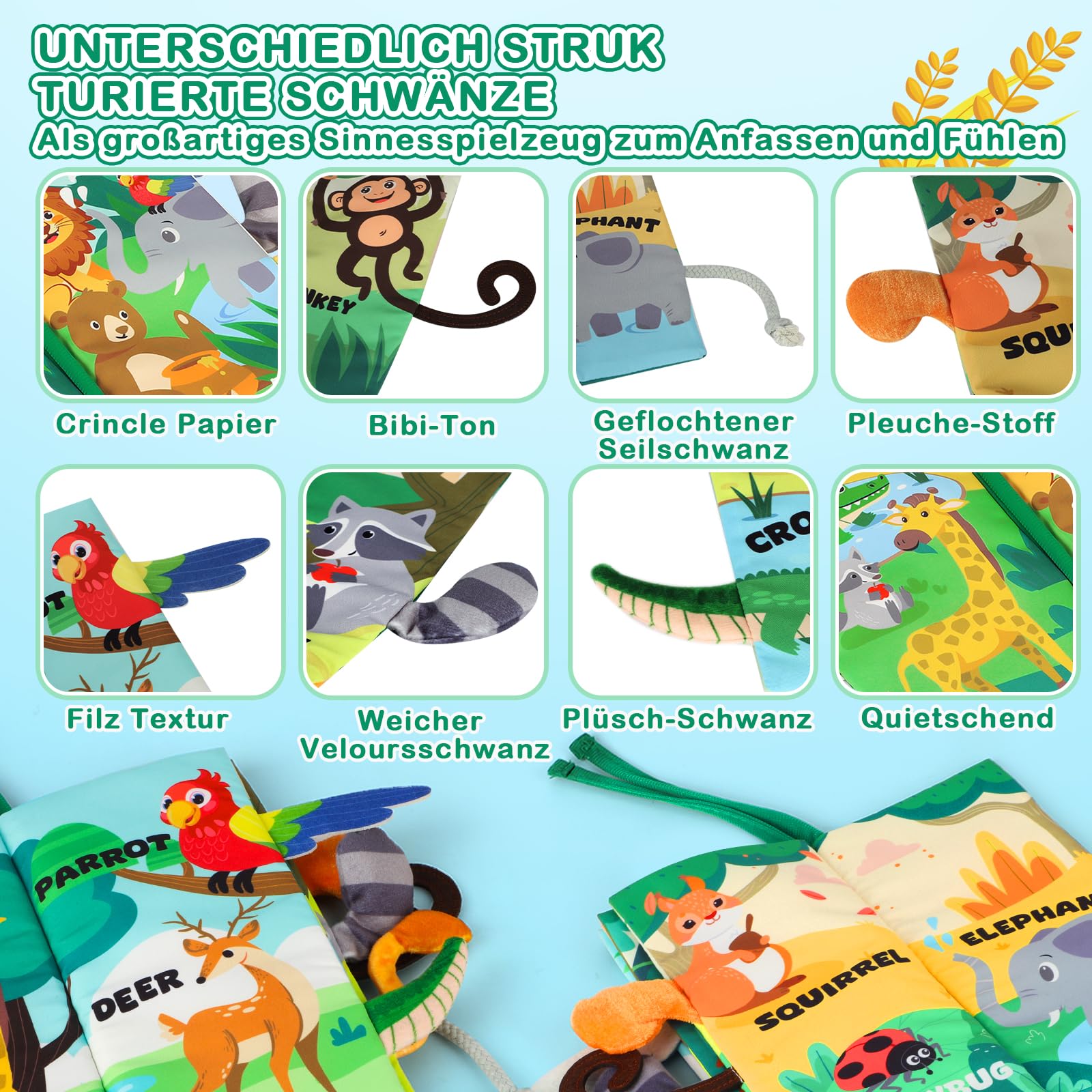 - 【Frühlern- und Lernspielzeug】Sie können diese lesen Erstellen Sie mit Ihrem Baby Stoffbücher zum Thema „Tierschwänze“ und lassen Sie Ihr Baby der Natur und den Tieren näher kommen. Diese Knisterspielzeuge für Babys sind auch eine Art Frühpädagogikspielzeug, das die Sprachfähigkeit, die Lesefähigkeit, die sensorischen Fähigkeiten, die Kommunikationsfähigkeit und die reiche Fantasie anregen kann, damit Ihr Kind an der Startlinie gewinnen kann.
