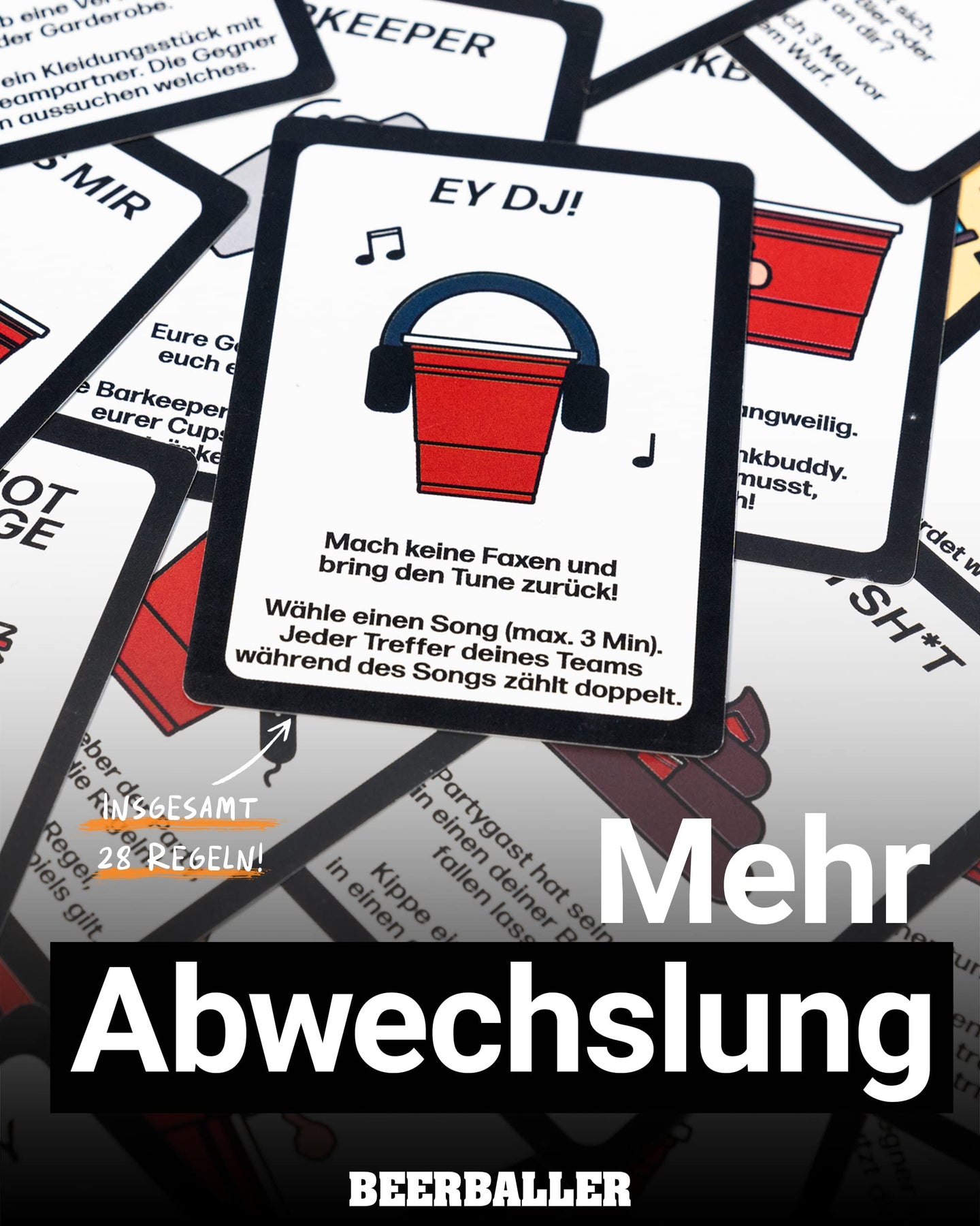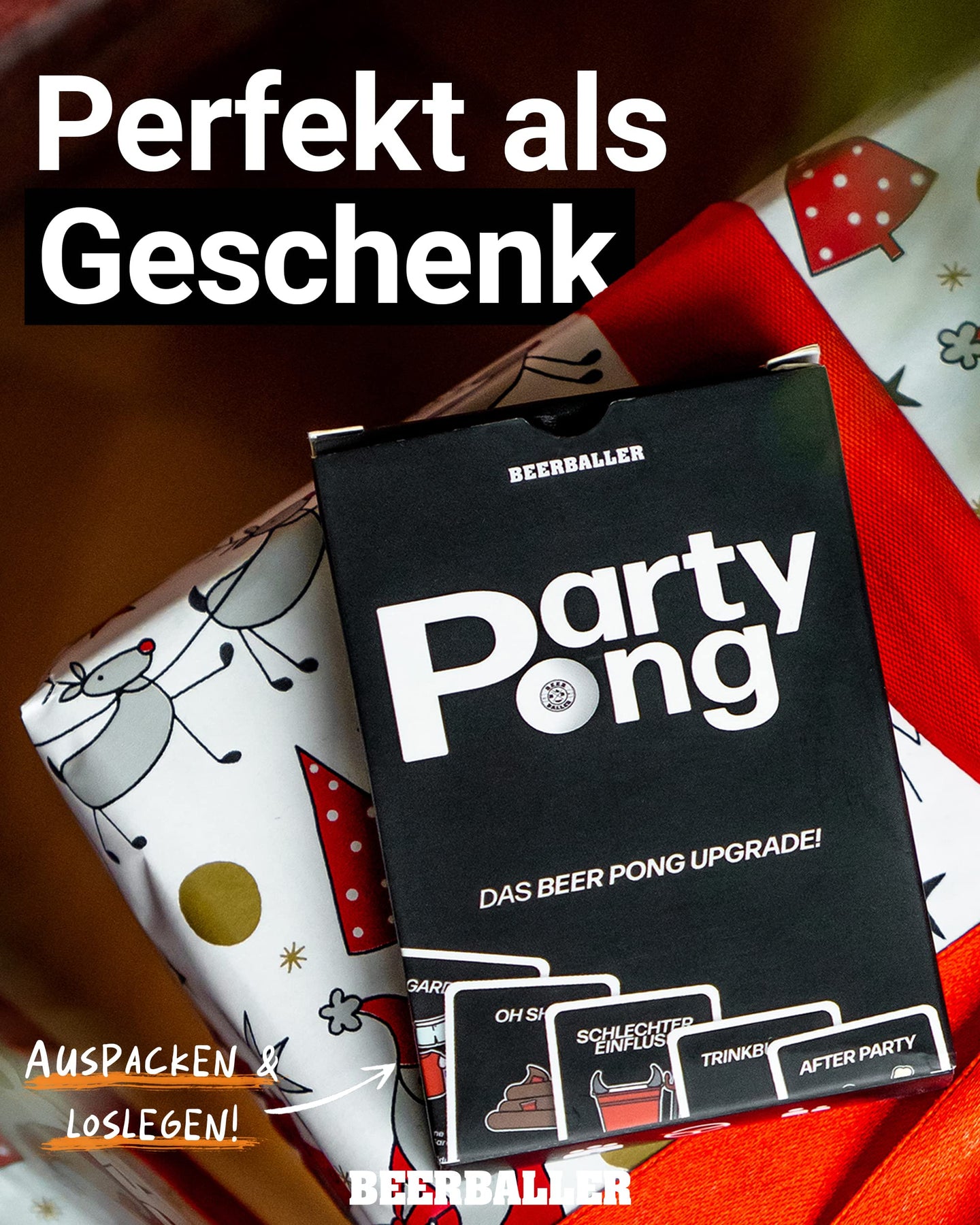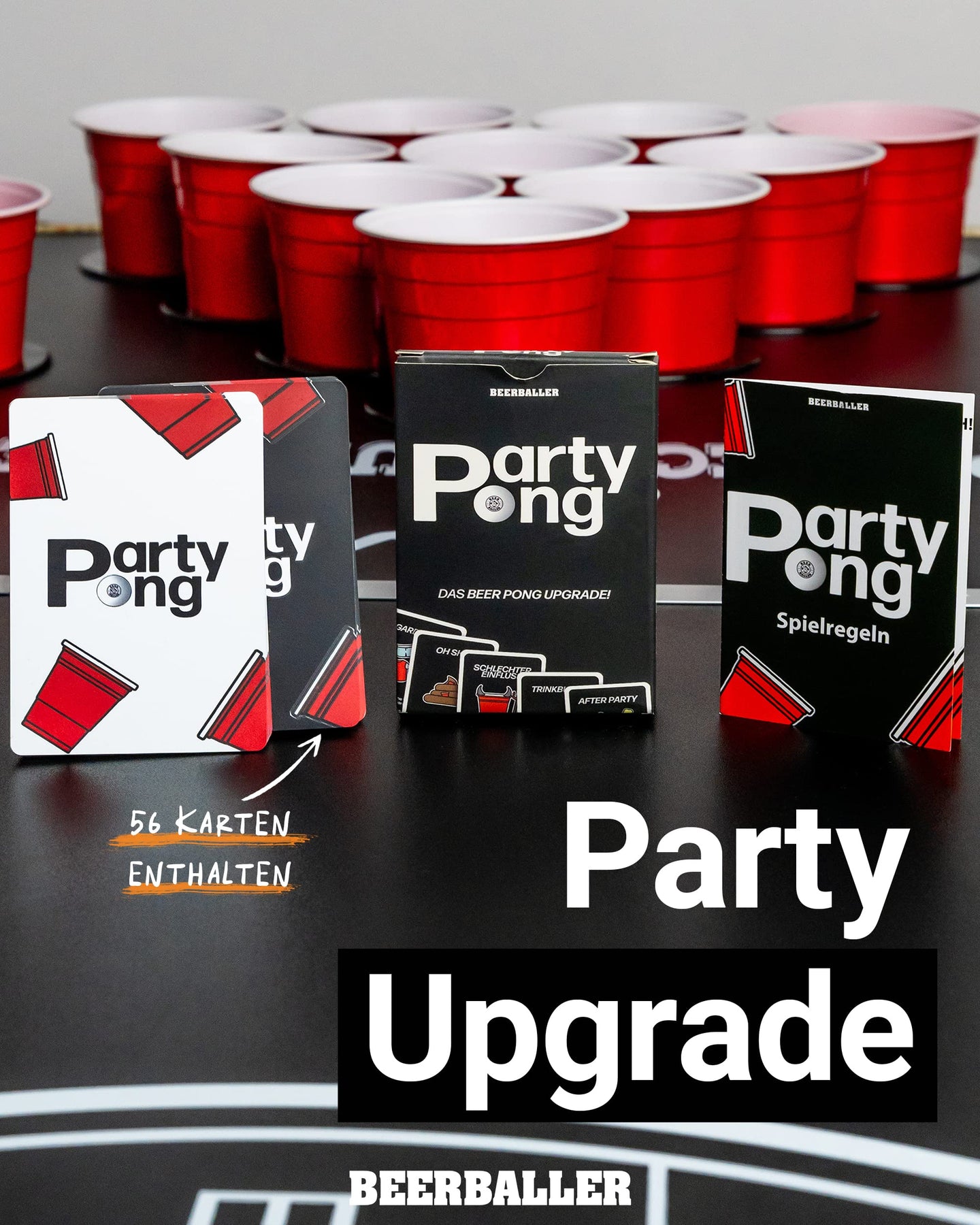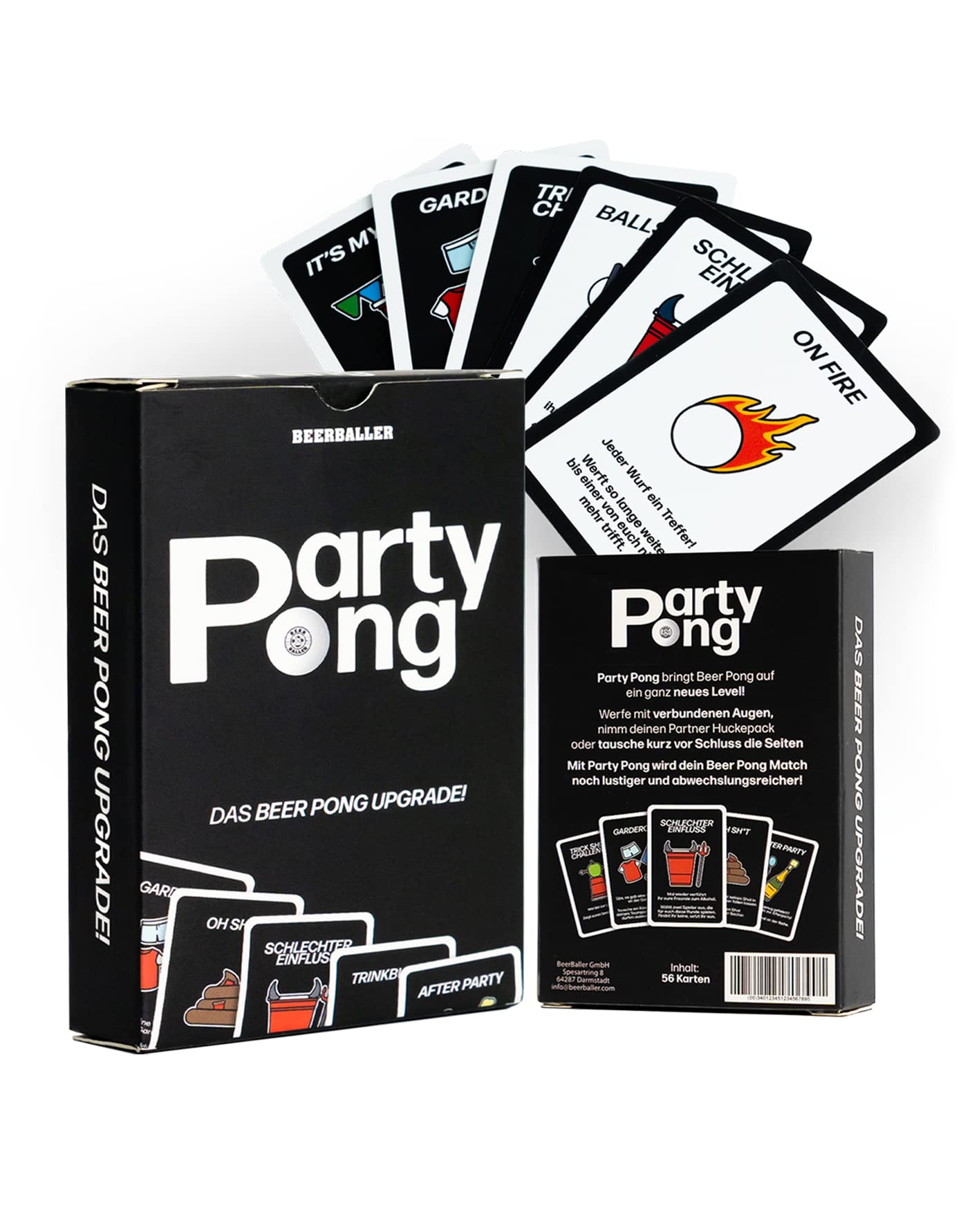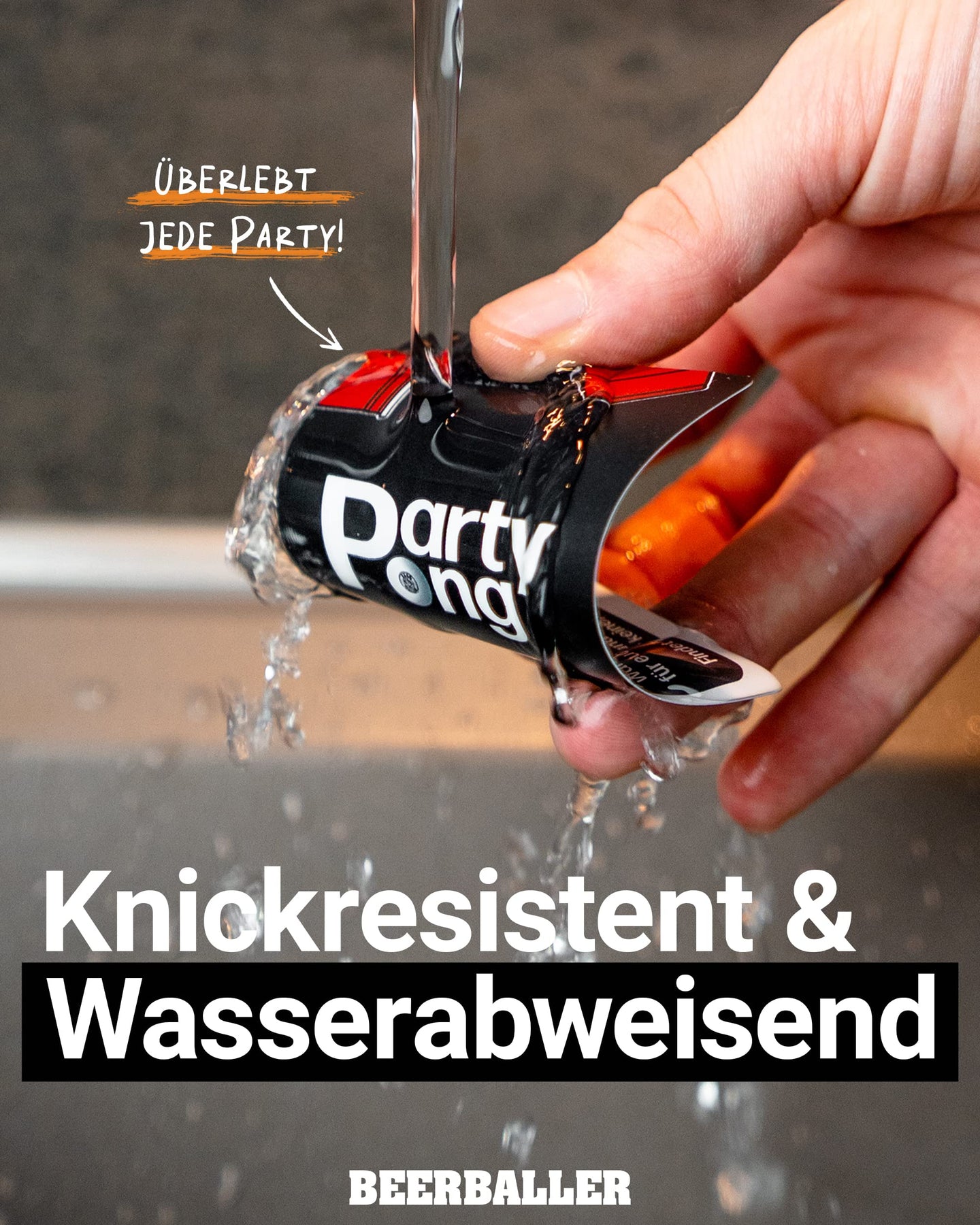 - ✔️ DAS BEER PONG UPGRADE - Werfe mit verbundenen Augen, nimm dein Partner Huckepack oder tausche kurz vor Schluss die Seiten. Mit Party Pong wird dein Beer Pong Match noch lustiger und abwechslungsreicher!