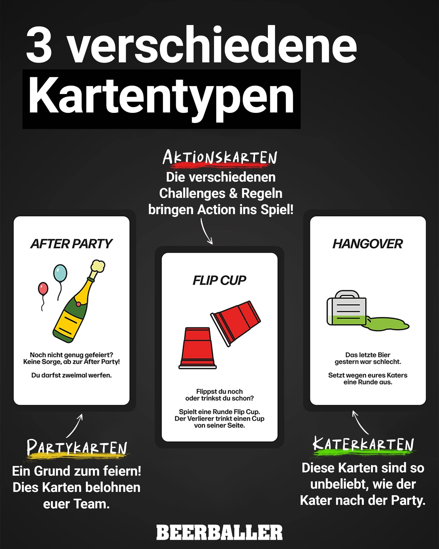 - ✔️ EINFACHES SPIELPRINZIP - Vor jedem Wurf wird eine Karte gezogen. Die Aufgabe der Karte muss von beiden Bierpong Spielern absolviert werden. Sieger ist wer zuerst alle Becher des Gegners trifft. Aber Vorsicht: Das Spiel kann sich schneller drehen als du denkst!
