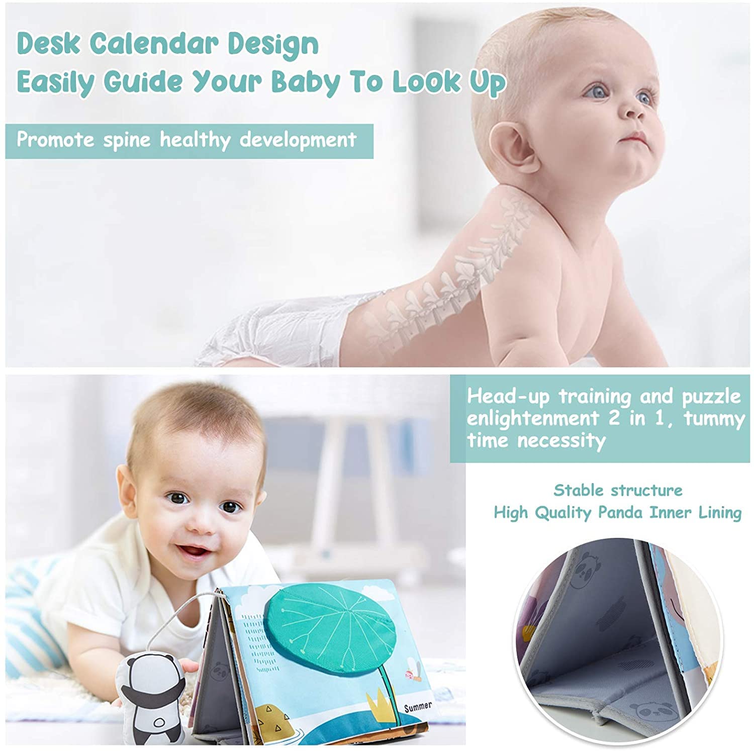 - Farbsehen für 6-12 Monate: Nach 6 Monaten tritt das Baby allmählich in die Farbsehperiode ein. Das weiche Buch Panda's Year Pages thematisiert Frühling, Sommer, Herbst und Winter und zeigt unterschiedliche Farben zu verschiedenen Jahreszeiten. Die zerknitterten Seiten und Bilder können die Aufmerksamkeit des Babys wirklich auf sich ziehen, bunte Farben helfen, die visuelle Zone und die Gehirnentwicklung des Babys zu stimulieren.