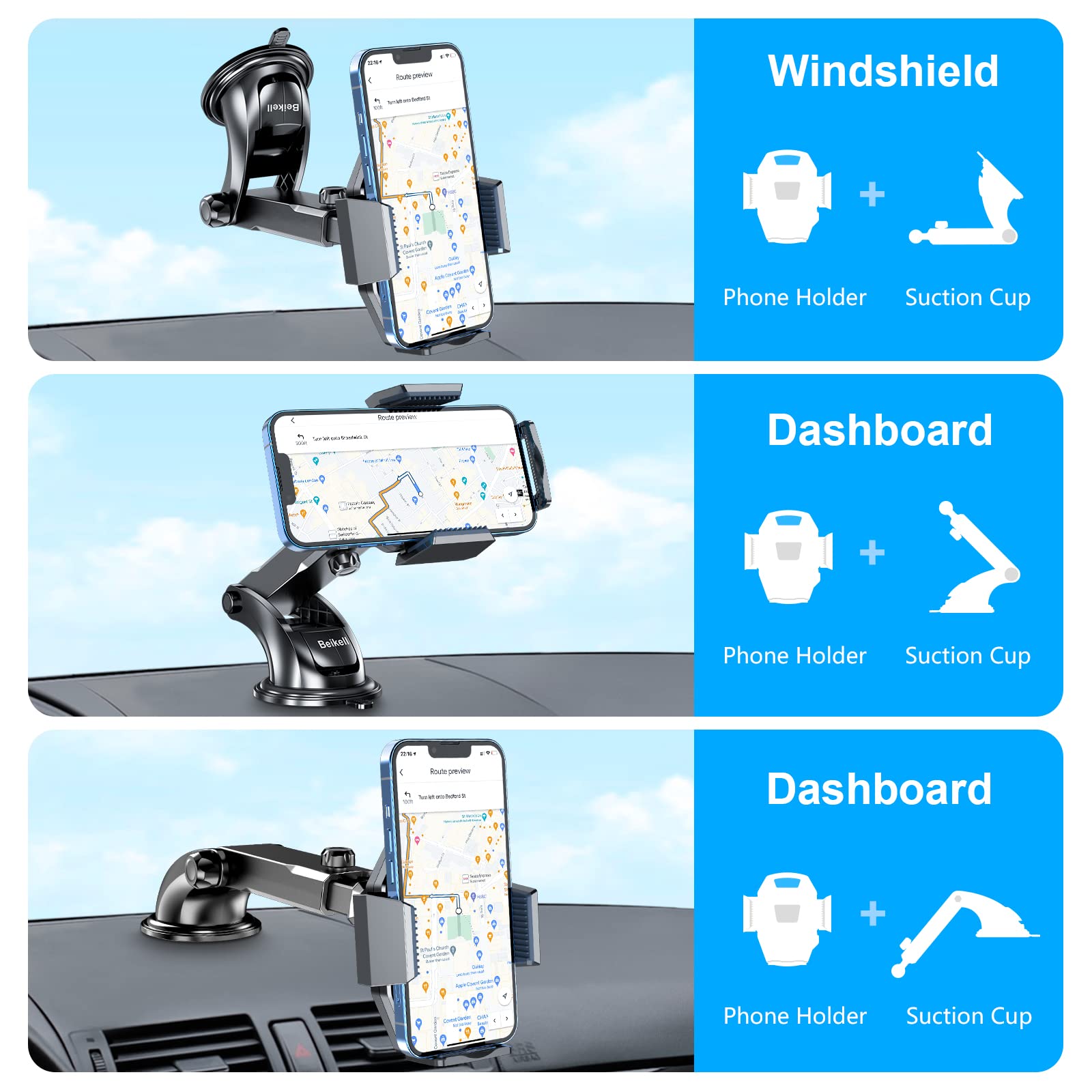 - Stabil und Sicher: Fester Halt an Armaturenbrett oder Windschutzscheibe; extrastarker Saugnapf mit klebrigem bietet exzellente Haftung; widersteht bis zu 20 kg Zugkraft ohne sich zu lösen