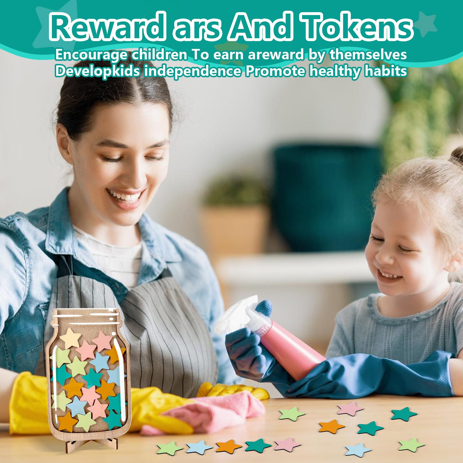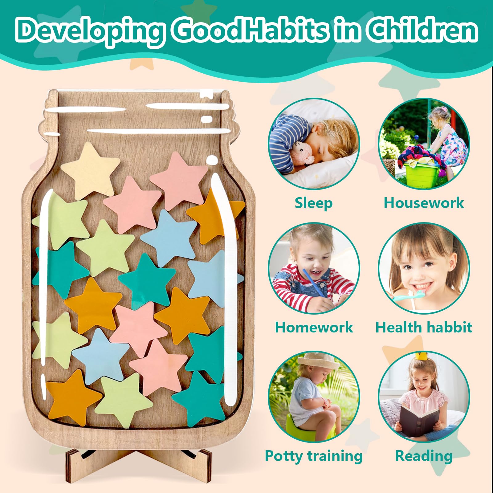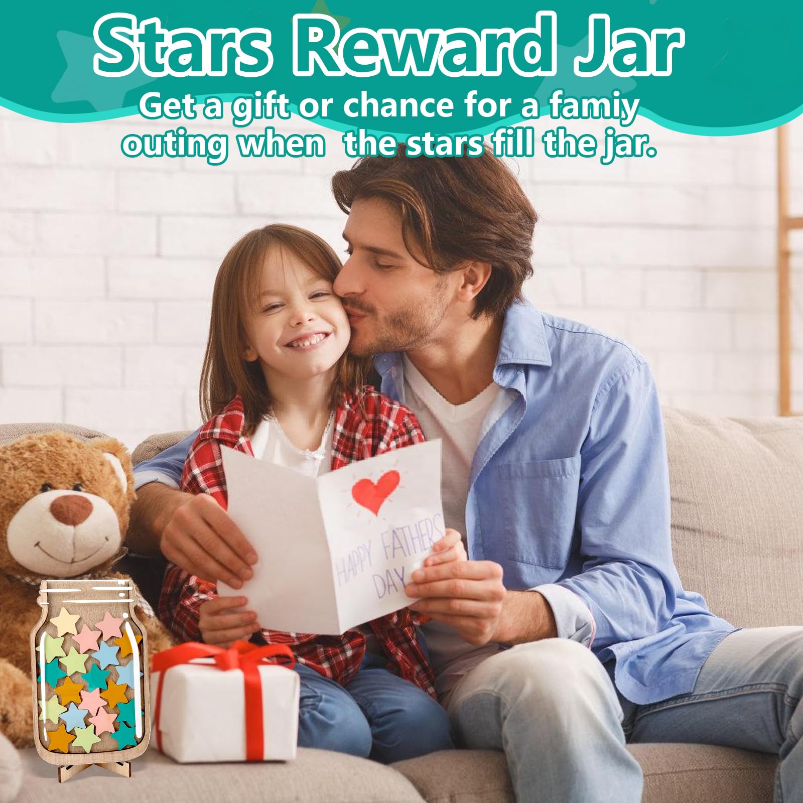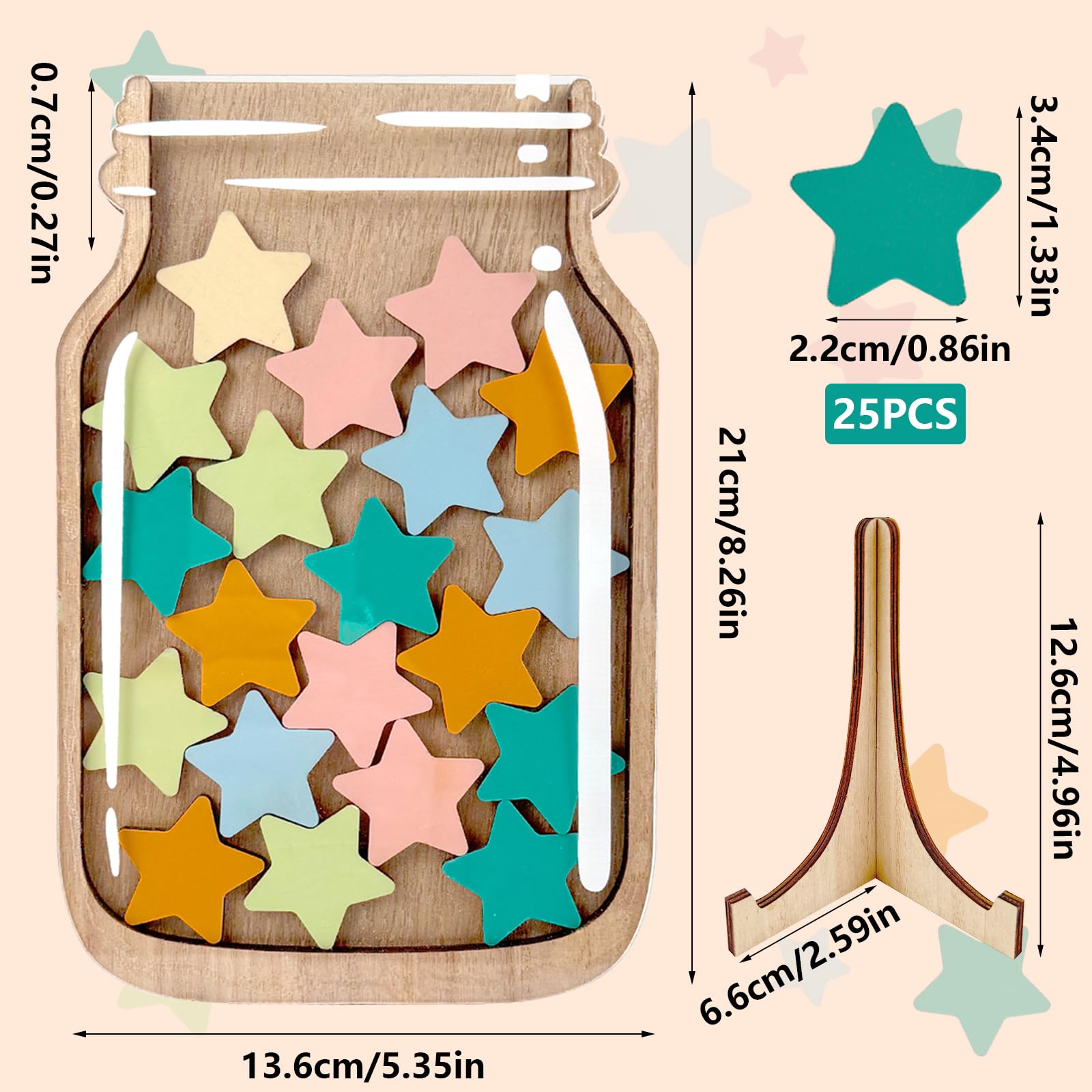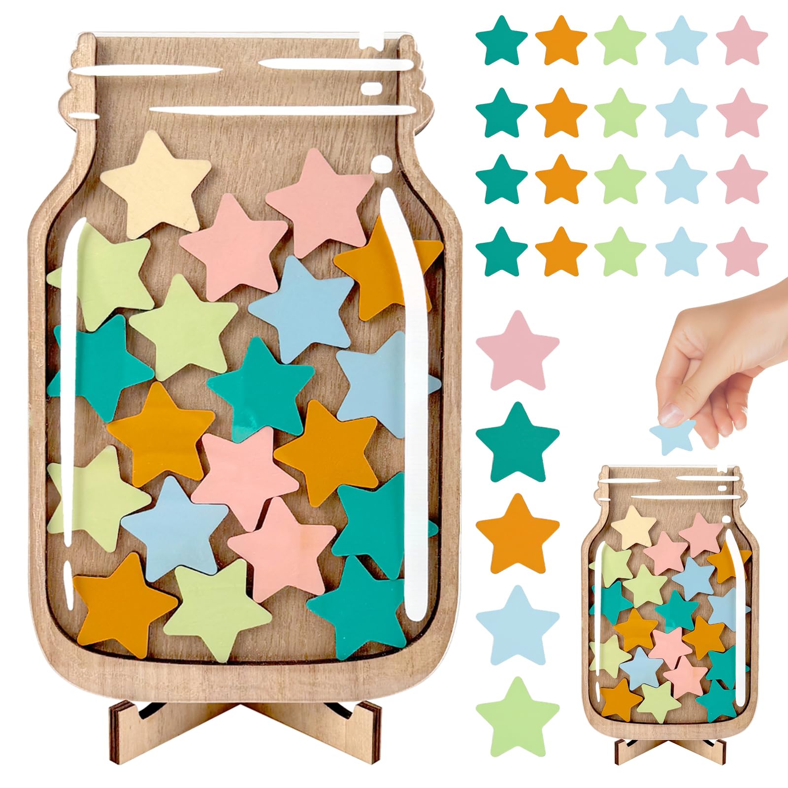 - 【QUALITY MATERIALS】Unser Belohnungsglas mit Sternen für Kinder für Kinderverhalten besteht aus hochwertigen Holzwerkstoffen mit feiner Verarbeitung, ungiftig, geschmacklos und glatt ohne Grate. Sein niedliches Sterndesign macht es nicht nur Spaß, sondern fördert auch gutes Verhalten.