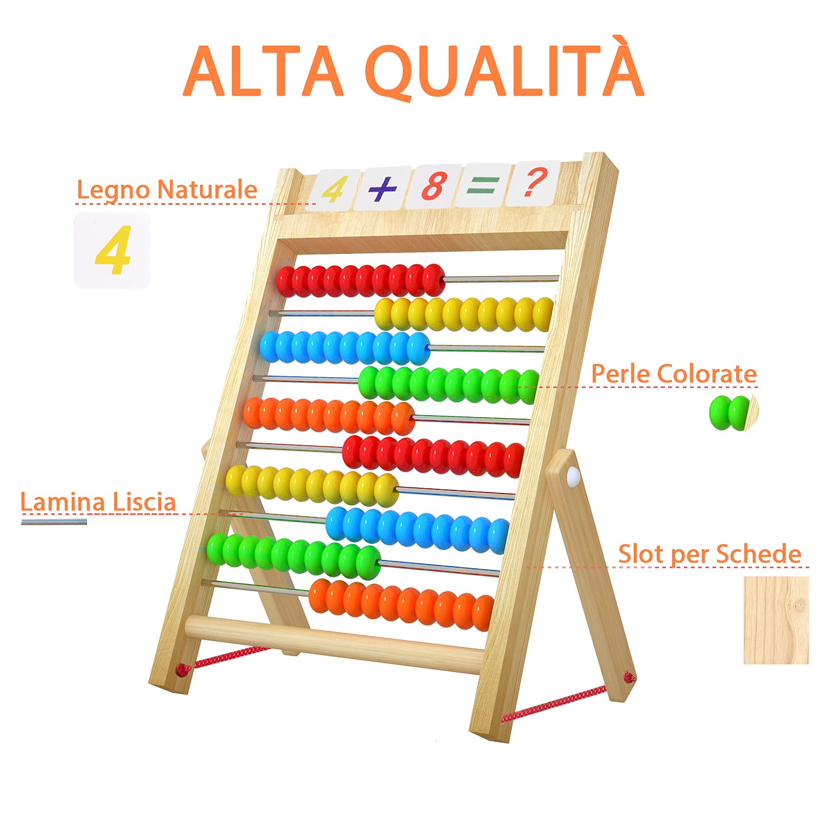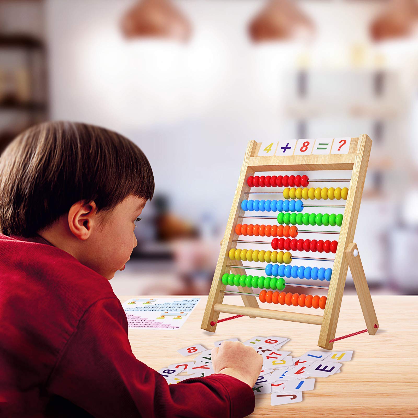 • Material: Der Abakus besteht aus Holz, Der Edelstahlschieber ist leichter zu schieben, Perlen bestehen aus Kunststoff. Sicher und ungiftig.