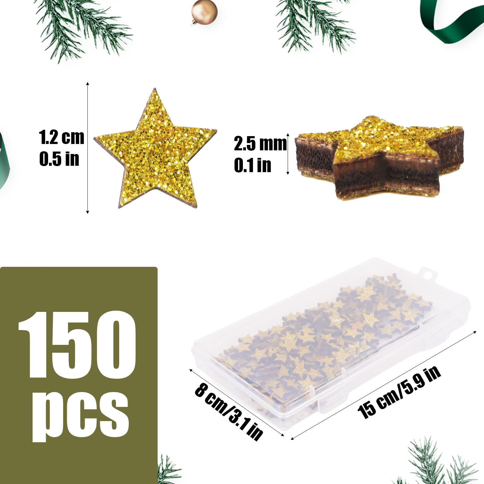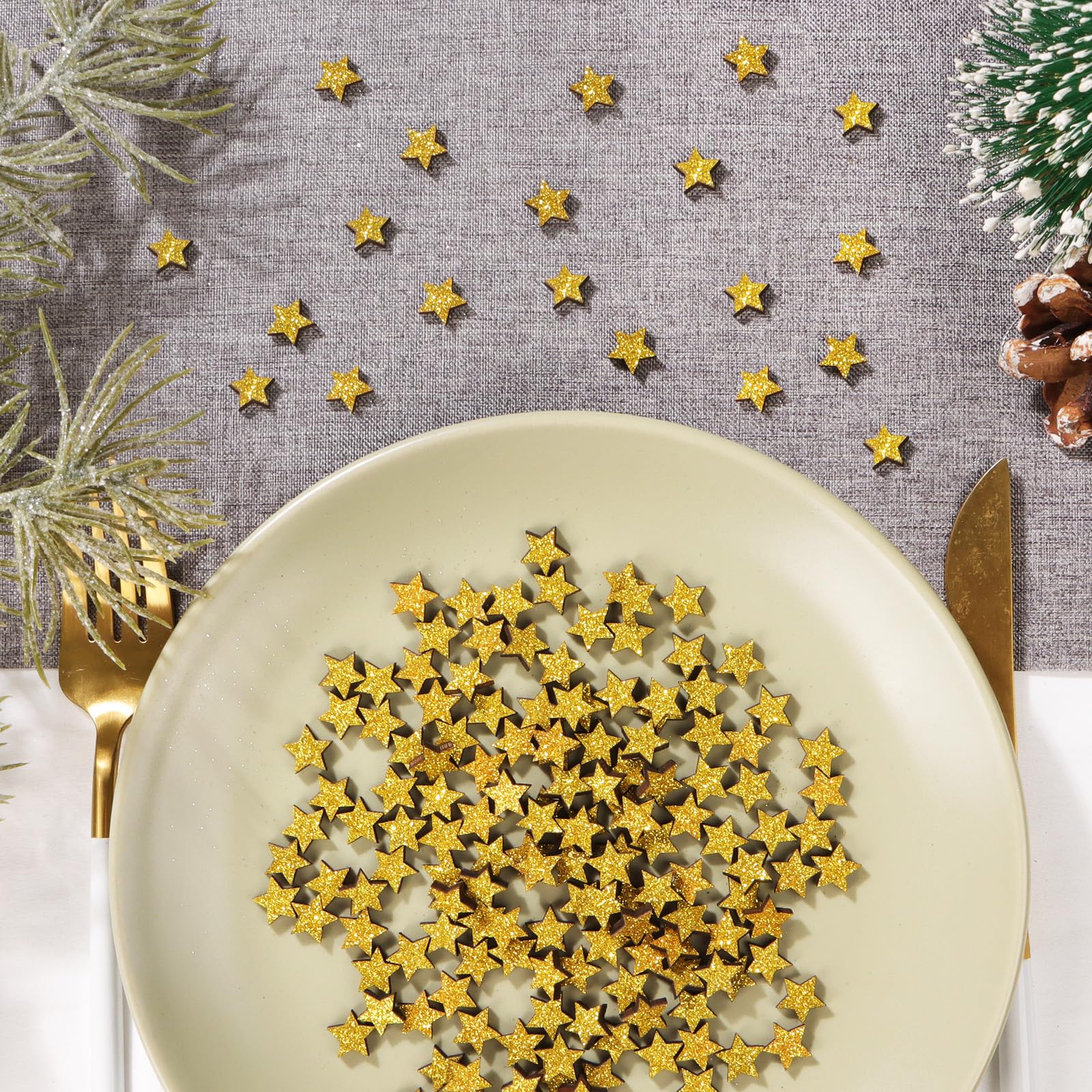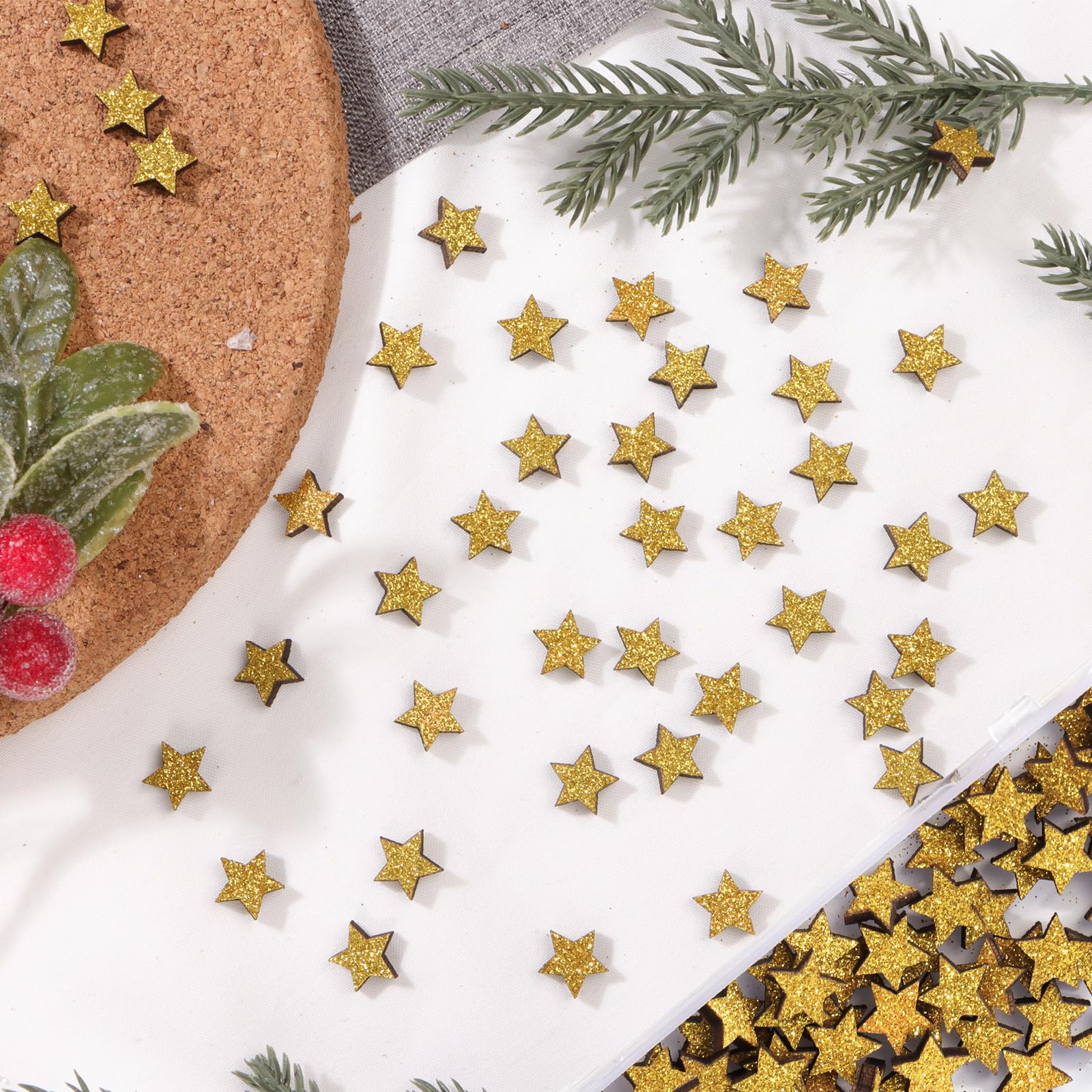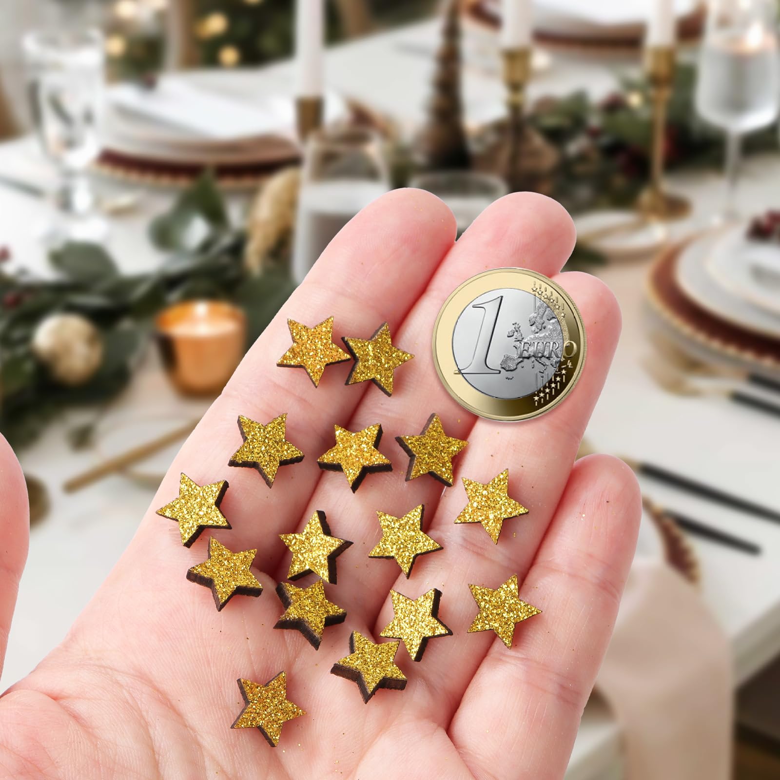 Festlicher Glitzer-Effekt: Die goldene Beschichtung sorgt für einen warmen, weihnachtlichen Glanz – perfekt für gemütliche Dekorationen. Vielseitig einsetzbar: Ob als Tischdeko, zum Basteln von Weihnachtskarten, im Adventskranz oder als Highlight für Geschenkverpackungen – die Einsatzmöglichkeiten sind endlos. Nachhaltig & wiederverwendbar: Im Gegensatz zu Einweg-Konfetti können diese Holzsterne jedes Jahr erneut genutzt werden. Sicher & hochwertig: Glatt geschliffen, ohne scharfe Kanten – ideal auch für Bastelprojekte mit Kindern. Praktische Verpackung: Geliefert in einer stabilen Aufbewahrungsbox, bleiben die Sterne ordentlich sortiert und geschützt.
