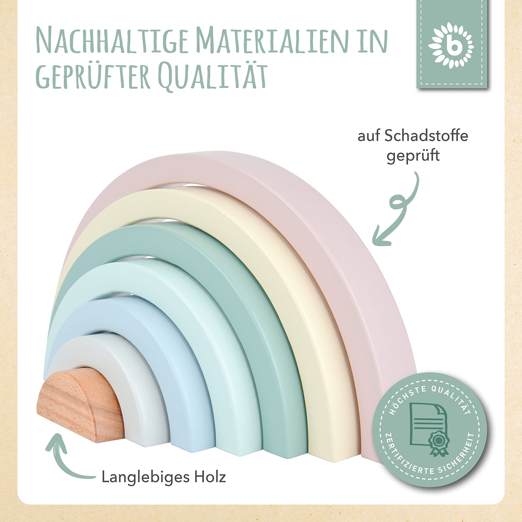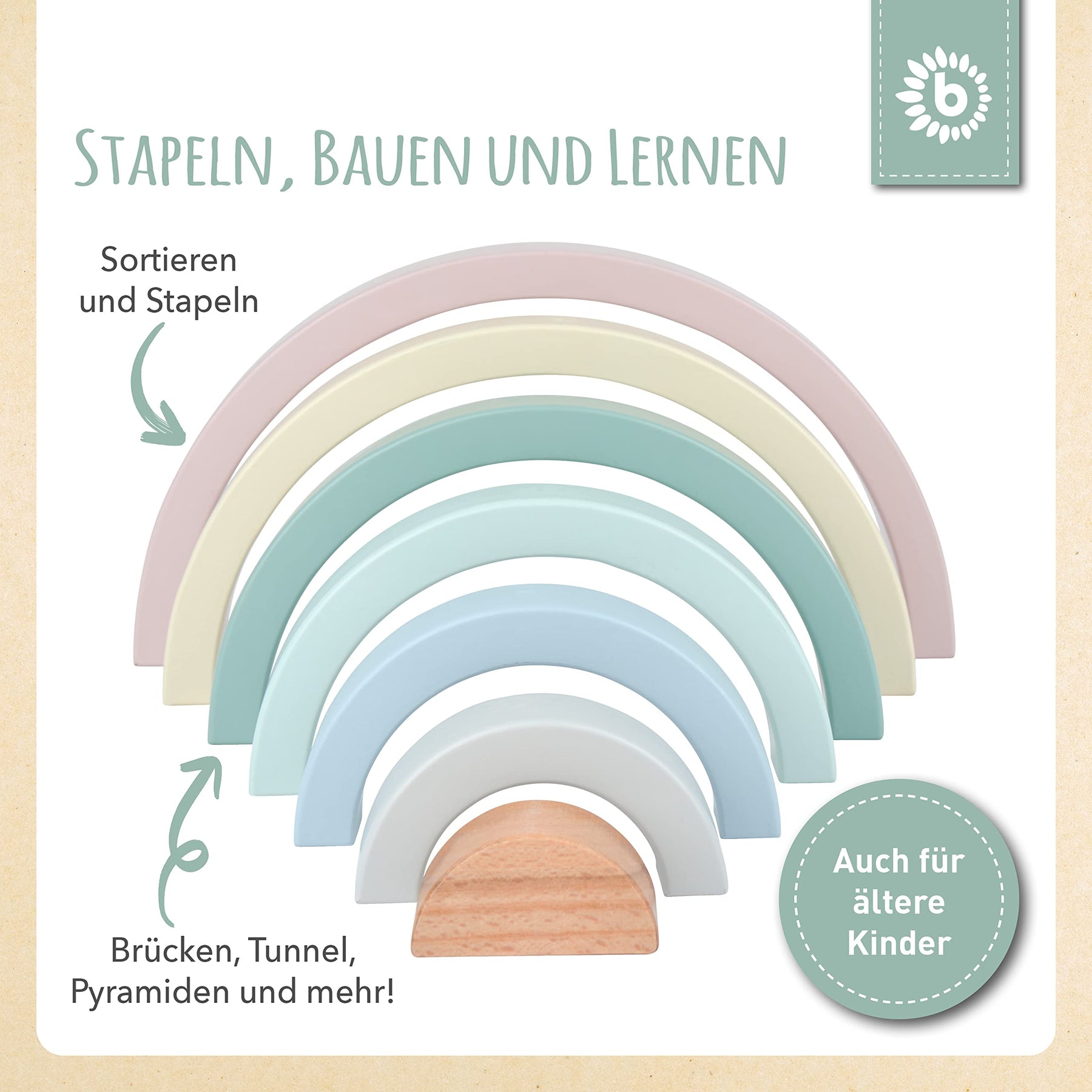Bieco Holz Regenbogen Baby Pastell | Steckspiel | Spielzeug Stapelturm Montessori Holzspielzeug ab 0 Monaten Holzregenbogen Stapel