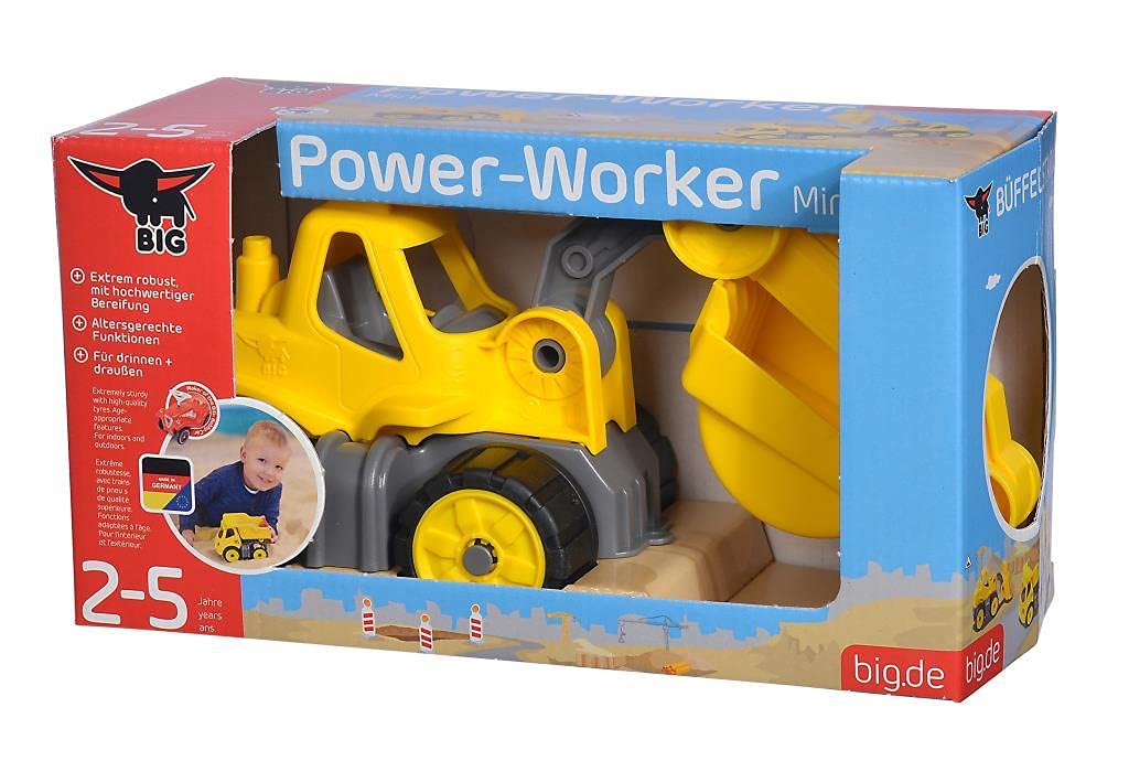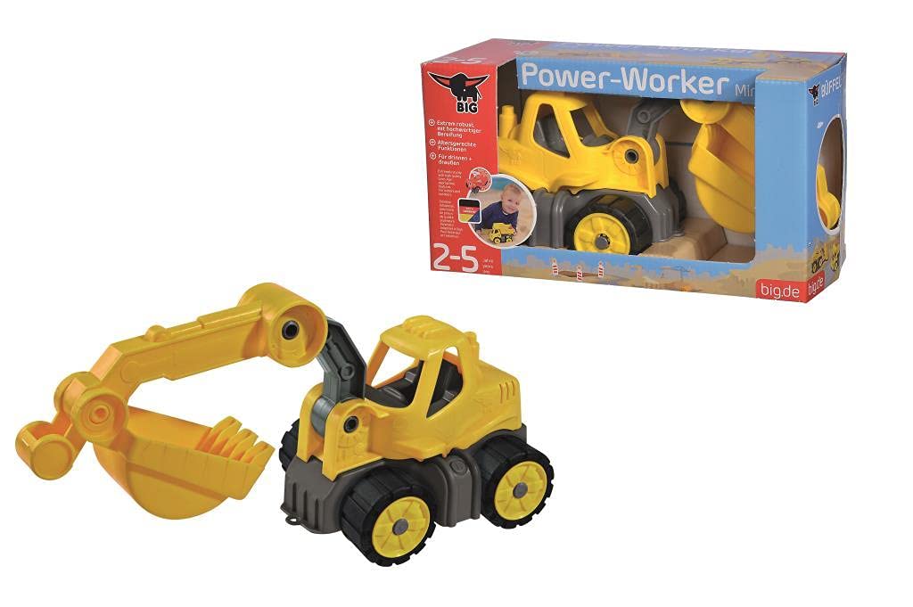 BIG - Power-Worker Mini Bagger - Baggerfahrzeug geeignet als Sandspielzeug und für das Kinderzimmer, Reifen aus Softmaterial, perfekt für unterwegs, für Kinder ab 2 Jahren