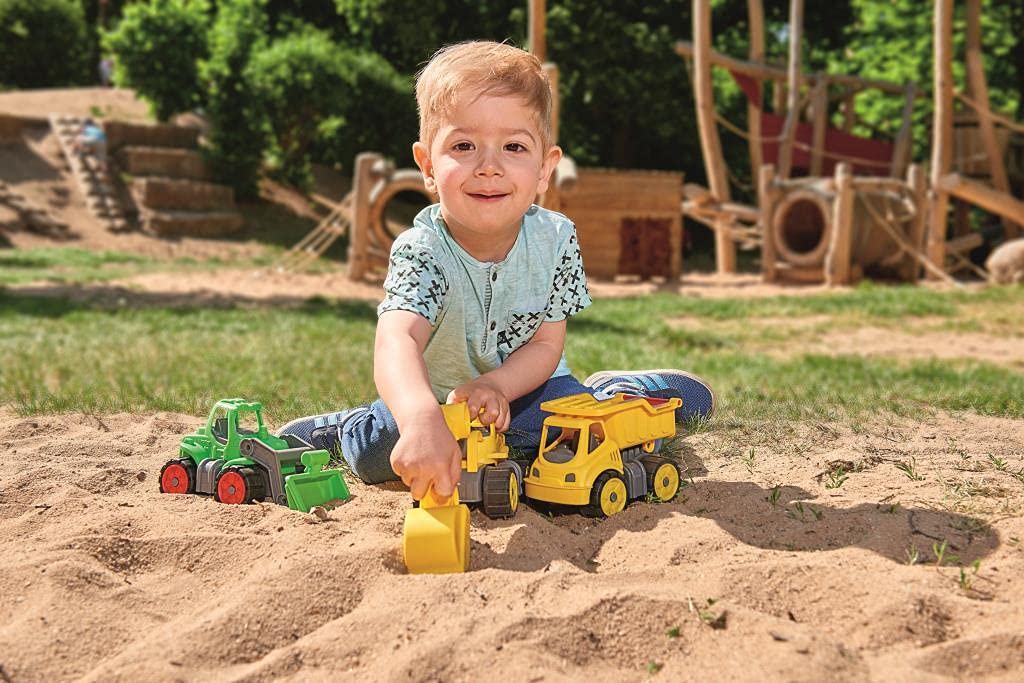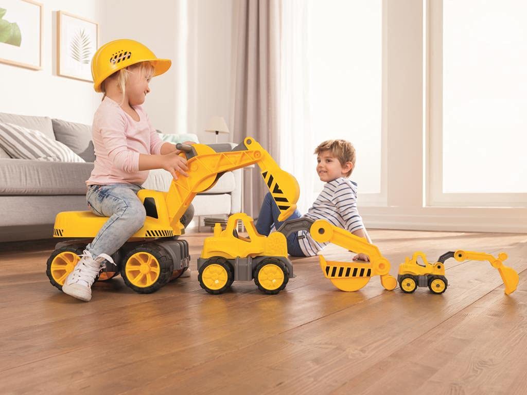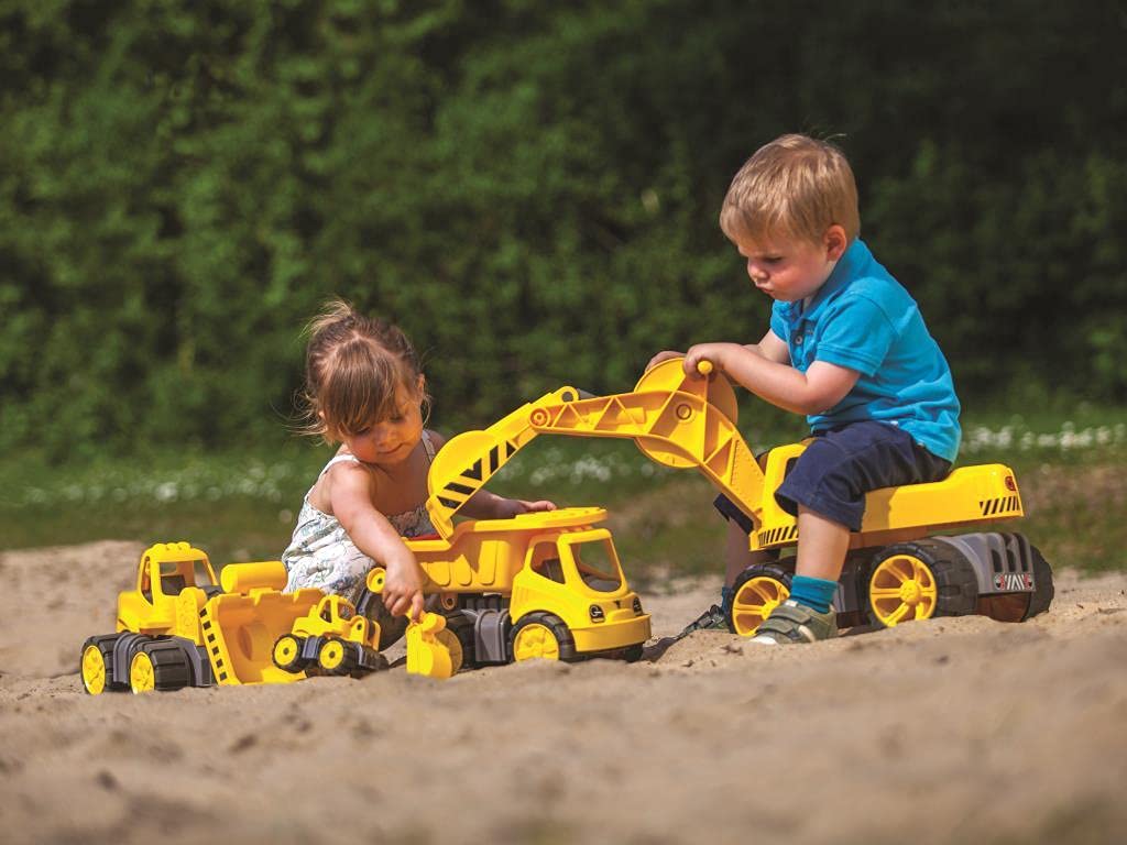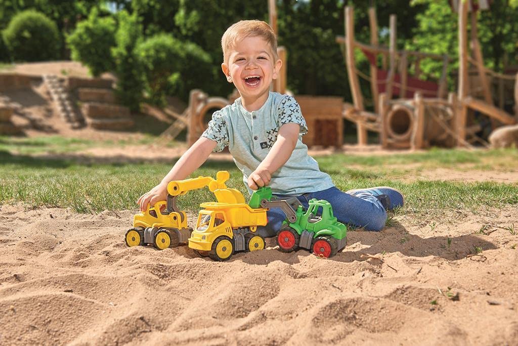 • Für Kinderhände - Durch die Form ist das Baustellenfahrzeug gut auf die Ergonomie kleiner Hände abgestimmt. Es lässt sich einfach bedienen und auf unterschiedlichen Untergründen fahren