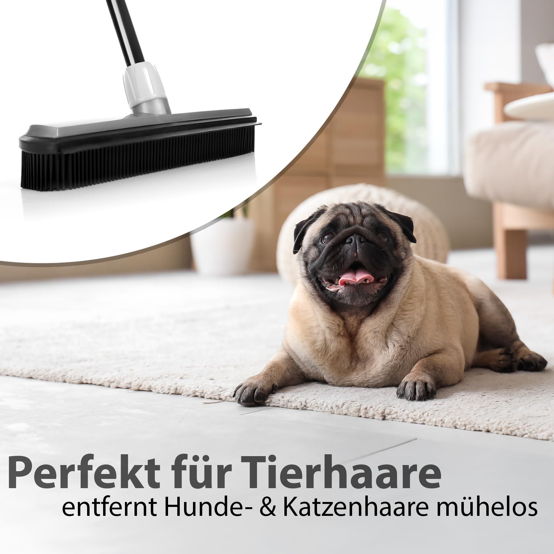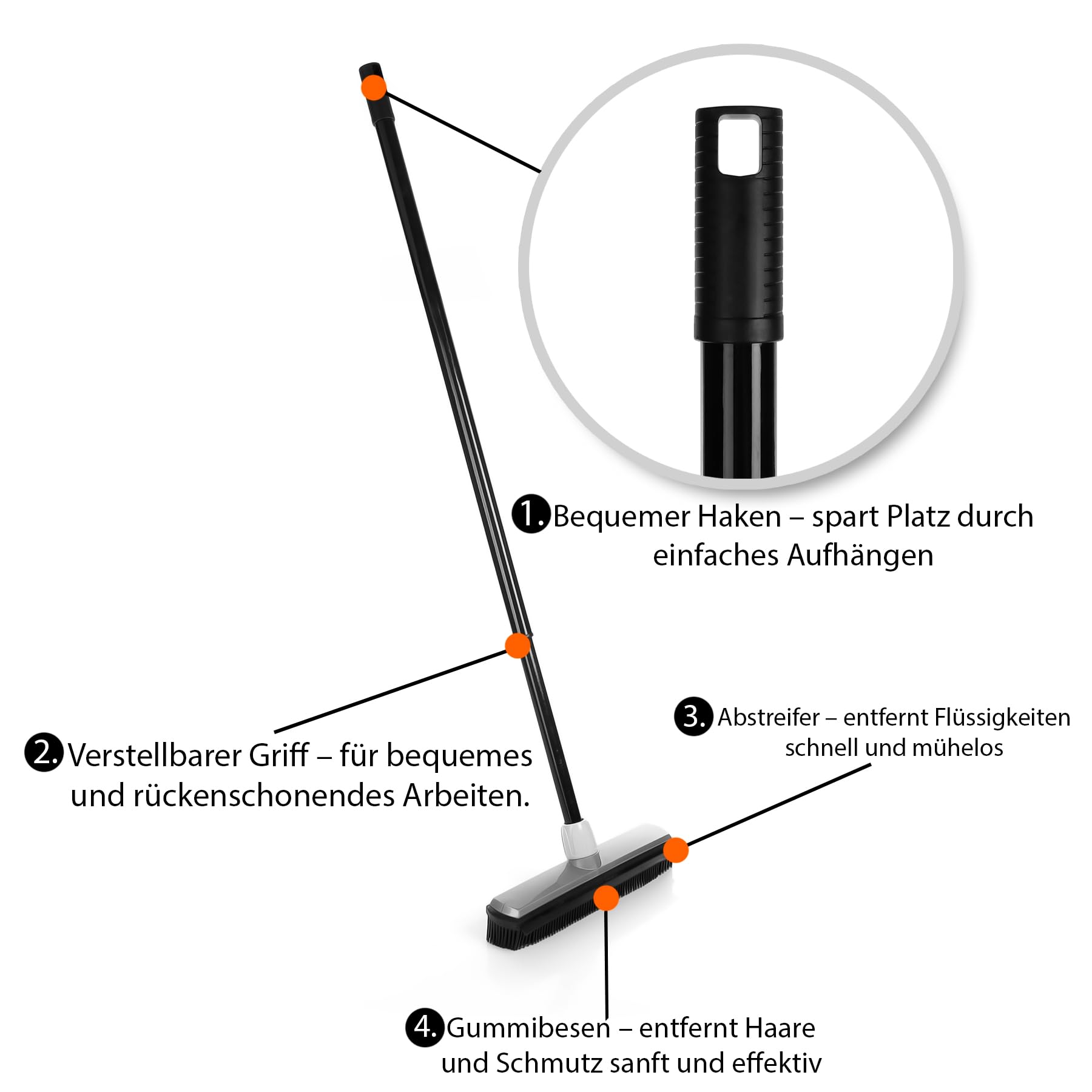 Einzelheiten: BigDean Gummibesen mit Stiel ausziehbar bis 150 cm – Perfekt für Tierhaare, Staub & mehr!