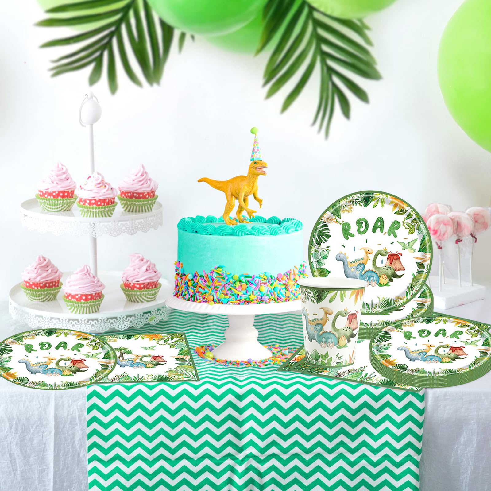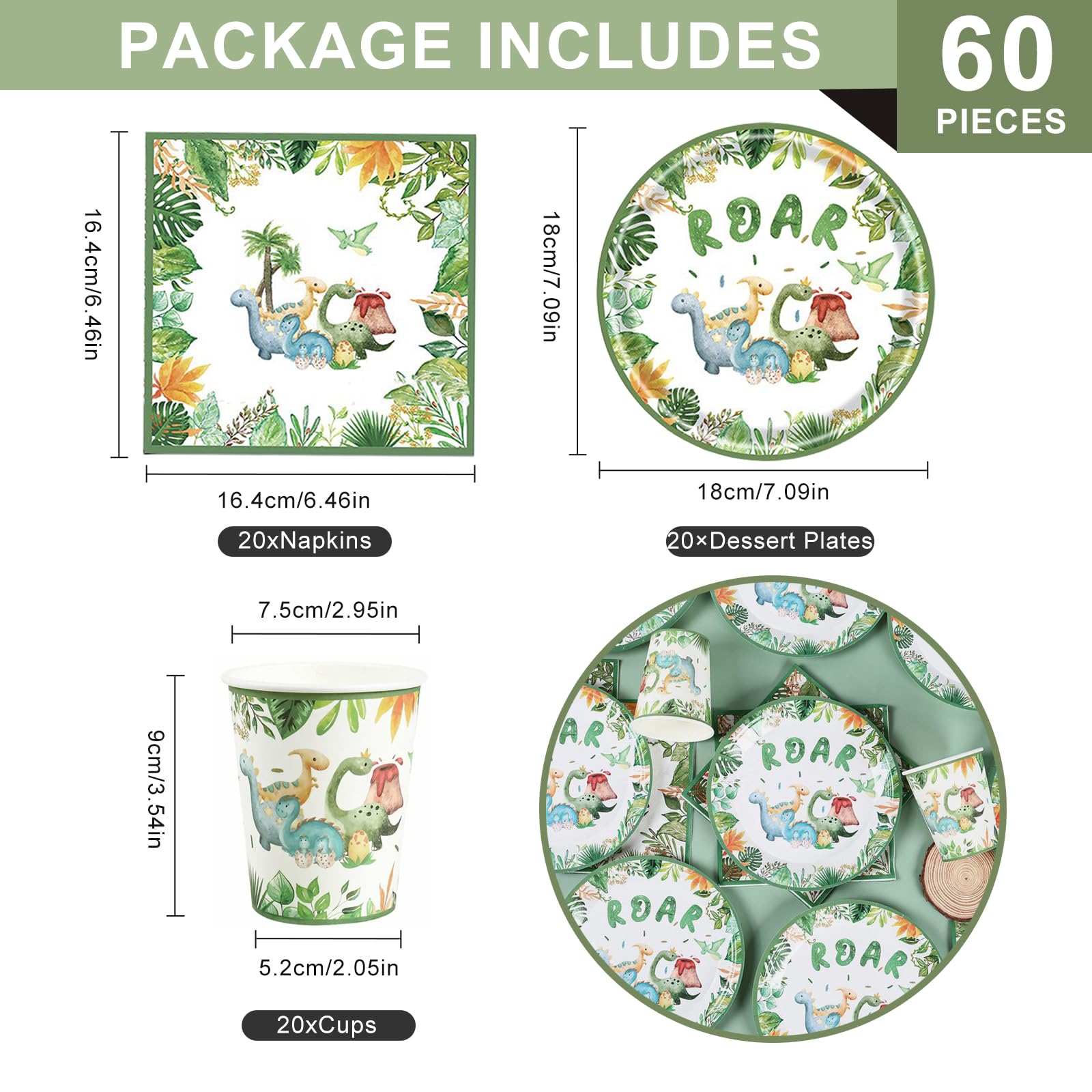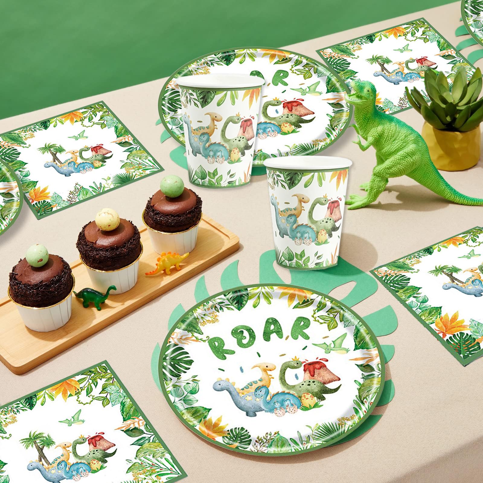• 20 Gäste Dino Geburtstag Deko: Das Set enthält 20 7-Zoll-Teller, 20 Becher und 20 Servietten für 20 Gäste.