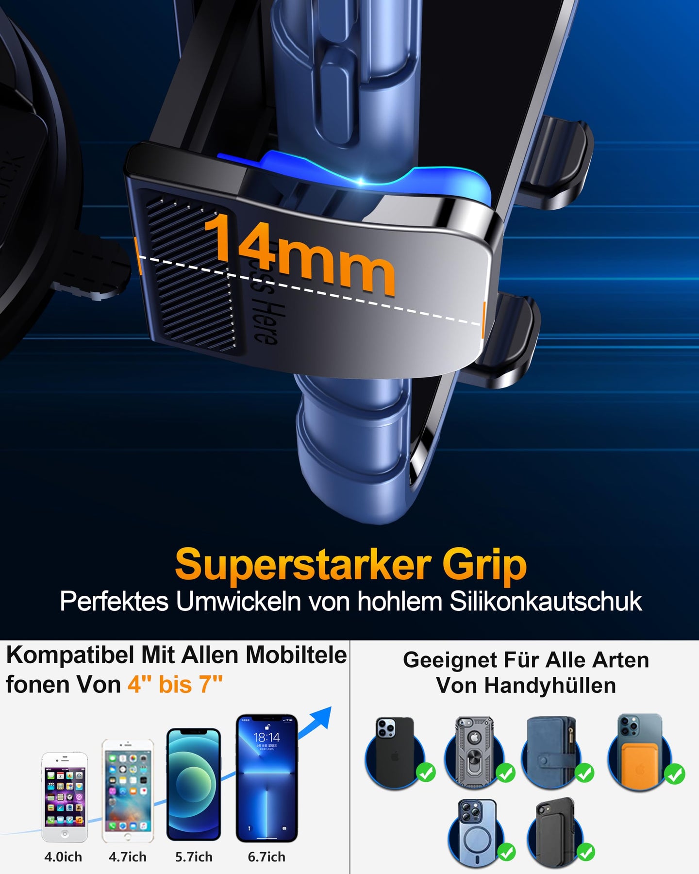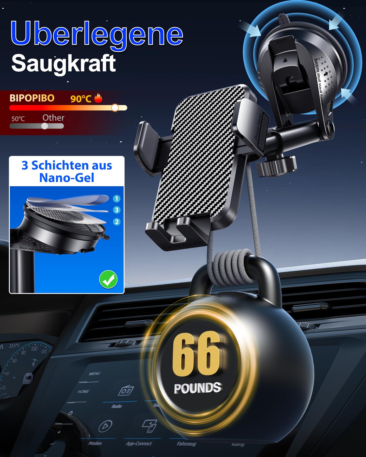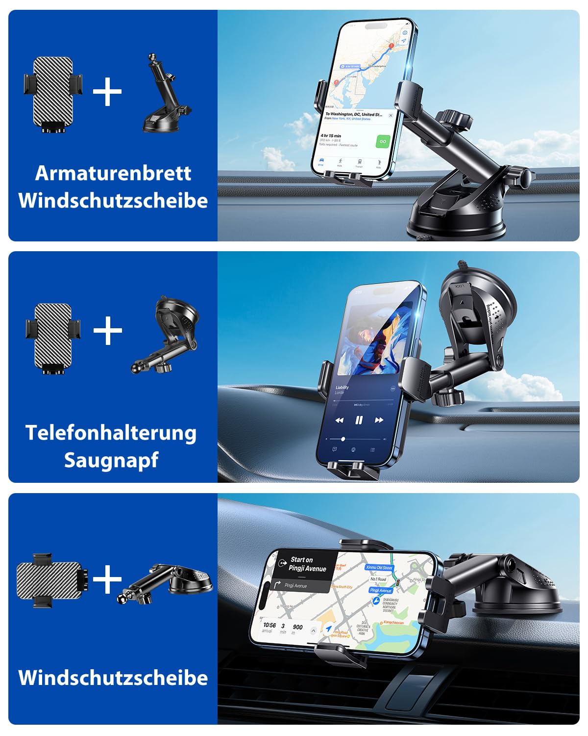 • Neue Version derHandyhalterung Auto: Die iPhone halterung auto verfügt über einen erweiterten Saugnapfboden mit einer verbesserten, klebrigen Gel-Formel für einen stärkeren Halt. Sie kann frei auf Armaturenbrettern und Windschutzscheiben montiert werden und ist ideal zur Unterstützung von Lkw-Fahrern, Taxifahrern und Pick-up-Fahrern beim sicheren Fahren.