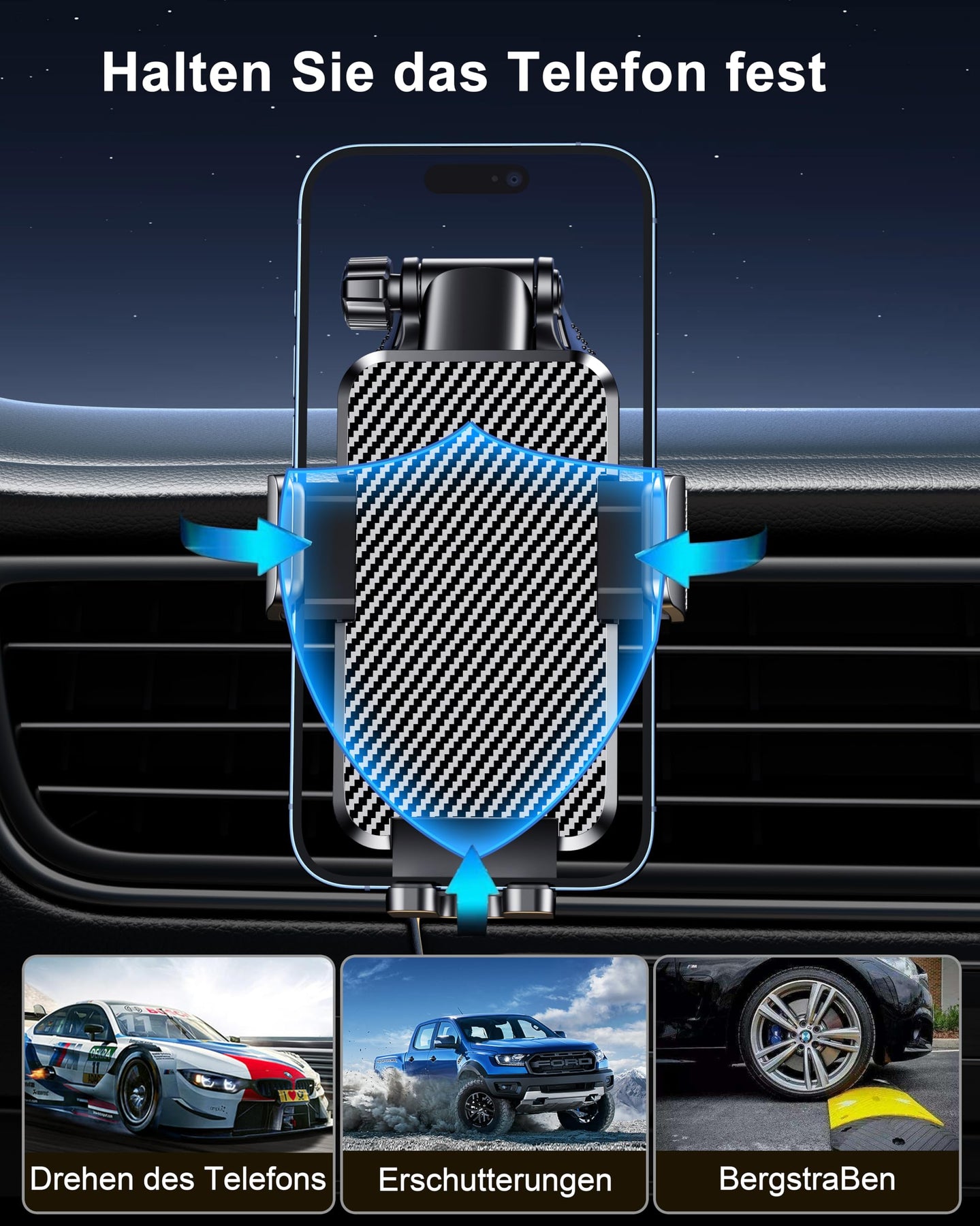 • Schnelle Ent-/Verriegelung Ihres Telefons: Die Armaturenbrett-Telefonhalterung bietet eine Entriegelungstaste auf der Rückseite für eine reibungslose Rutsche, um Ihr Telefon mit haltbaren Greifarmen zu lösen. Ihr Telefon wird stabil gehalten, nachdem Sie die Verriegelungsstange gedrückt haben.