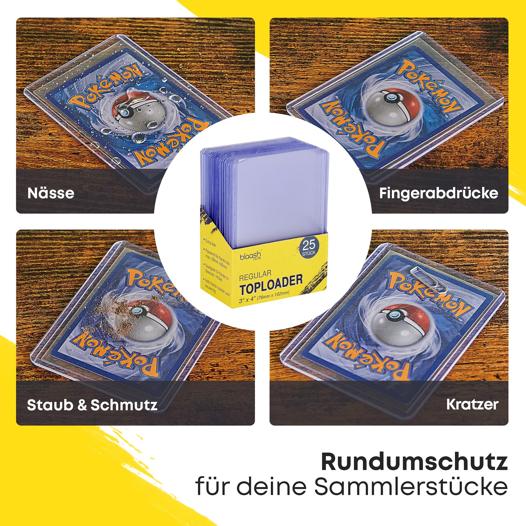 • ⭐RUNDUMSCHUTZ: Ob Staub und Schmutz, Kratzer und Risse, Nässe oder abgeknickte Ecken - die robusten Toploader schützen deine Spiel- und Sammelkarten vor Abnutzung und Wertverlust.