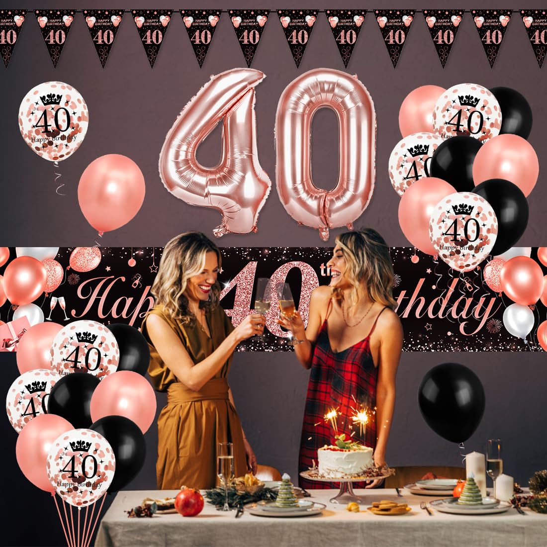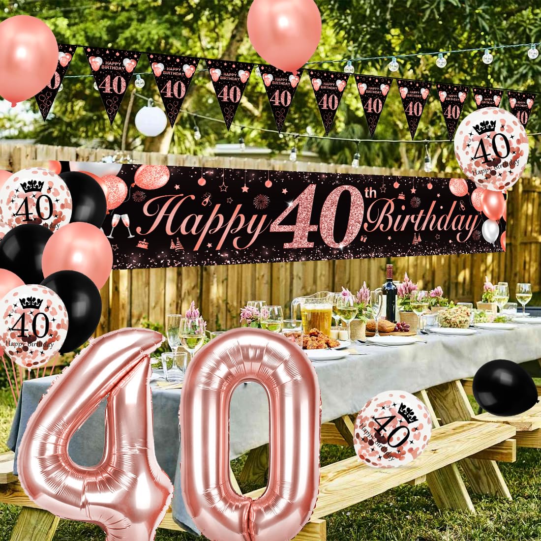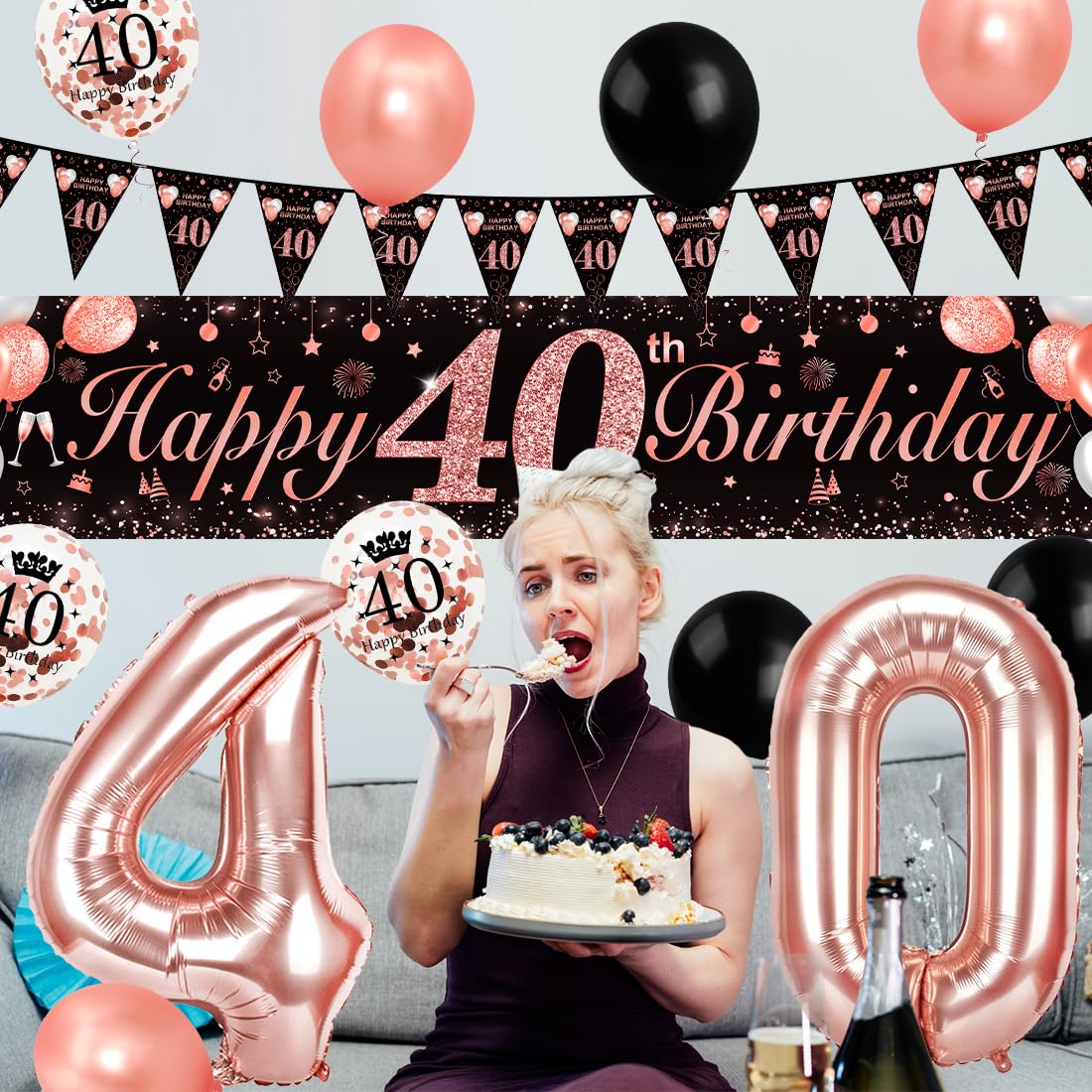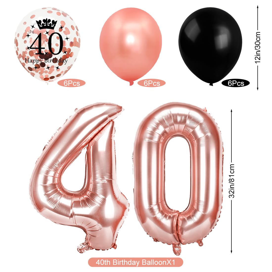 - 🎁【Sorgenfreier Service】 Ein 40. Geburtstag ist ein wichtiger Tag und der einzigartige und brillante schwarz-roségoldene Stil ist perfekt für Geburtstagsfeiern. Wenn Sie irgendwelche Fragen zu unseren Produkten haben, kontaktieren Sie uns bitte über Amazon oder per E-Mail und wir werden Ihre Bedenken so schnell wie möglich behandeln.