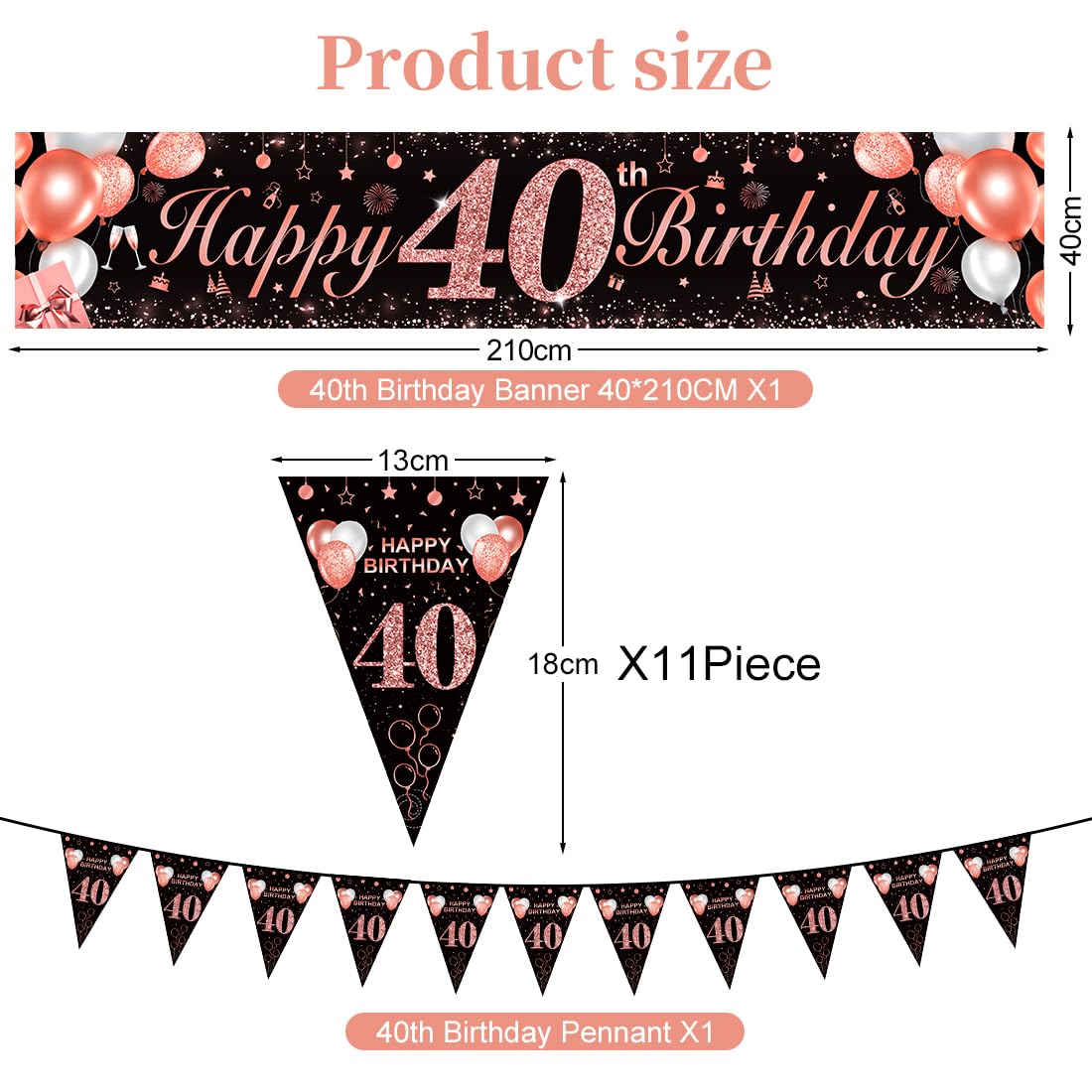 - ✨【40 Geburtstag Deko Kit】Enthält 1 x schwarze Rose Gold Banner(210 x 40cm), 1 x 32 Zoll number "40" Rose Gold Folienballon, 1 x Rose Gold Dreieck Banner (11 Wimpel), 18 x Latex-Ballons (6 x Rose Gold, 6 x Schwarze, 6 x Rose Gold Konfetti), 1 x Rolle Band.