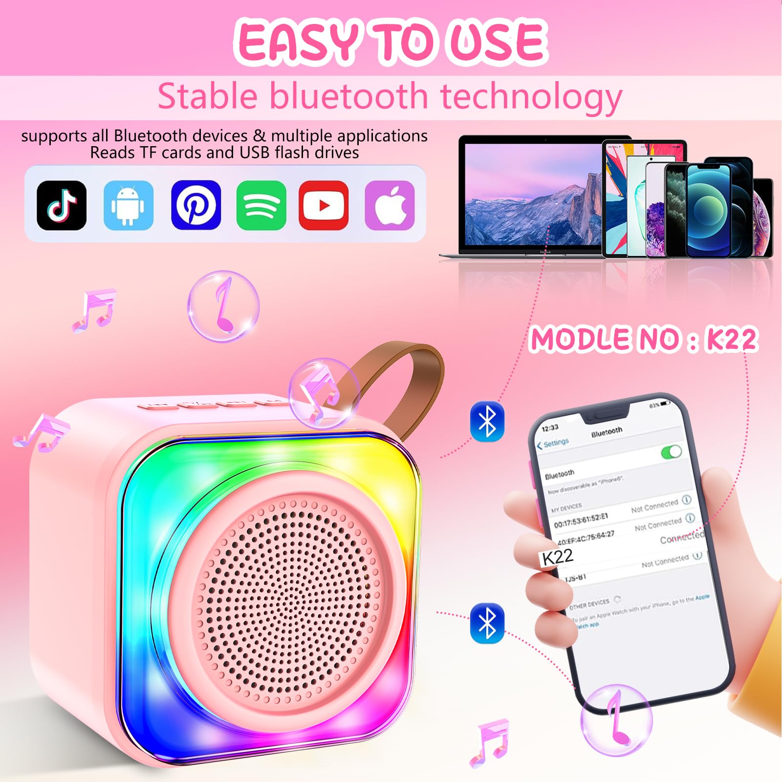 - 【Einfache Bedienung】Das tragbare Karaoke-Maschine unterstützt Bluetooth 5.0, so dass Kinder ihre Handys, Tablets oder andere Bluetooth-fähige Geräte innerhalb einer Entfernung von 50 Fuß problemlos mit dem Karaoke-Gerät verbinden können, um über Musik-Apps ihre Lieblingssongs abzuspielen. Dieses Kinder-Karaoke-Gerät unterstützt auch die Wiedergabe von SD-Karten (nicht enthalten) und USB-Sticks, damit es als eigenständiger Bluetooth-Lautsprecher genutzt werden kann und ideal für Partys ist!
