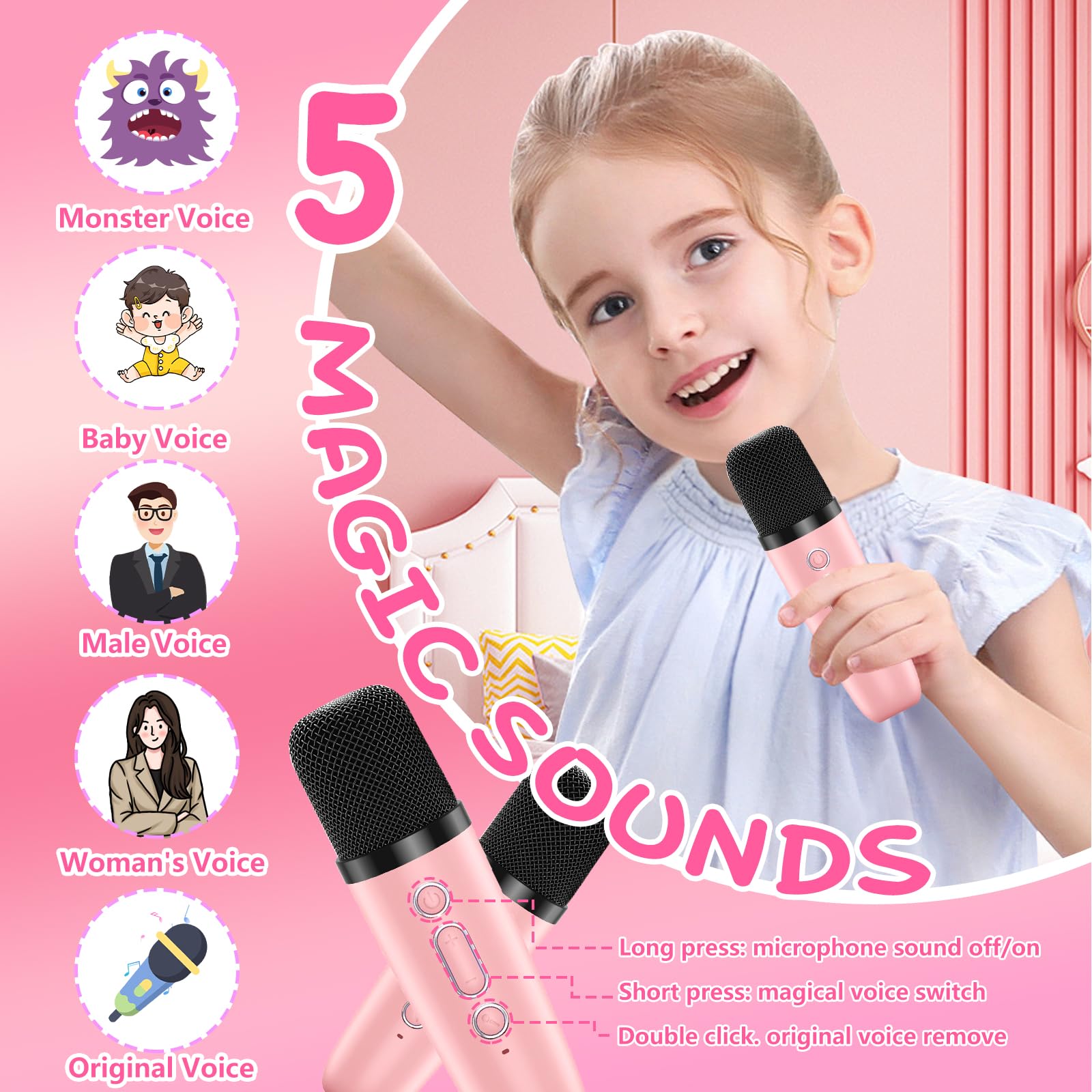 - 【Spaßiger Stimmenverzerrer und LED-Lichteffekt】Das Kinder-Mikrofon verfügt über 5 verschiedene Stimmveränderungsmodi, mit denen Kinder ihre Stimme ändern oder verstärken können, um frei zu scherzen, zu tanzen, zu lachen, zu schreien und zu singen. Die bunten Lichter des Karaoke-Geräts können im Takt der Musik blinken oder den Atemlichtmodus aktivieren, um eine realistische KTV-Atmosphäre zu schaffen und unendliche Überraschungen auf Ihre Weihnachts- und Geburtstagsfeiern zu bringen.