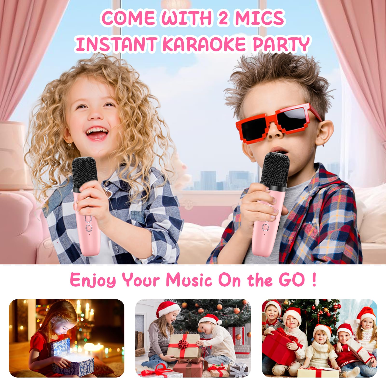 - 【Kreatives Geschenk für Kinder】 Das Karaoke-Gerät und die Mikrofone verfügen über modische Designelemente und kommen in einer exquisiten Geschenkschachtel. Es eignet sich sowohl für Erwachsene als auch Kinder als Geschenk an Geburtstagen, Weihnachten, Valentinstag, Muttertag, Vatertag, Kindertag oder anderen feierlichen Anlässen. Es ist ideal für kinder, die gerne auftreten und das coolste Spielzeug zum Züchten kleiner Sänger. Mit diesem Mini-Karaoke-Gerät ist überall eine Bühne!