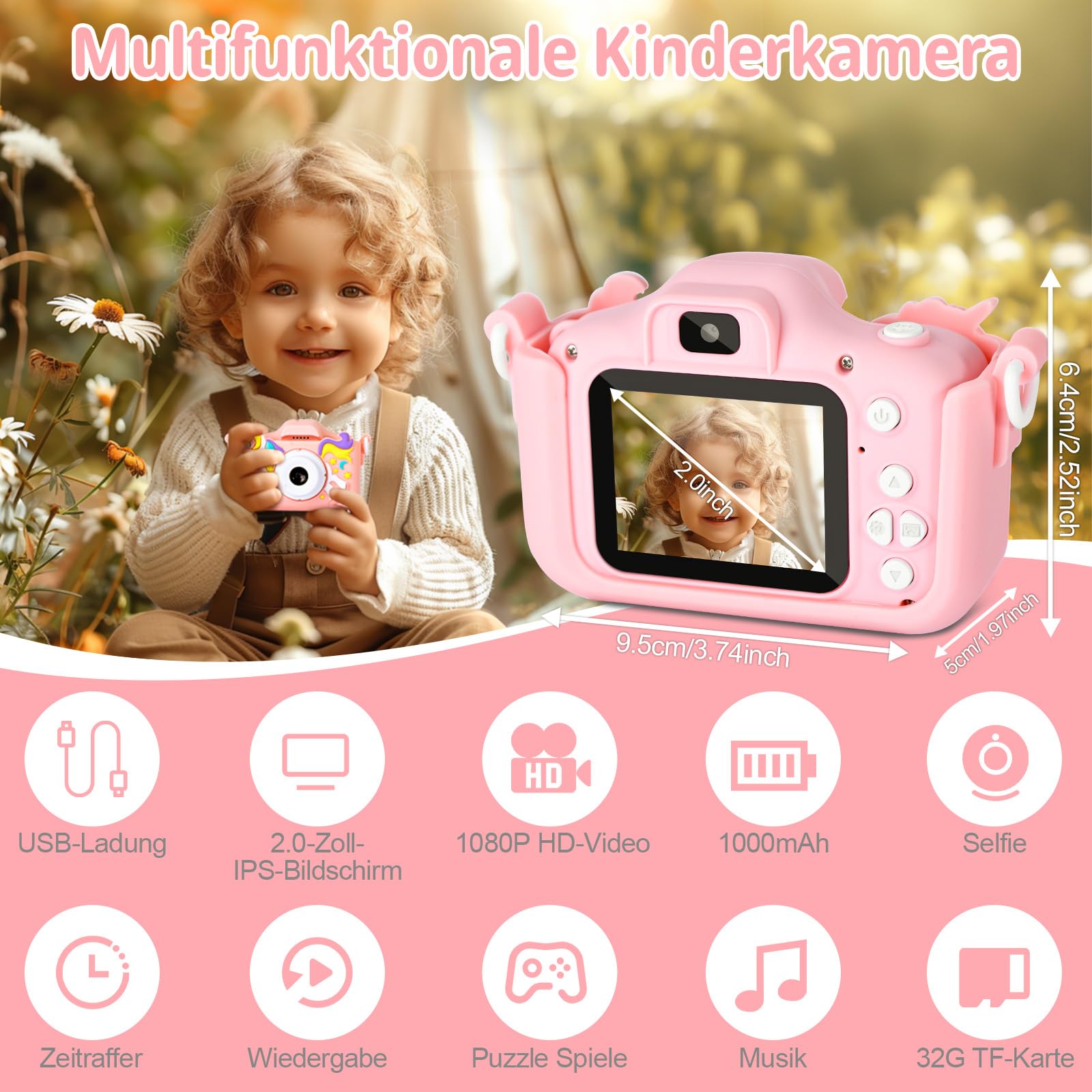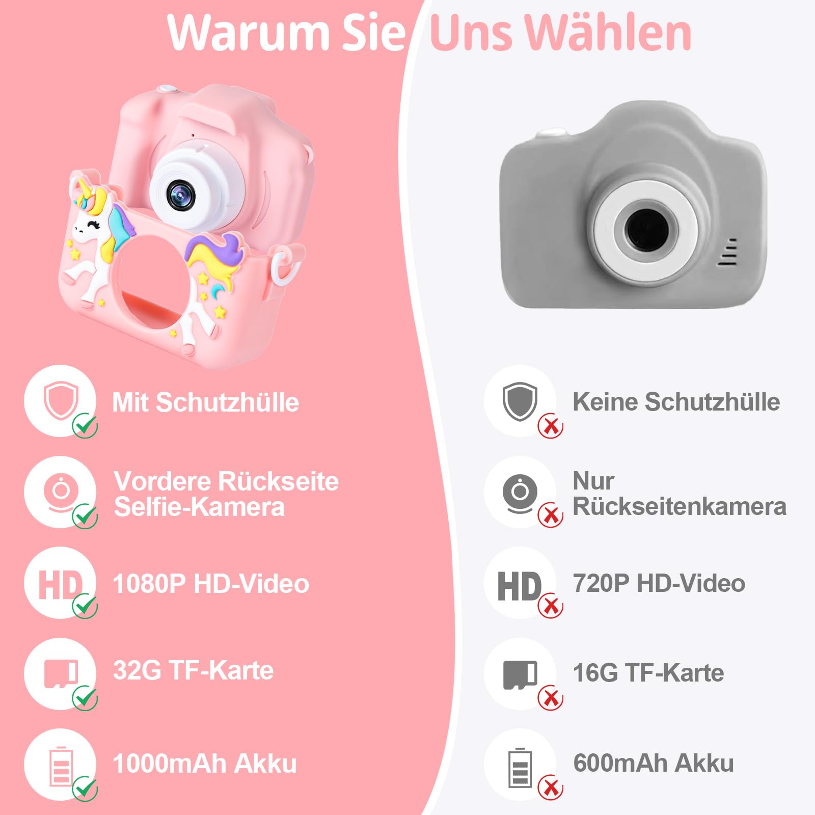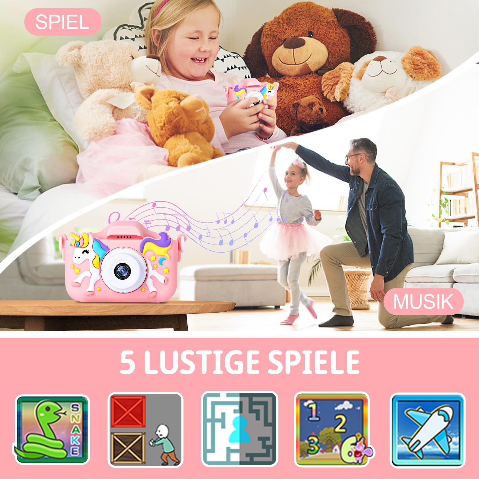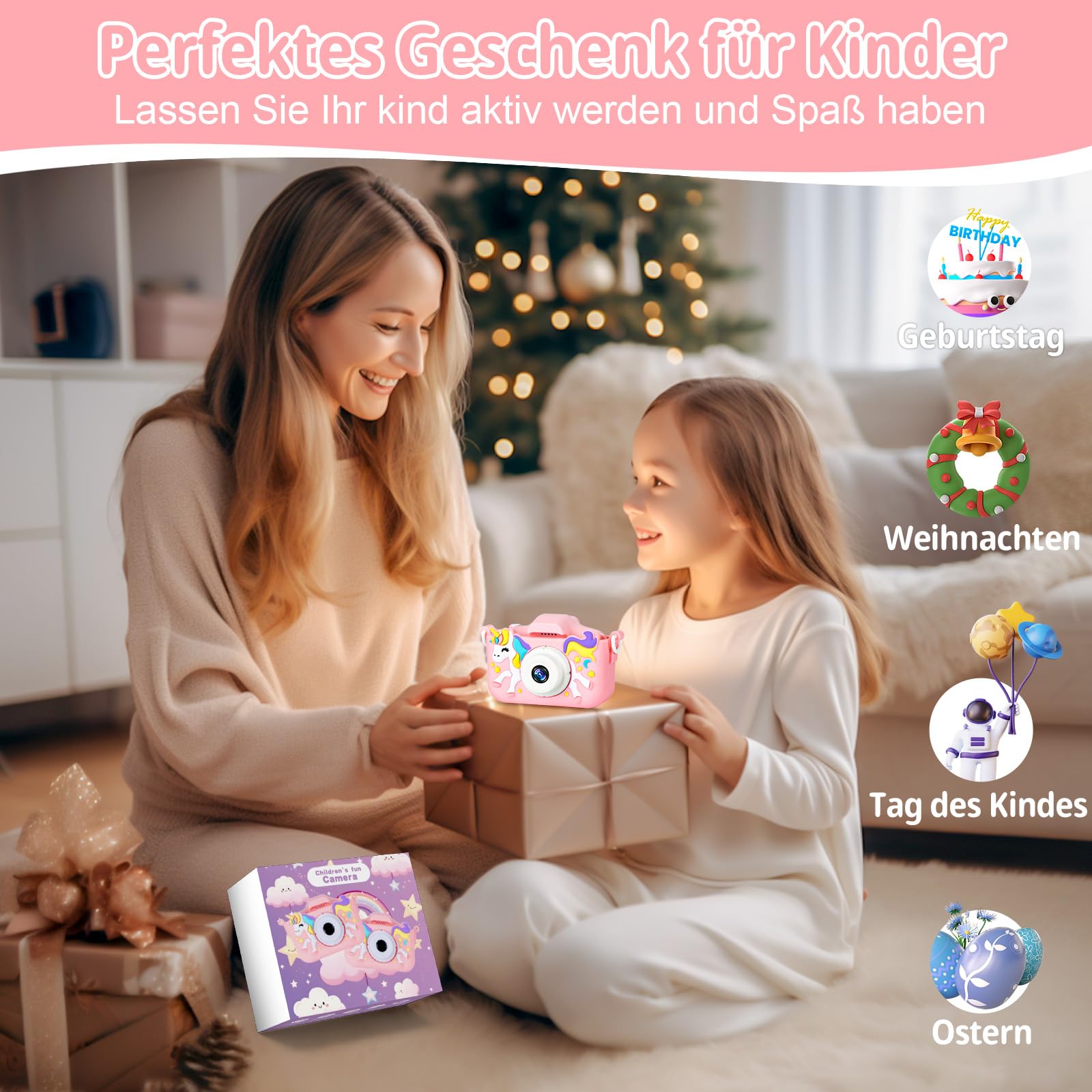 - 【Perfektes Geschenk für Mädchen & Jungen ab 3 Jahren】Diese kinder kamera ist ein ideales Geschenk für den Kindertag, Geburtstage, Weihnachten und andere besondere Anlässe. Die Neuheit der kamera für kinder könnte den Wunsch der Kinder auslösen, die Welt durch ihre Augen zu erkunden und fördert die Kreativität, verbessert das kognitive und logische Denken durch lustige Lernspiele.