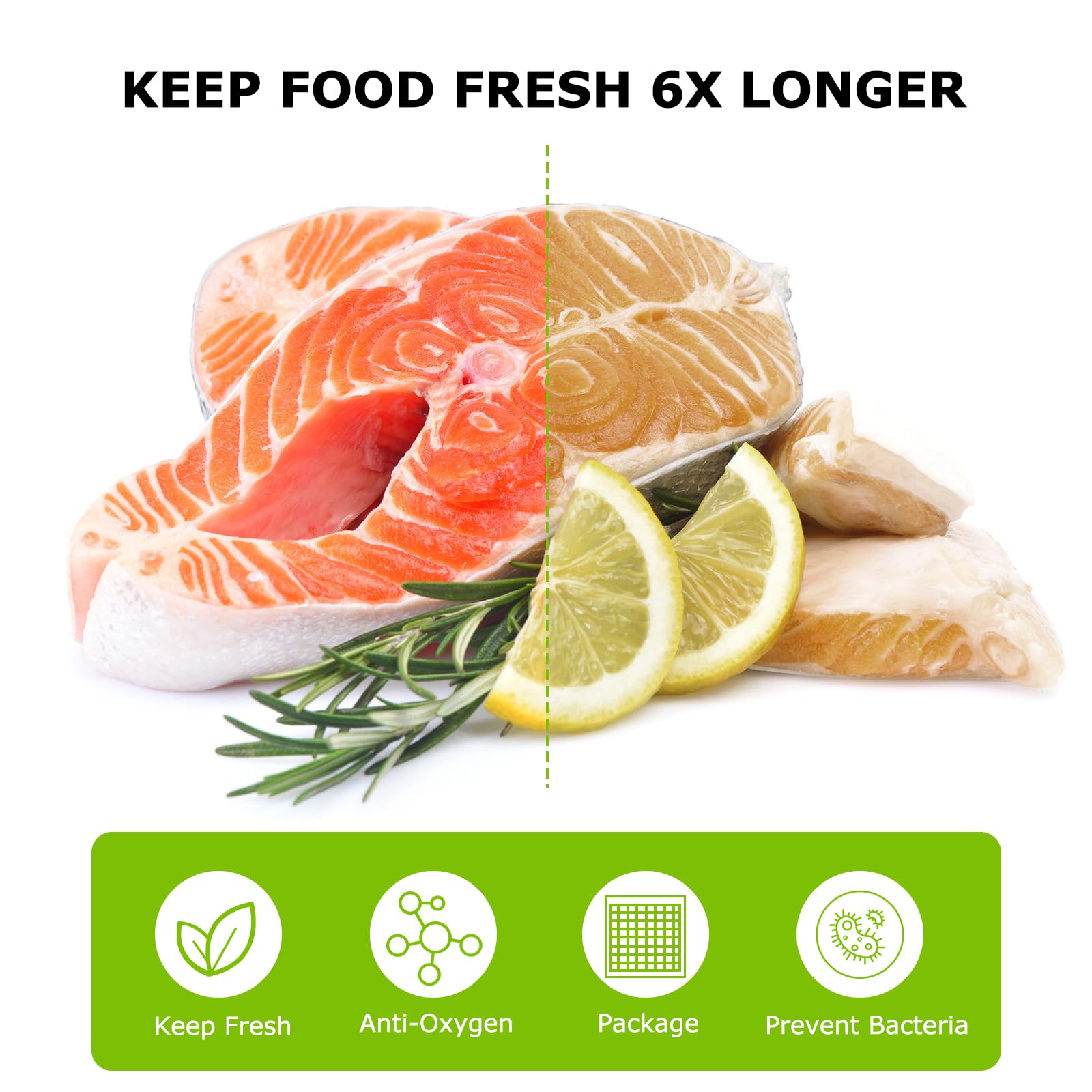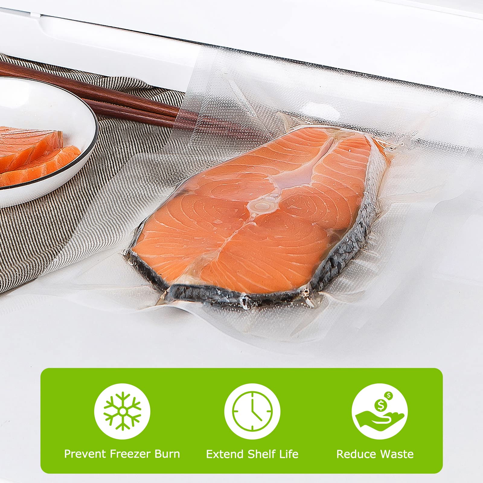 - Einzigartiges Dichtungsdesign: Eine Seite hat ein Rillendesign und die andere Seite ist glatt und transparent. Der geprägte Belüftungsvakuumbeutel maximiert die Frische und ermöglicht eine effiziente Luftabsaugung für eine bessere Lebensmittelkonservierung. Unsere Vakuumbeutel können die Frische von Lebensmitteln um das Achtfache steigern.