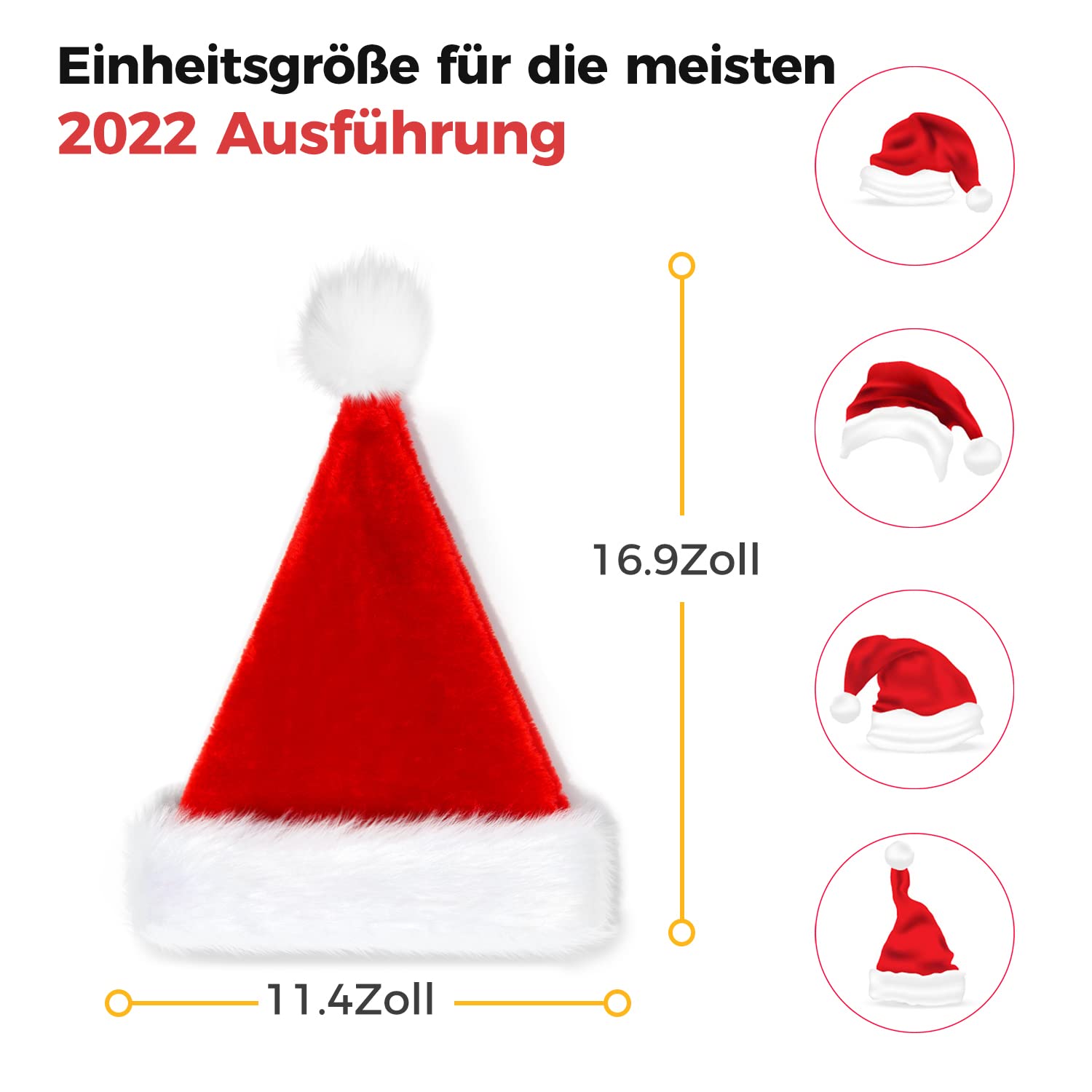- 🎅BESTE WEIHNACHTSMÜTZE: Diese weihnachtsmützen hat ein hübsches Design, mit dem Sie an Weihnachten auffallen. Es ist eine neuartige und luxuriöse Weihnachtsdekoration. Nikolausmützen eignet sich für Weihnachten Neujahr Urlaub Partei, Weihnachten Cosplay oder Kostüm Zubehör, kann für Sternsingen, Abschlussfeier, Jahresfeier, Gemeinschaftsaktivitäten, Bühnenauftritt, Urlaub Partei und so weiter verwendet werden.