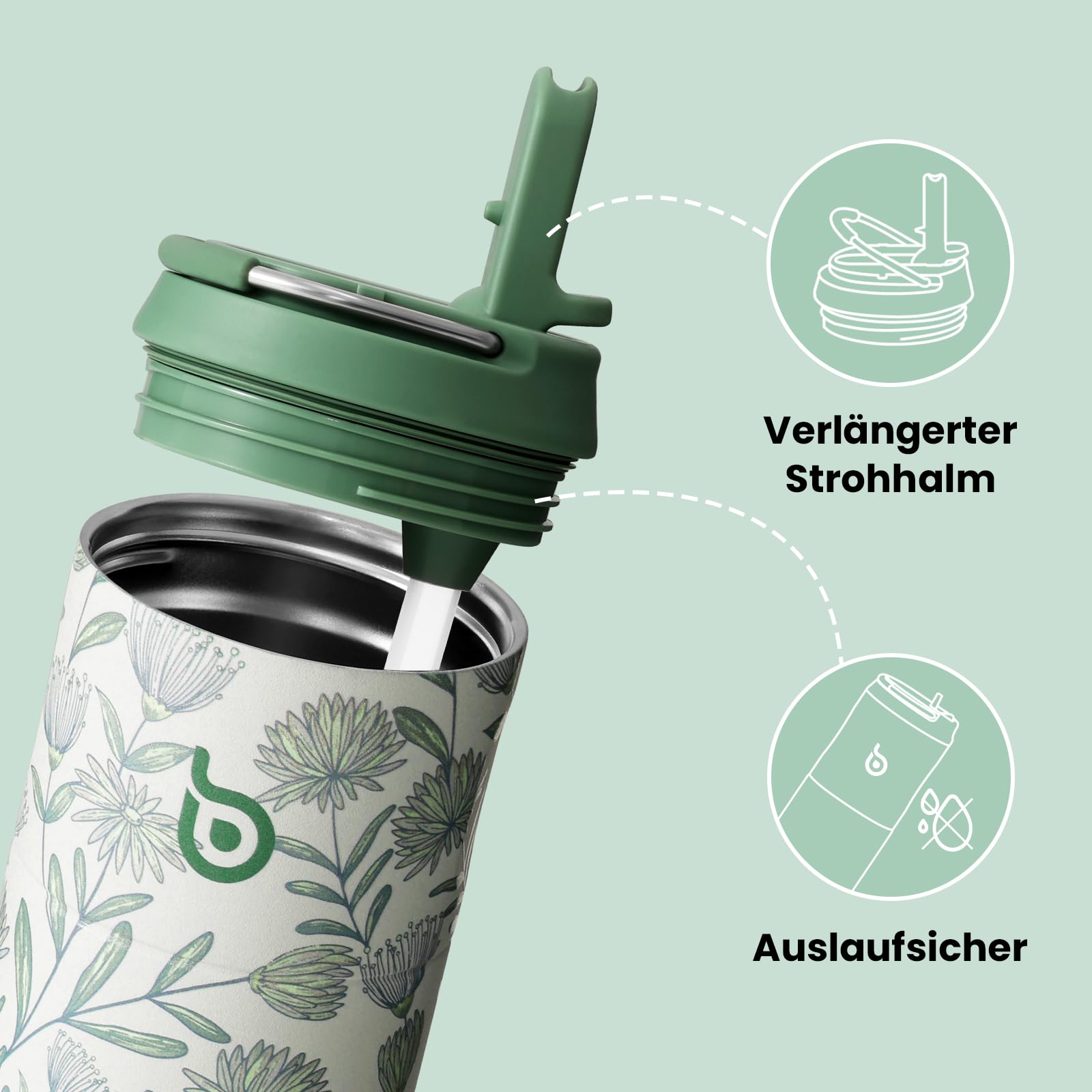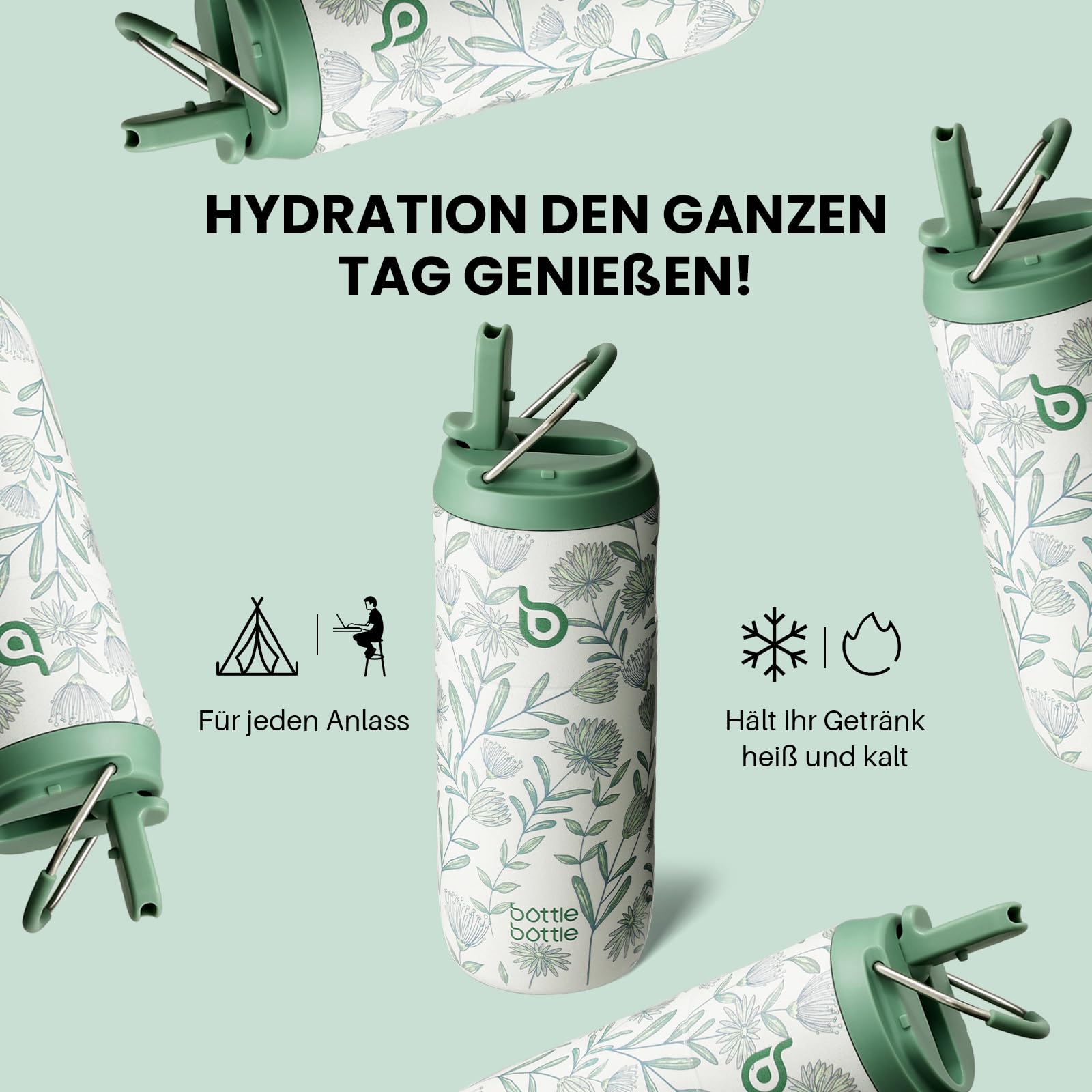- 2. Praktischer Deckel mit Doppel-Funktion Die rostfreie Stahl-Trinkflasche verfügt über einen zusammenklappbaren Strohhalm, der ein bequemes Trinken ermöglicht. Eine Strohhalmbürste sorgt dafür, dass die Reinigung mühelos ist. Zudem hat der Strohhalm-Deckel einen zusammenklappbaren Griff, der das Tragen unterwegs erleichtert.