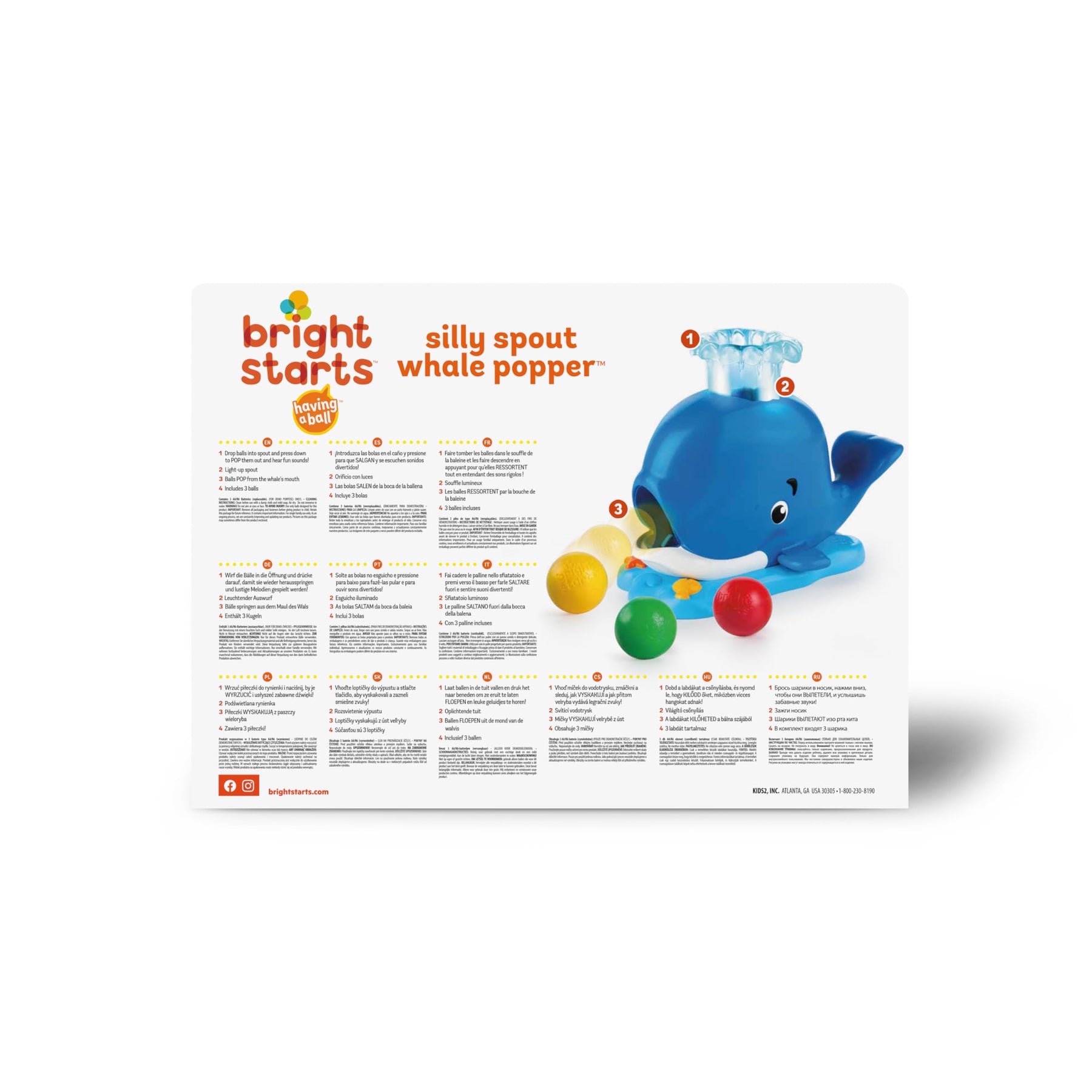 Bright Starts Silly Spout Whale Popper Ballspielzeug mit Musik Lichtern und 3 bunten Bällen, Mehrfarbig