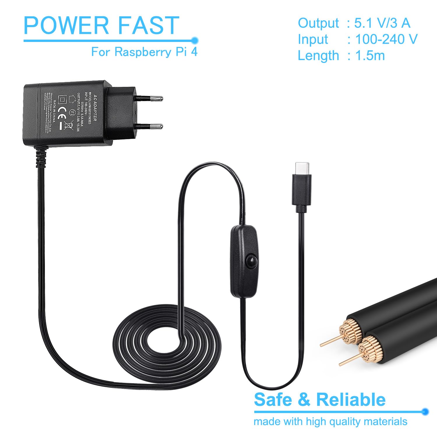 - Bessere Leistung USB-C,Anschluss Mit Adaptern für Raspberry Pi 3,für Raspberry Pi 4 Model B