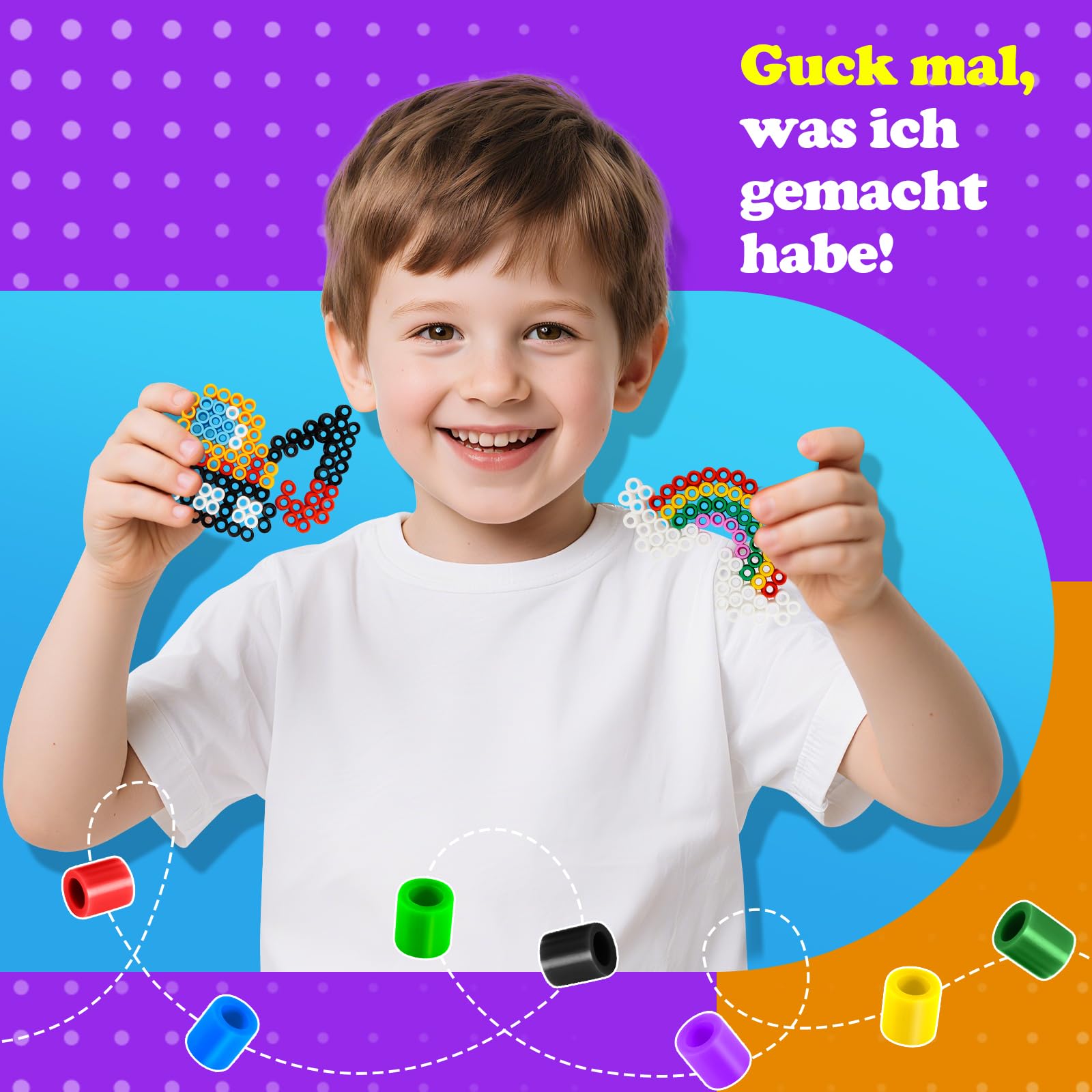• Extra-Große 10mm Perlen - Perfekt für Kleine Kinderhände ab 3 Jahren Extra-Großen Bügelperlen sind speziell für Kleinkinder entwickelt. Sie sind leicht zu greifen, zu platzieren und fördern spielerisch die Feinmotorik, ohne zu frustrieren. Ideal für die ersten kreativen Projekte!