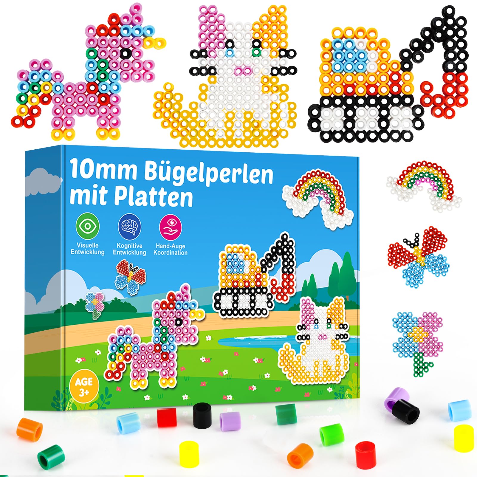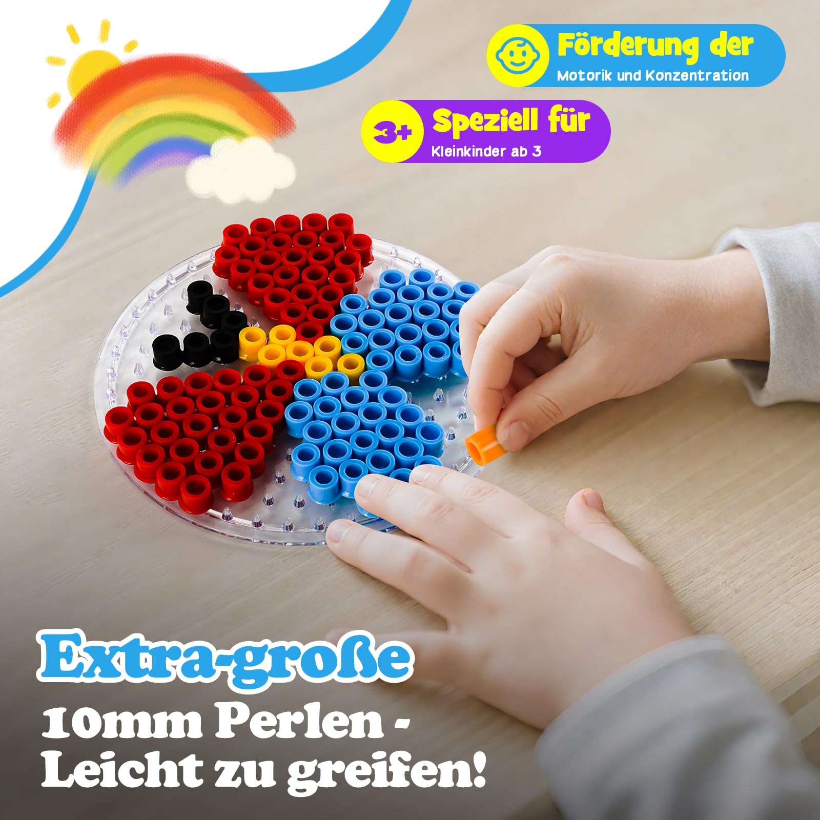 Bügelperlen Set Groß 10mm - Komplettset mit 2 Bügelplatten, Vorlagen für Kinder ab 3 Jahre - Extra Große Perlen für Kleinkinder