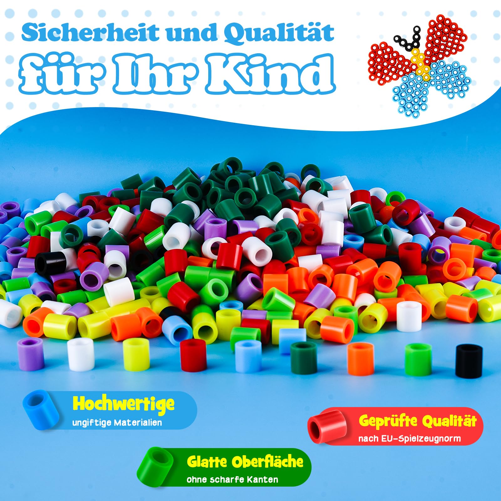 • 100% Sicherheit & Hochwertige Materialien - Ihr Kind ist Bestens Geschützt Das Bügelperlen Set besteht aus ungiftigen, schadstoffgeprüften Materialien (EN71 zertifiziert). Alle Perlen haben abgerundete Kanten und sind absolut frei von Scharfkanten. Der Bügelvorgang erfolgt natürlich nur unter Aufsicht von Erwachsenen.