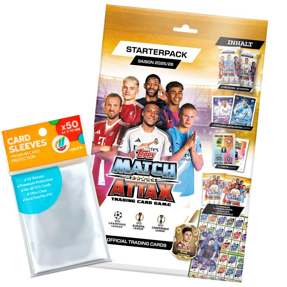 Bundle mit Topps - Match Attax Champions League 2025/26 - Trading Cards - 1 Starter + Exklusive Collect-it Hüllen