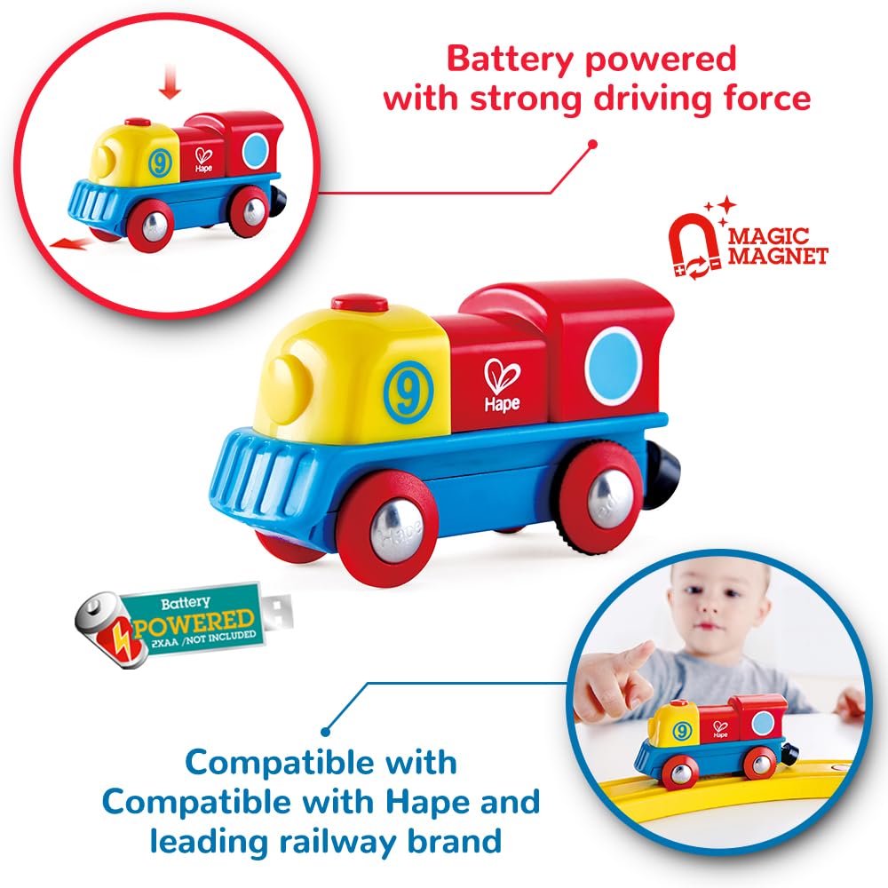 Bunte Lok von Hape | Tapfere kleine Lokomotive von Hape mit EIN-/Ausschaltknopf, außergewöhnliche, batteriebetriebene Lokomotive, Lackierung in rot, gelb und blau