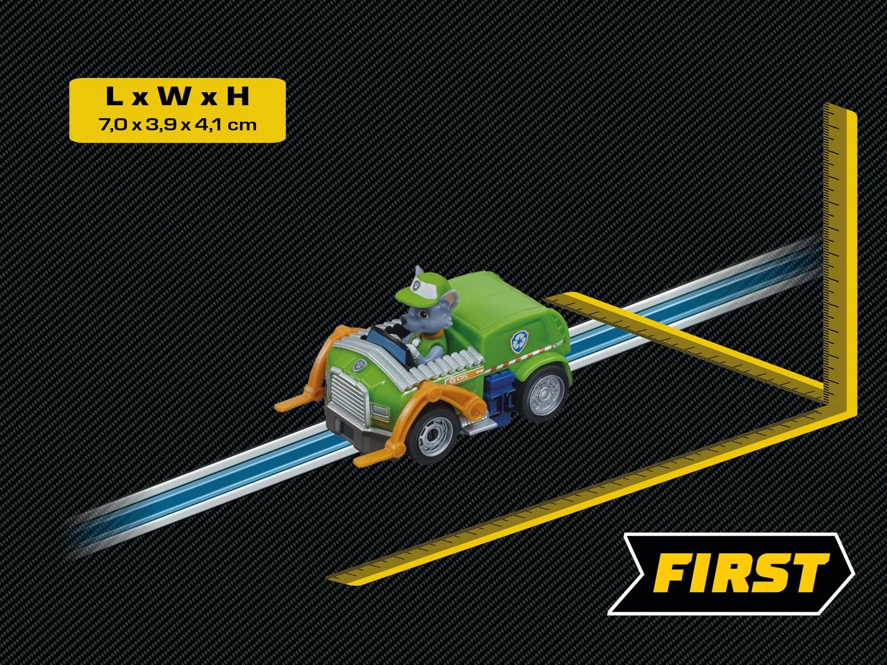 Carrera - 20065026 First PAW Patrol - Rocky Rennauto I Maßstab 1:50 I Rennauto Rennbahn First I Für Kinder ab 3 Jahren & Erwachsene