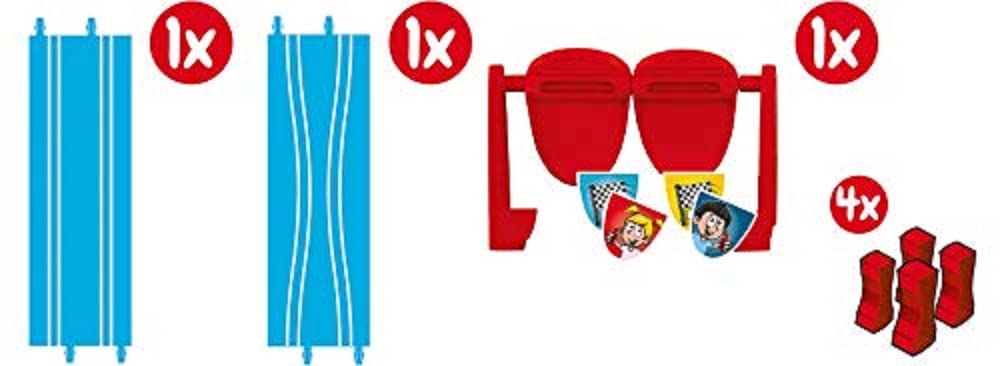 - COOLES ERGÄNZUNGSSET: Das Ergänzungsset "One fits All" ist speziell für die Carrera FIRST Rennstrecke entwickelt und sorgt für noch mehr Spielspaß und Rennfahrer-Action