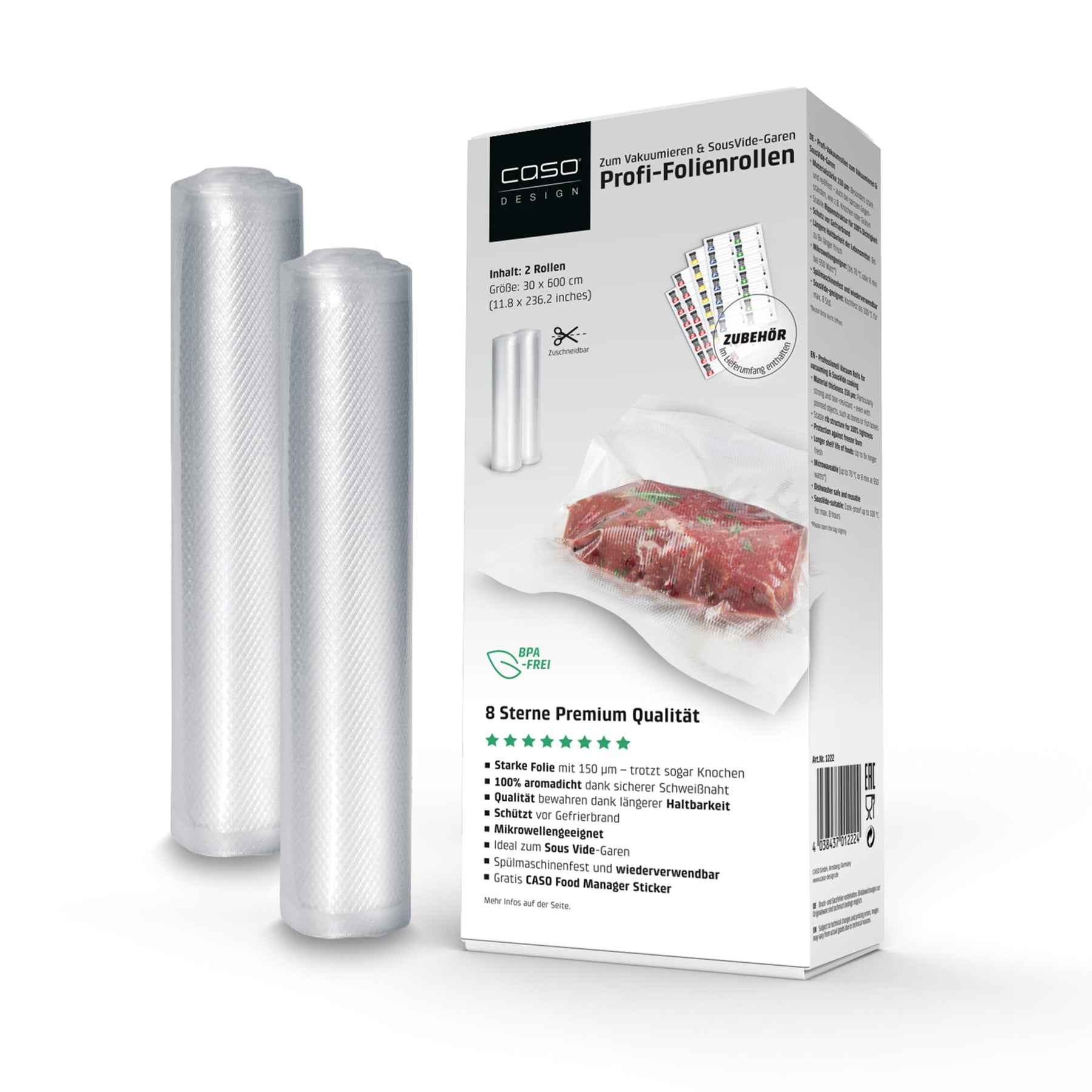 CASO 8 Sterne Profi- Folienrollen 30x600 cm / 2 Rollen, Vakuumierbeutel für alle Vakuumierer, sehr stark & reißfest ca. 150µm, Vakuumbeutel Lebensmittel Vakuumiergerät, Sous Vide, BPA-frei