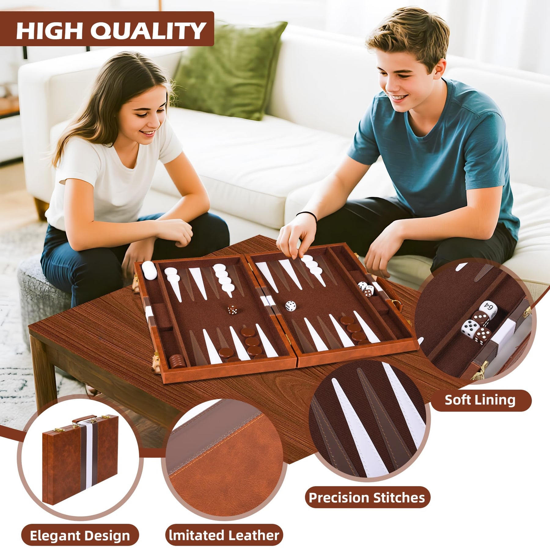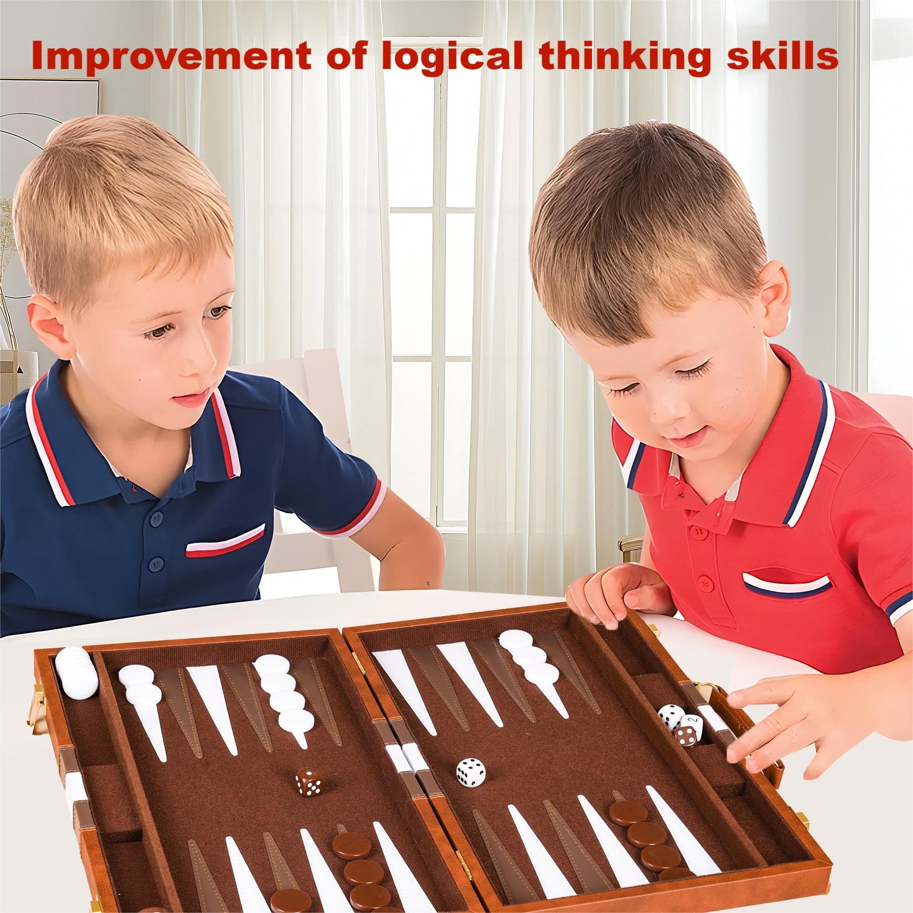 - 【Praktisches 15-Zoll-Reisedesign】 Unser kompaktes Backgammon-Set (38×49×2,5 cm ausgeklappt / 38×24,5×5 cm zusammengefaltet) überzeugt durch sein leichtes Tragegewicht und platzsparendes Format. Perfekt für Reisen, Camping oder spontane Spielabende – entfalten Sie es in Sekunden auf jedem Tisch!