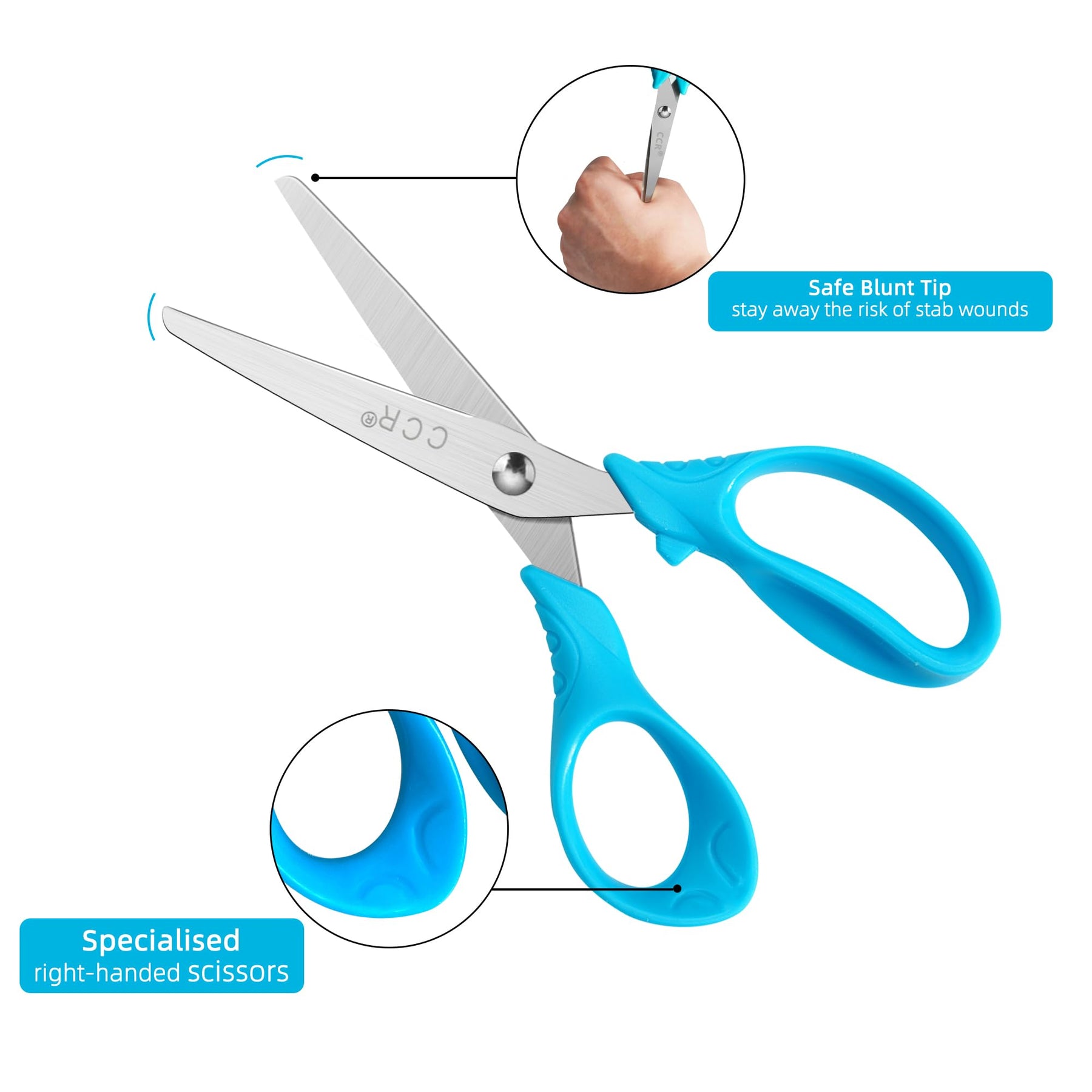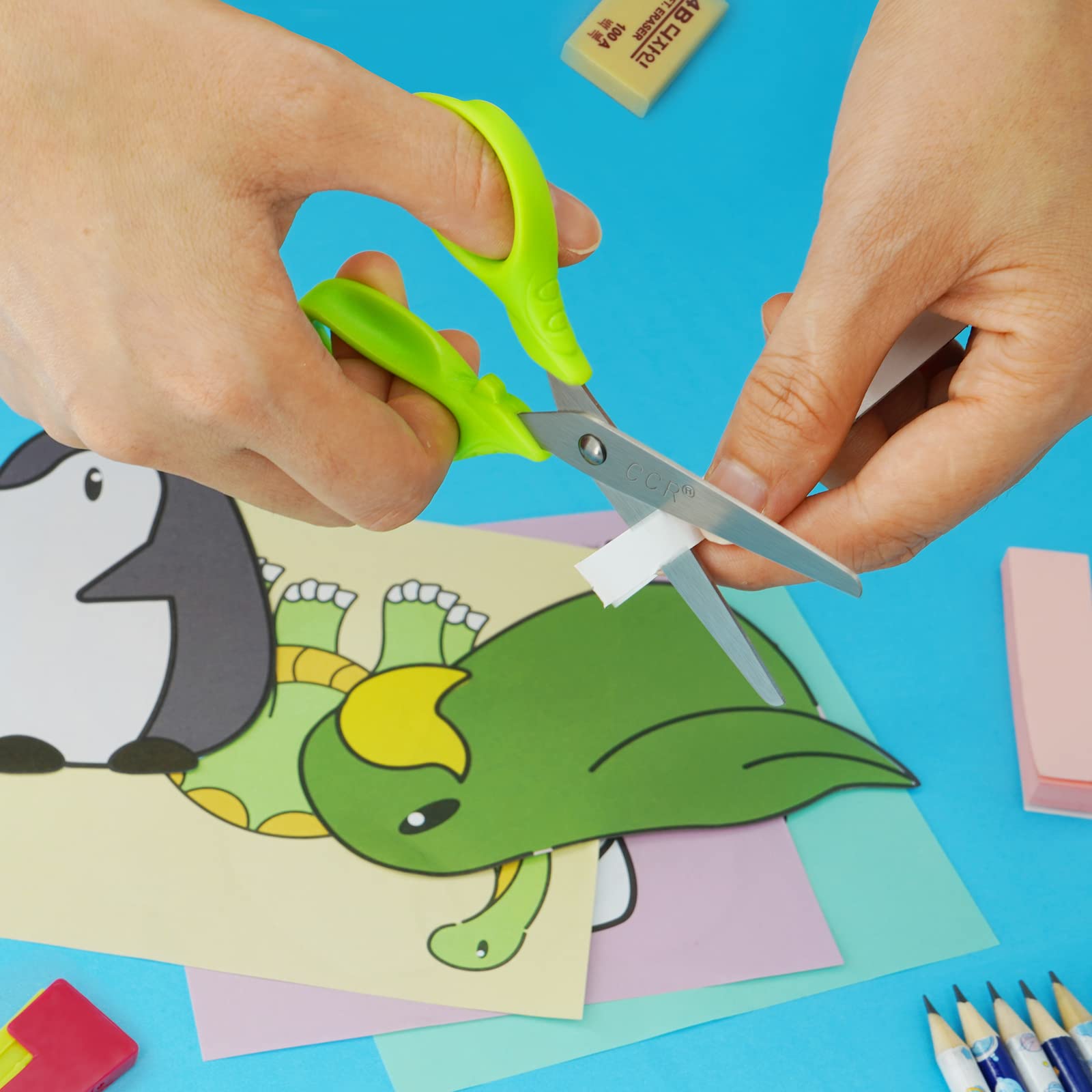 - Sicherheitsklingen mit stumpfer Spitze: Diese Kinderschere besteht aus superstarken, langlebigen, rost- und verschleißfesten, flach geschliffenen Edelstahlklingen. Die glatte Klinge bietet eine gute Leistung zum Schneiden von Papier. Das stumpfe Kopfdesign macht die Verwendung für Kinder sicherer.